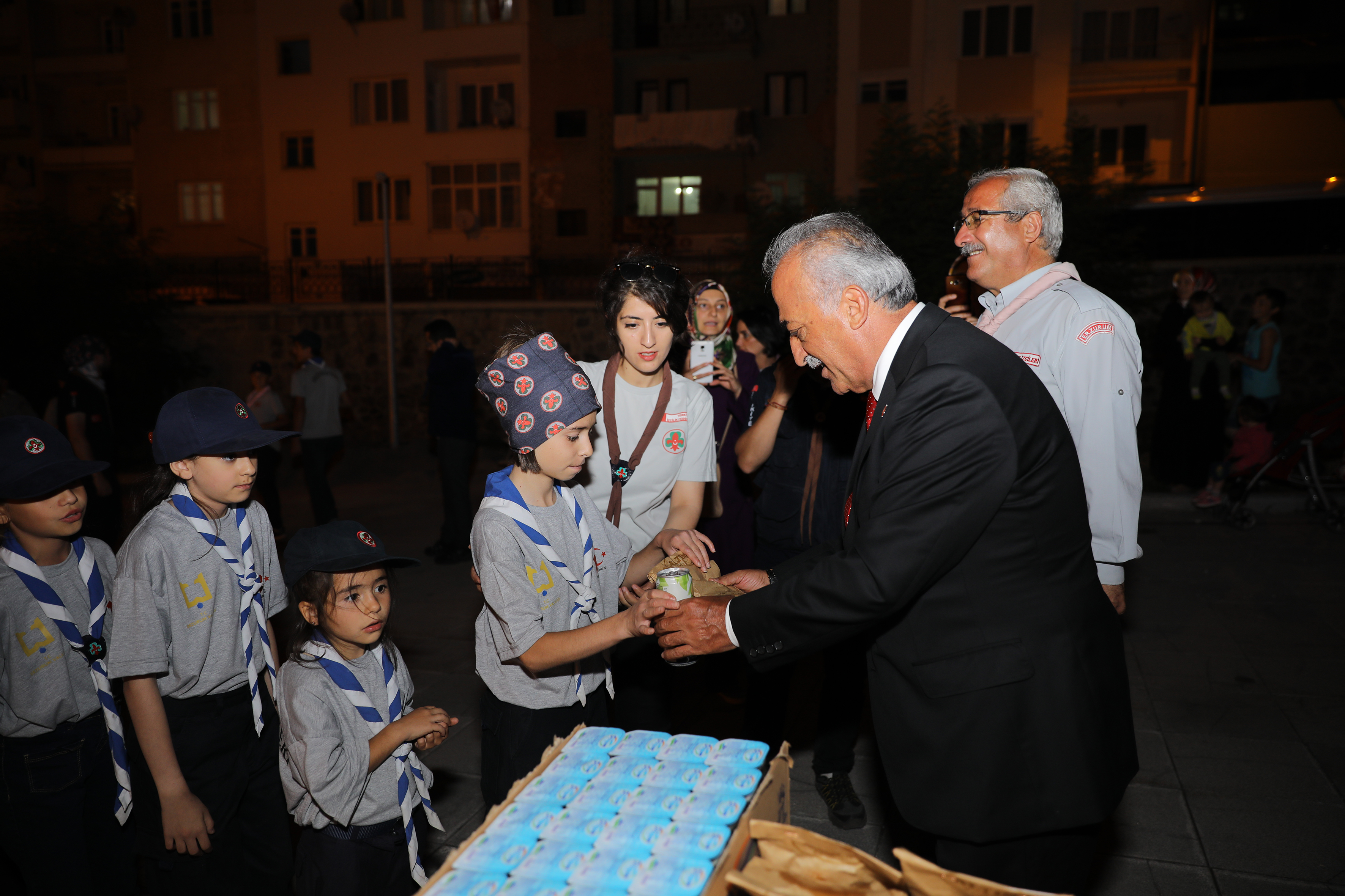 Millî Mücadele ve Erzurum Kongresi'nin 100. yılı dolayısıyla Tarihi Kongre Binası bahçesinde kurdukları çadırlarda kamp yapan 50 izci ile bir araya gelen Rektör Prof. Dr. Çomaklı, izci çocuk ve gençlere yemek ve içecek ikramında bulundu.