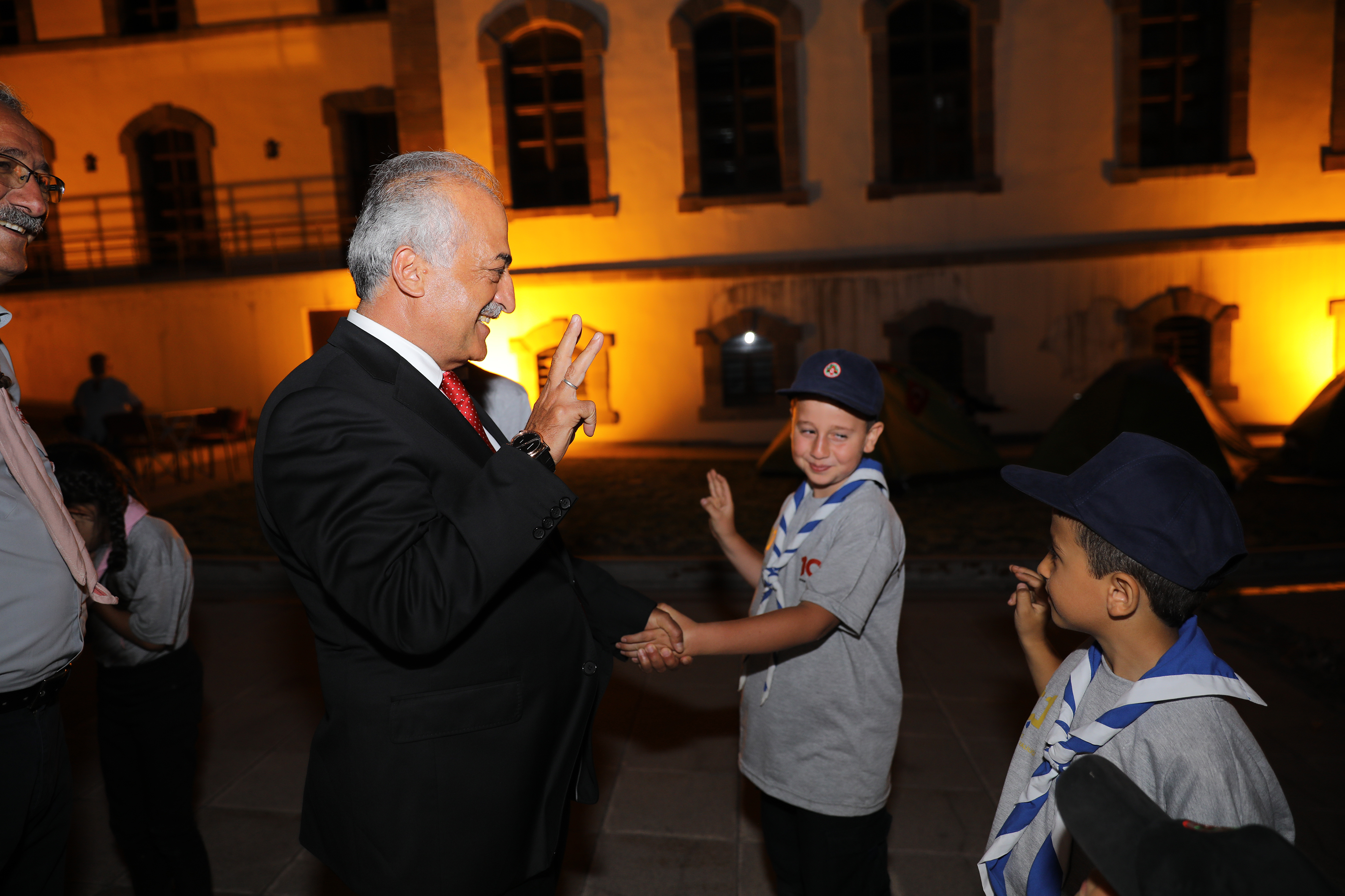 Yemek programında delege yakınlarıyla bir süre sohbet edip hatıra fotoğrafı çektiren Rektör Çomaklı, programın ardından Erzurum Kongre Binası bahçesinde kamp kuran Türkiye İzcilik Federasyonu'na bağlı Erzurum izcilerini ziyaret etti.