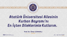 Yeni öğrencilerimizin âilemize katılmasının sevinci, Türkiye’mizin her geçen gün istikrarla biraz daha büyüyerek güçlenmesinin verdiği huzurla aziz milletimizin, Atatürk Üniversitesi Ailesi’nin ve tüm hemşerilerimin Kurban Bayramını tebrik ediyor, Cenâb-ı Allah'tan huzur ve esenlik içinde geçecek nice bayramlar diliyorum.”