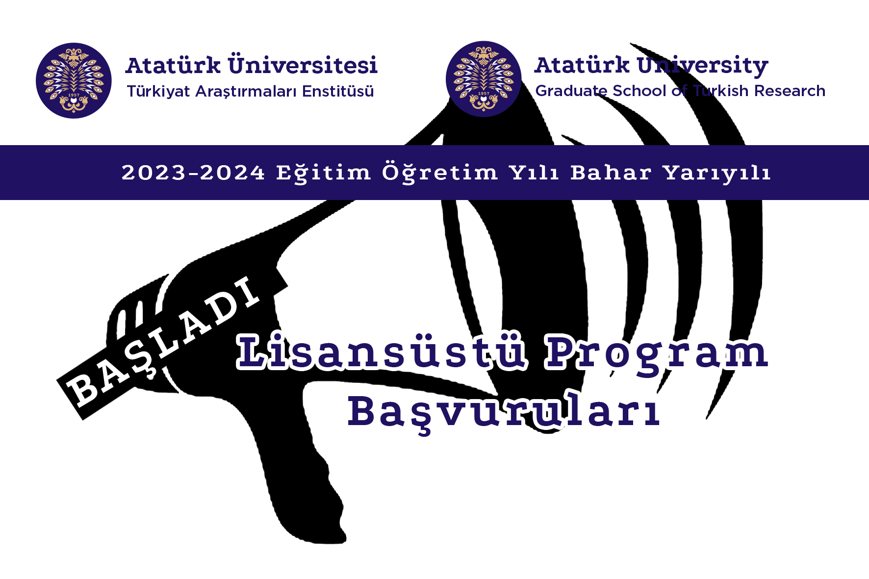Üniversitemiz bünyesinde yürütülmekte olan lisansüstü programlara 2023-2024 eğitim-öğretim yılı bahar yarıyılında alınacak öğrenci başvuruları ile ilgili detaylı bilgi almak için lütfen tıklayınız.2023 - 2024 Eğitim-Öğretim Yılı Bahar Yarıyılı Türkiyat Araştırmaları Enstitüsü Lisansüstü Program Kontenjan ve Ön Şartları hakkında bilgi almak için