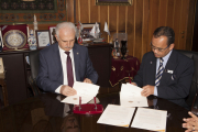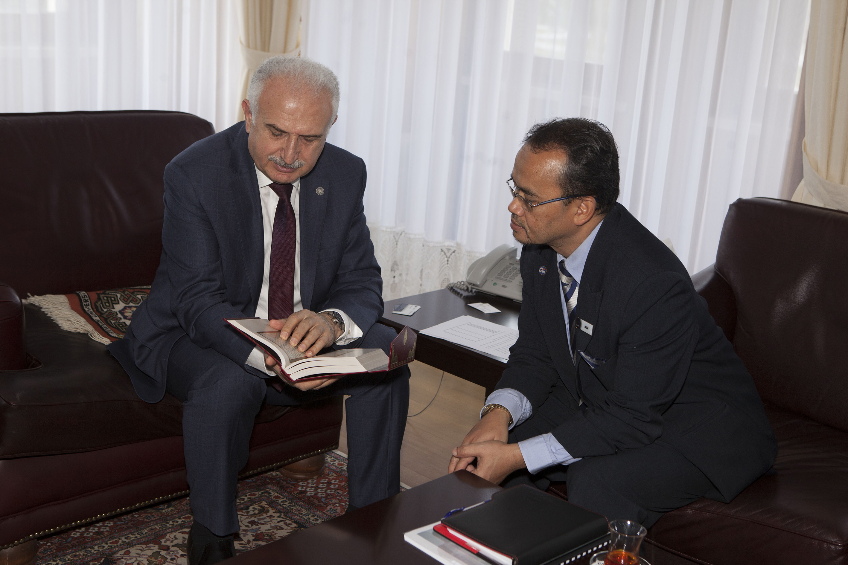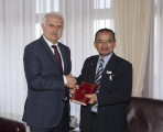 Malezya Saıns İslam Üniversitesi Rektörü Prof. Dr. Musa Ahmad ve beraberindeki heyet, bazı işbirliği anlaşmaları için Atatürk Üniversitesi’ne geldi. Atatürk Üniversitesi Rektörü Prof. Dr. Hikmet Koçak’ı makamında ziyaret eden Prof. Dr. Musa Ahmad , Rektör Koçak ile bir süre sohbet etti.