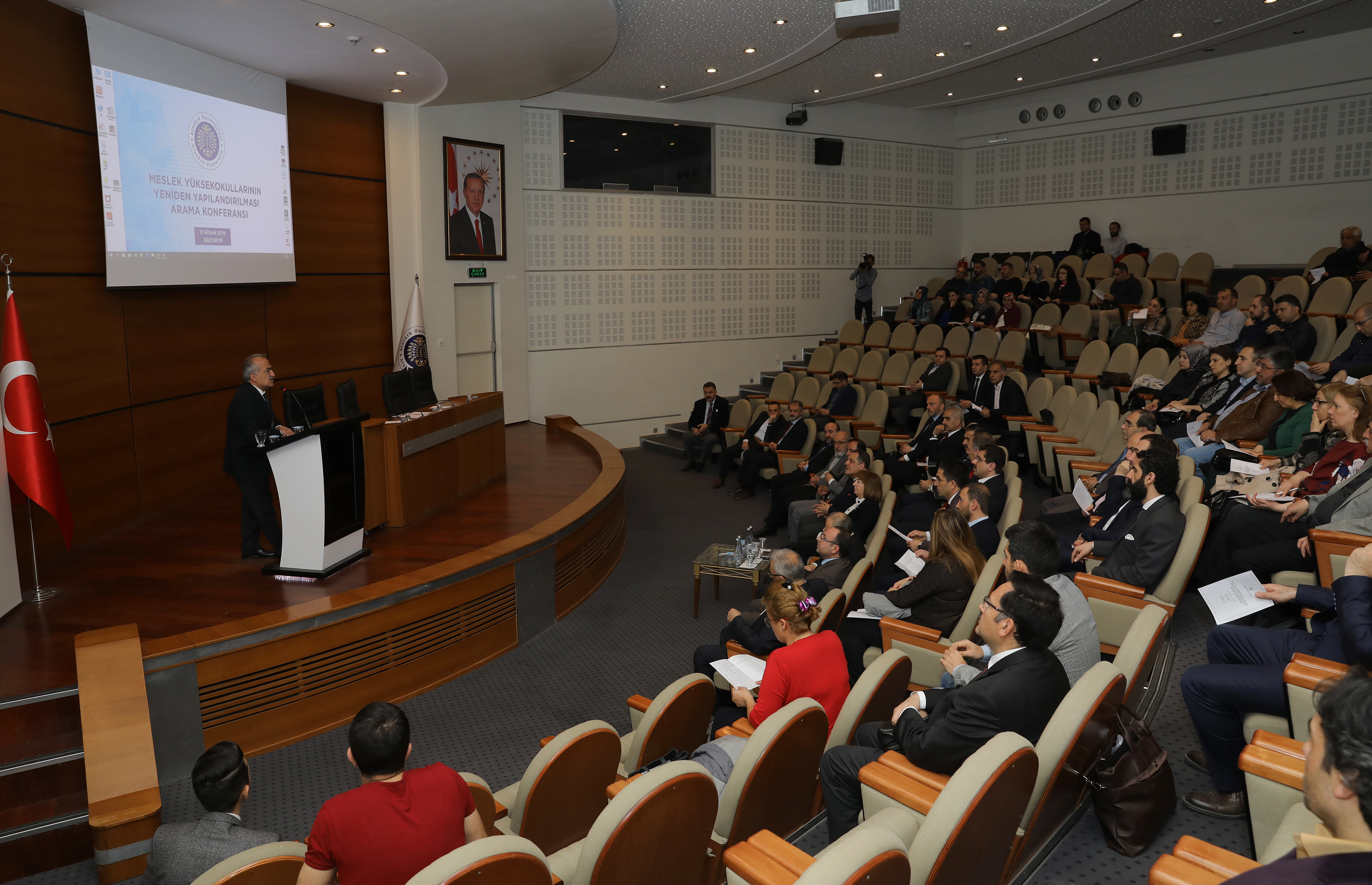 Meslek Yüksekokullarının Yeniden Yapılandırılması Arama Konferansında konuşan Atatürk Üniversitesi Rektörü Prof. Dr. Ömer Çomaklı, Yeni Nesil Üniversite Tasarım ve Dönüşüm Projesi içerisinde meslek yüksekokullarının öneminden bahsetti.