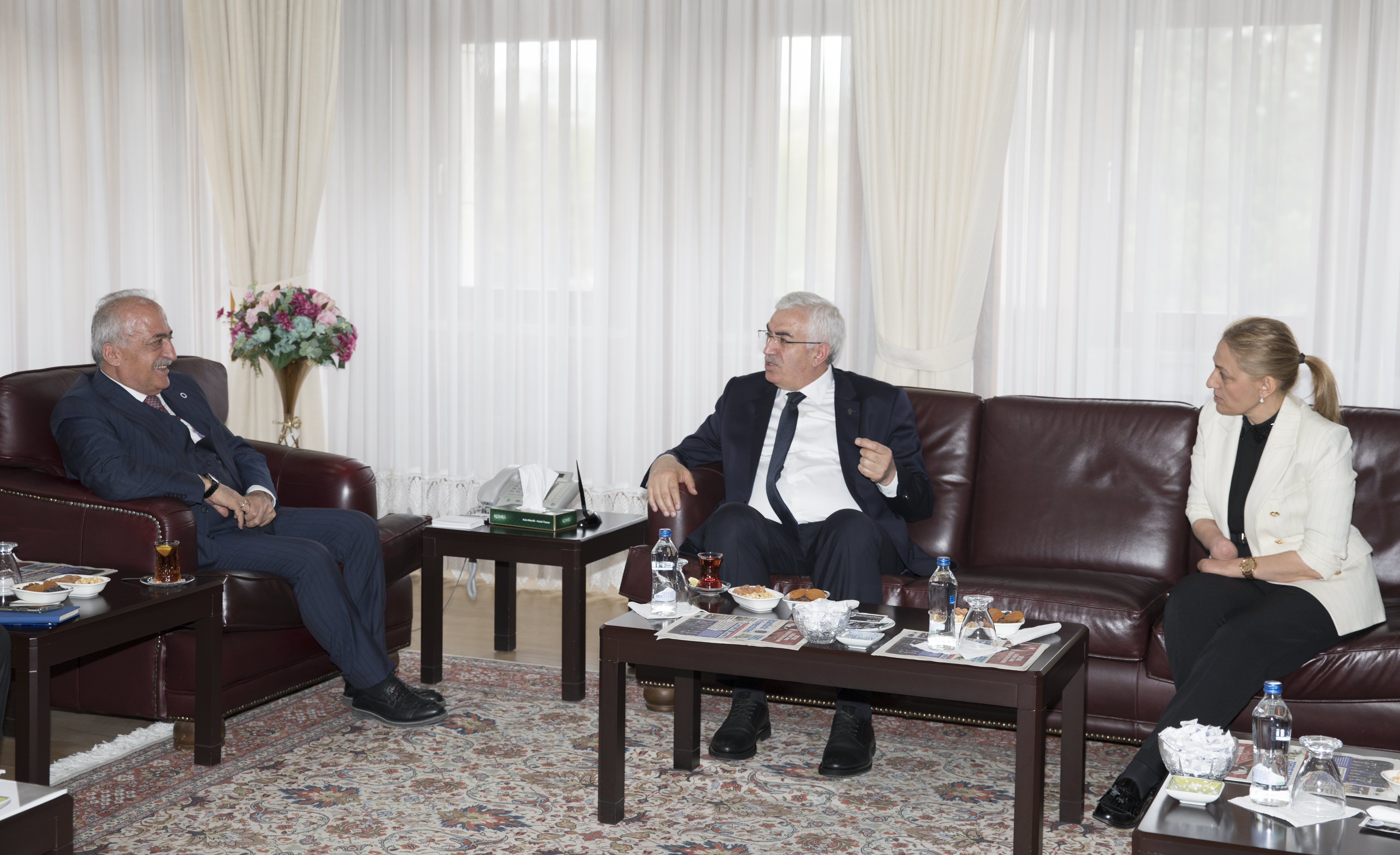 Rektörlük makamında ağırladığı misafirleri ve beraberindekilerle bir süre sohbet eden Rektör Çomaklı, üniversite bünyesinde yapılan çalışmalar hakkında çeşitli bilgiler verdi. Özellikle Yeni Nesil Üniversite Tasarım ve Dönüşüm Projesinin ardından üniversitede gözle görülür derecede bir değişimin yaşandığını ve bunun da akademik performansa olumlu yansıdığını aktaran Çomaklı, gerek birimlerin akredite edilmesinde gerekse üretilen bilginin patente dönüşmesinde hatrı sayılır bir başarı kaydettiklerini, bunun da üniversiteyi tarihinde görülmemiş bir seviyeye ulaştırdığını söyledi.