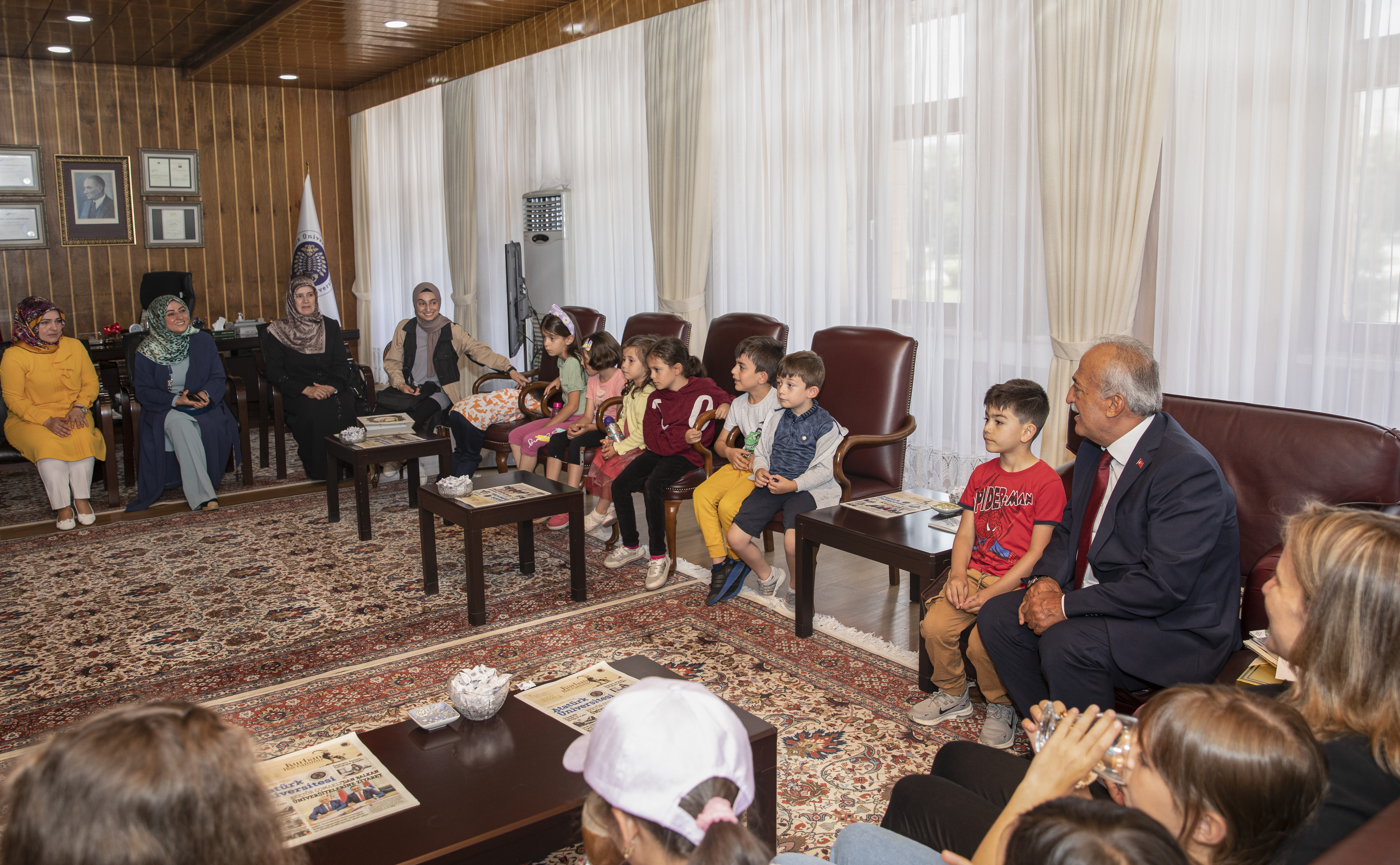 Ziyaret, öğrencilerin el emekleri ile yaptıkları hediyeleri Rektör Çomaklı’ya takdim etmeleri, Rektör Çomaklı’nın da çeşitli hediyeler ile minik misafirlerini uğurlaması ile sona erdi.