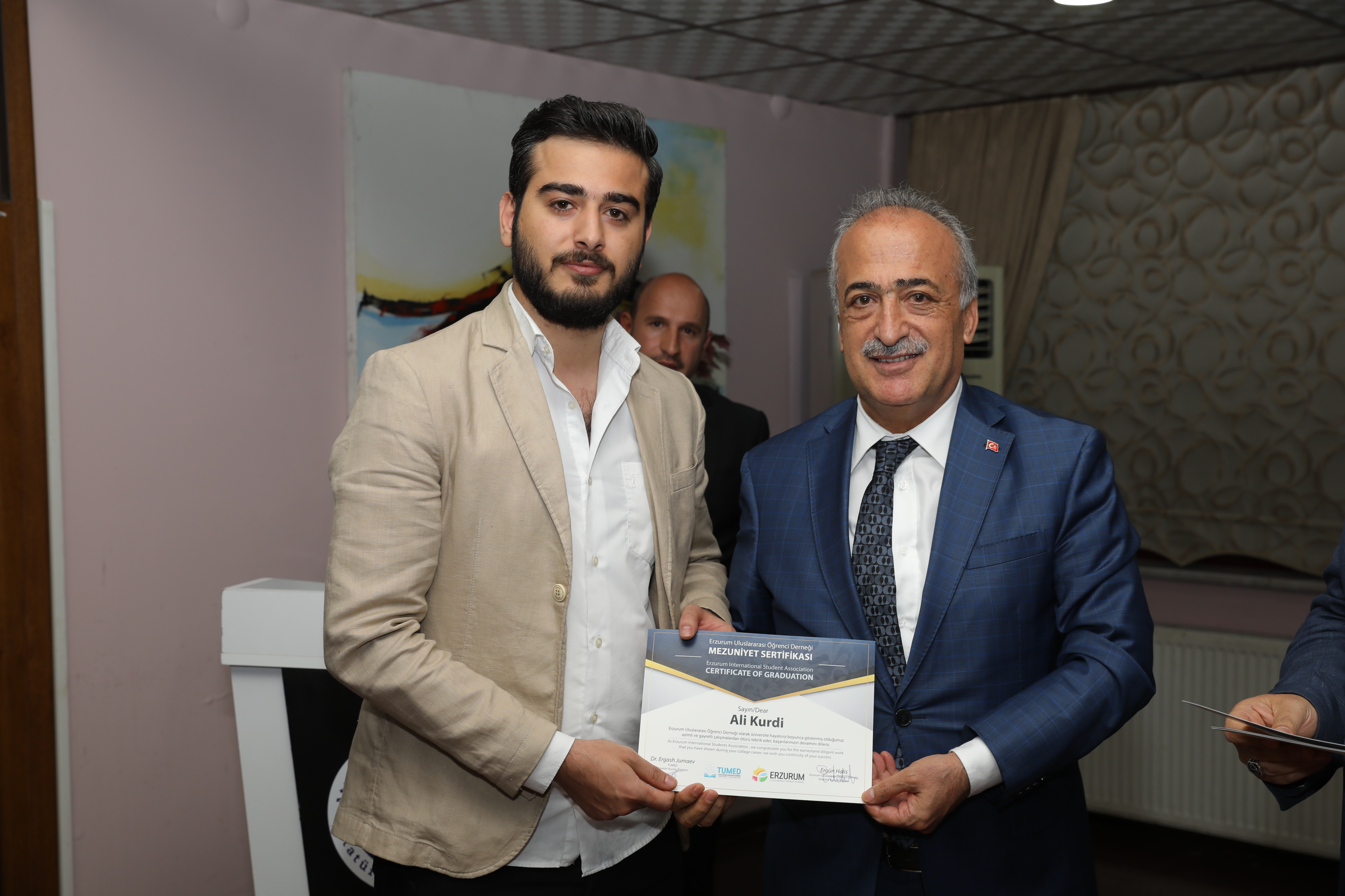 İftar programından sonra, eğitimlerini tamlayan öğrencilere mezuniyet sertifikası verildi.