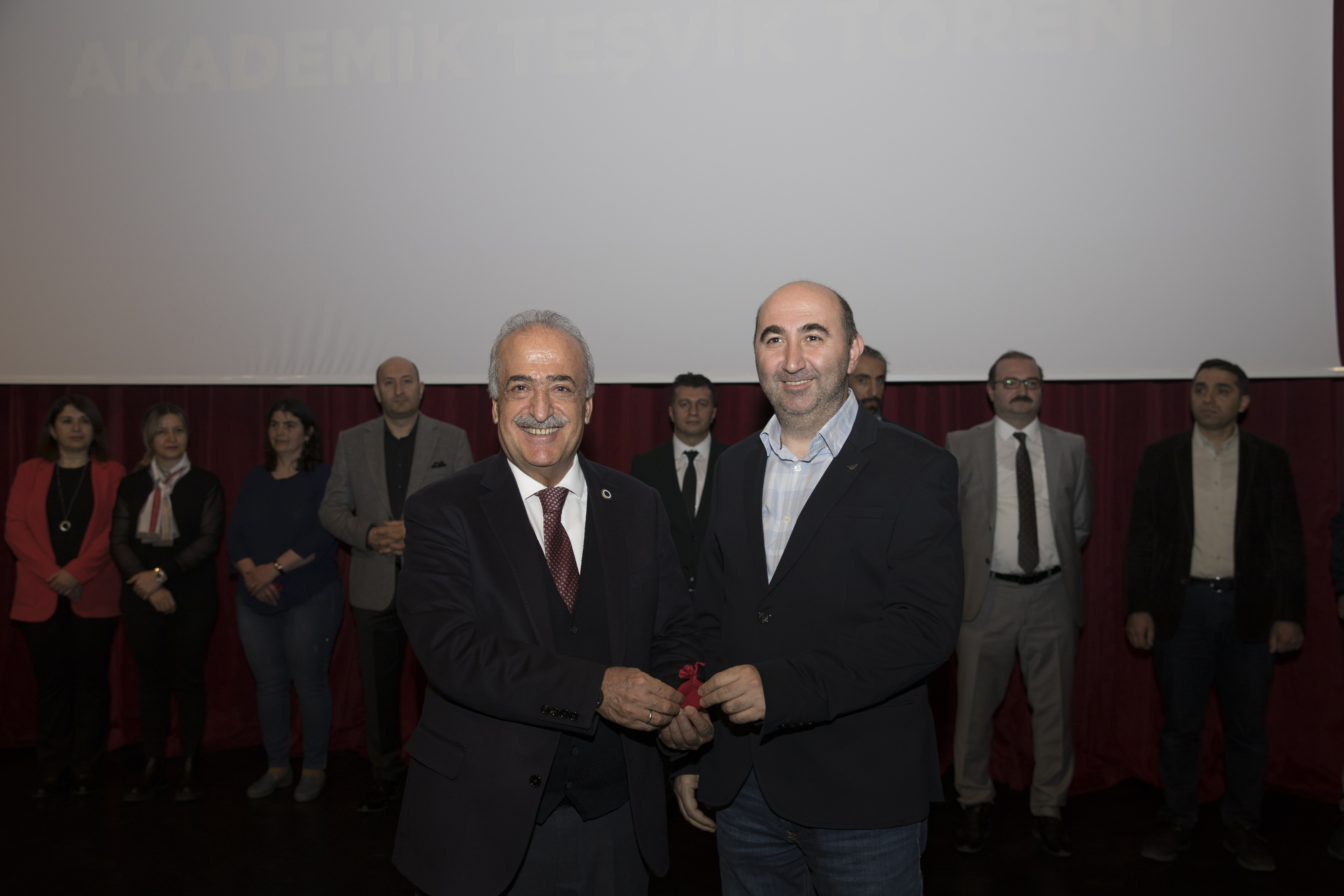 15 Temmuz Milli İrade Salonunda düzenlenen törende akademisyenlerle bir araya gelen Rektör Çomaklı, yayın, patent, proje ve firmaları ile ön plana çıkan araştırma temelli yaptıkları çalışmalarından ve başarılarından dolayı akademisyenleri tebrik etti.