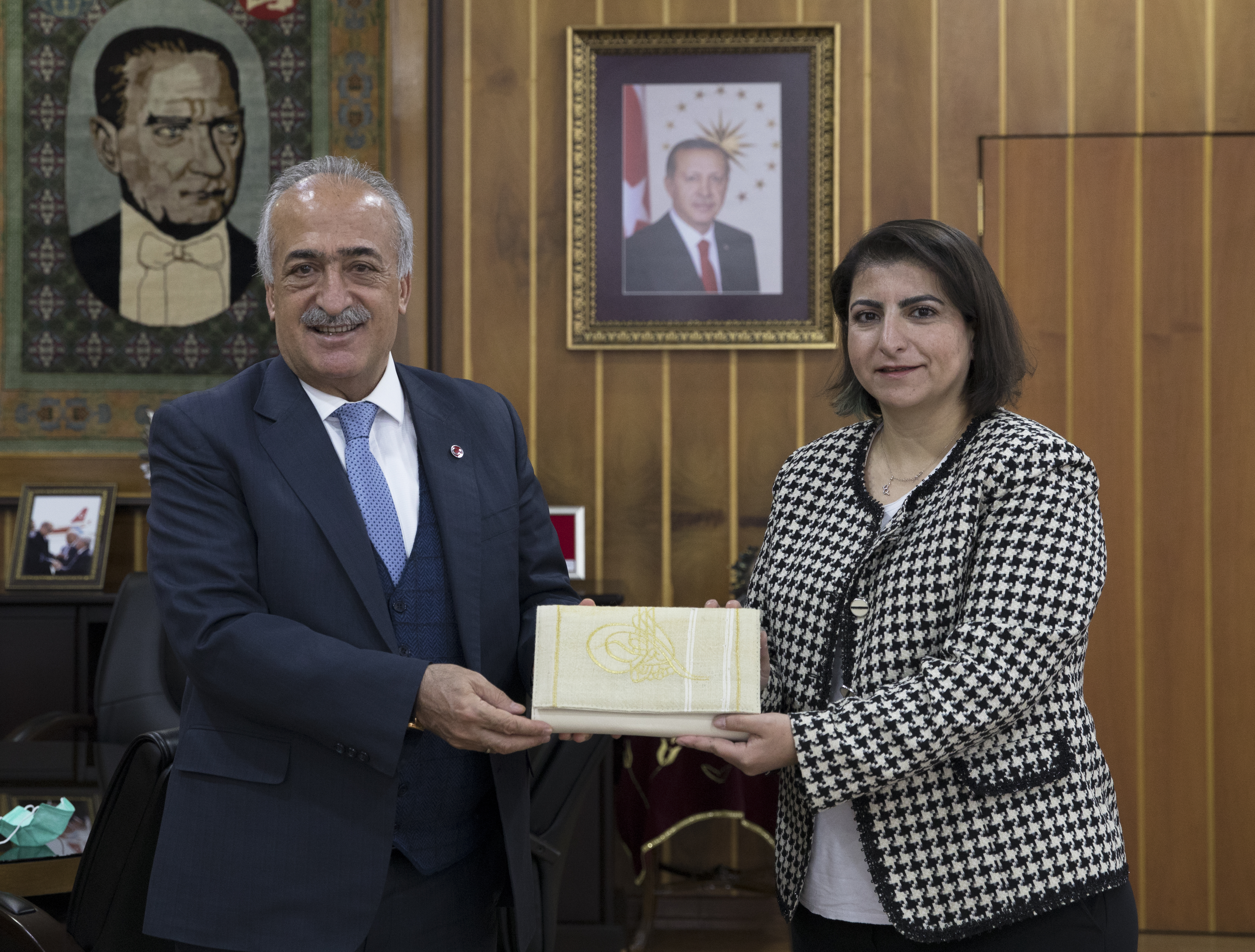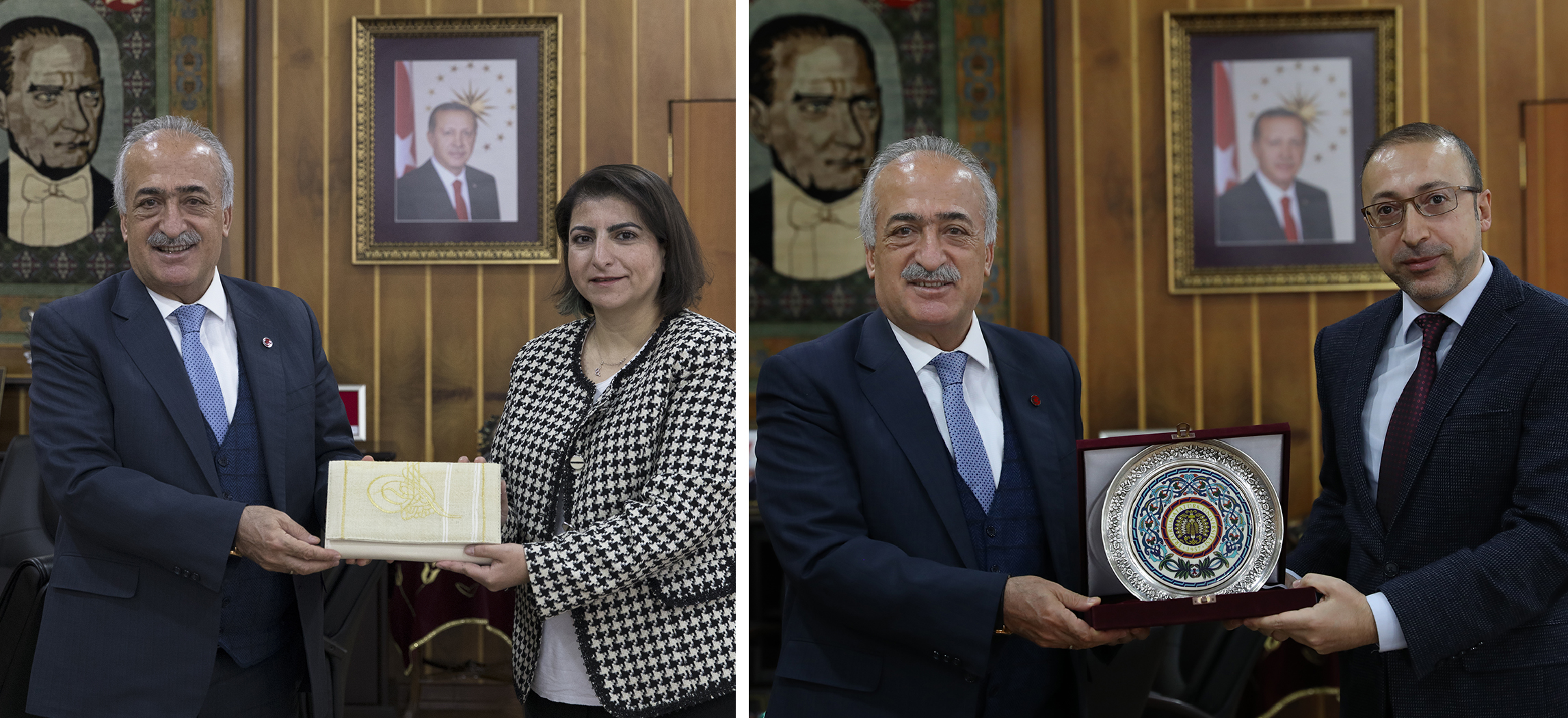 Rektör Çomaklı’yı makamında ziyaret eden Elif Çadırcı ve Murat Kurudirek, Atatürk Üniversitesi adını tüm platformlarda duyurmak için çalıştıklarını belirterek, kadim bir kurumun mensubu olmaktan gurur duyduklarını ifade ettiler.