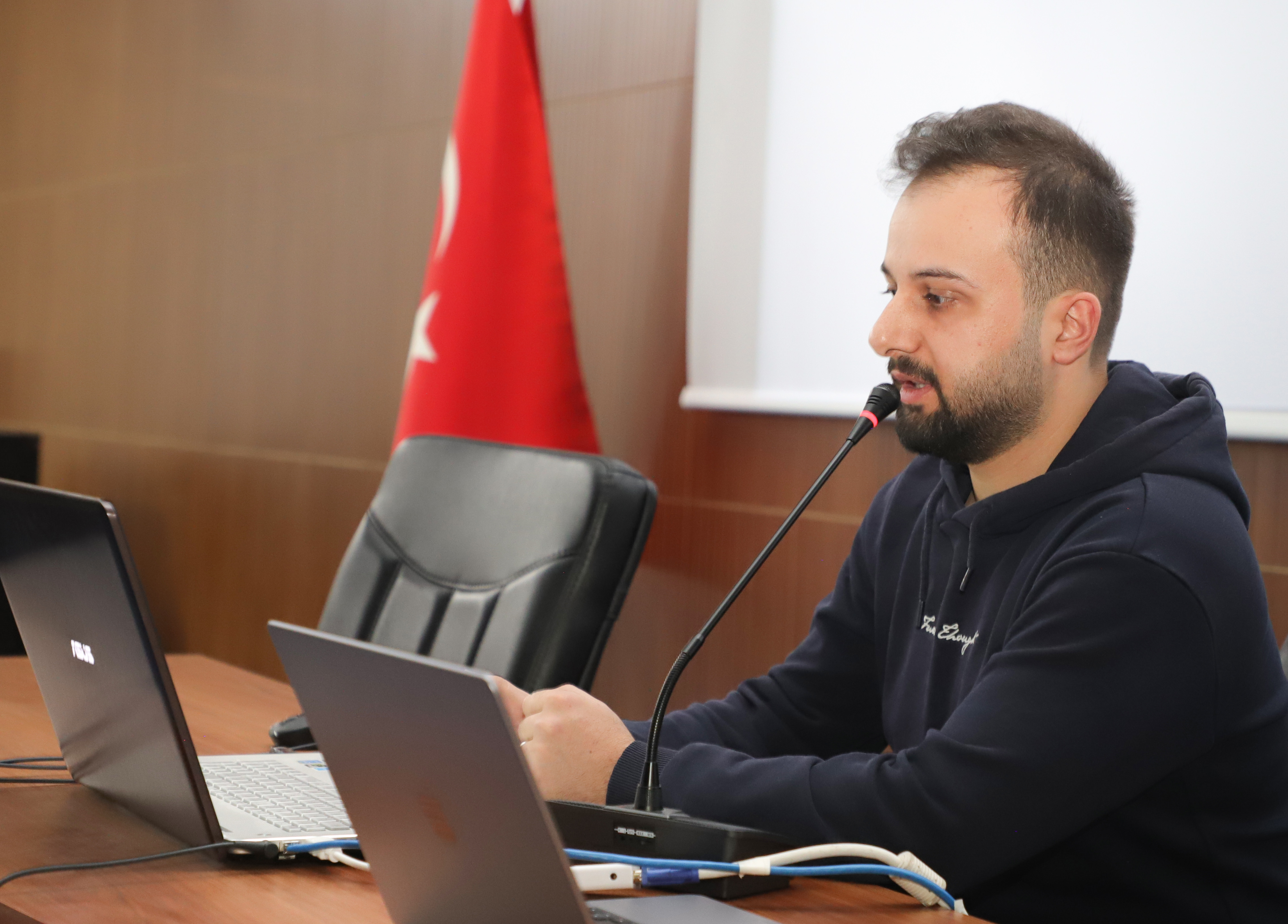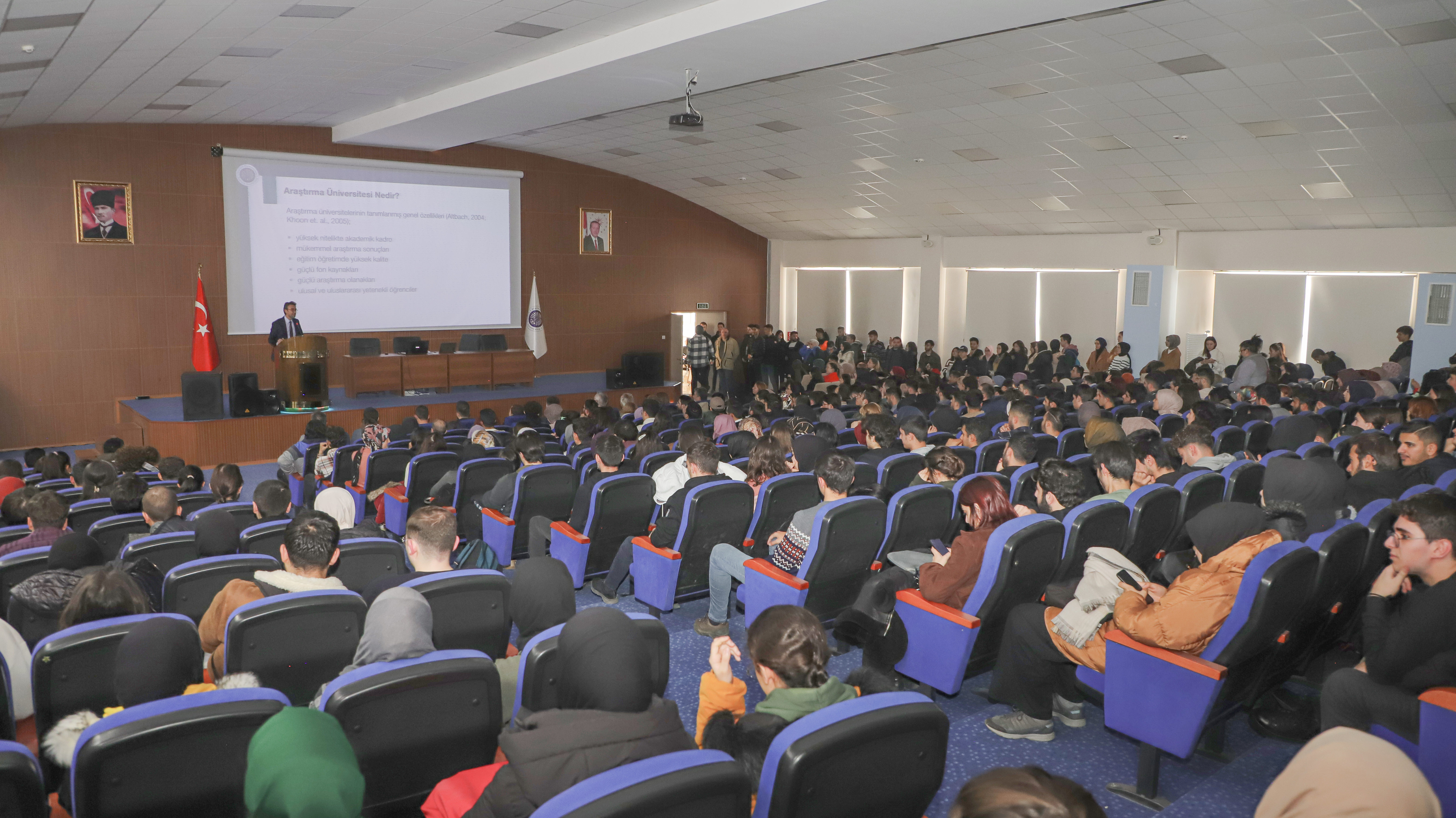 Açılış konuşmasının ardından program; Araştırma Üniversitesi İzleme ve Değerlendirme Ofisi Koordinatörü Dr. Öğr. Üyesi Erol Üzan’ın Araştırma Üniversitesi Konulu Sunumu, Lisans Ar-Ge Koordinatörü Doç. Dr. Haydar Kılıç’ın Ar-Ge Projeleri hakkında bilgi vermesi, Dijital Dönüşüm Ofisinden Arş. Gör. Mustafa Furkan Keskenler’in Dijital Üniversite adlı sunumunu, Kariyer Merkezi Müdür Yardımcısı Dr. Sezin Karabulut Çakır’ın Araştırma Üniversitende Kariyer Planlama konulu sunumu ve son olarak öğrenci Buğrahan Enes Akçelik’in Öğrenci Gözünden Araştırma Üniversitesi konulu sunum ile devam etti.