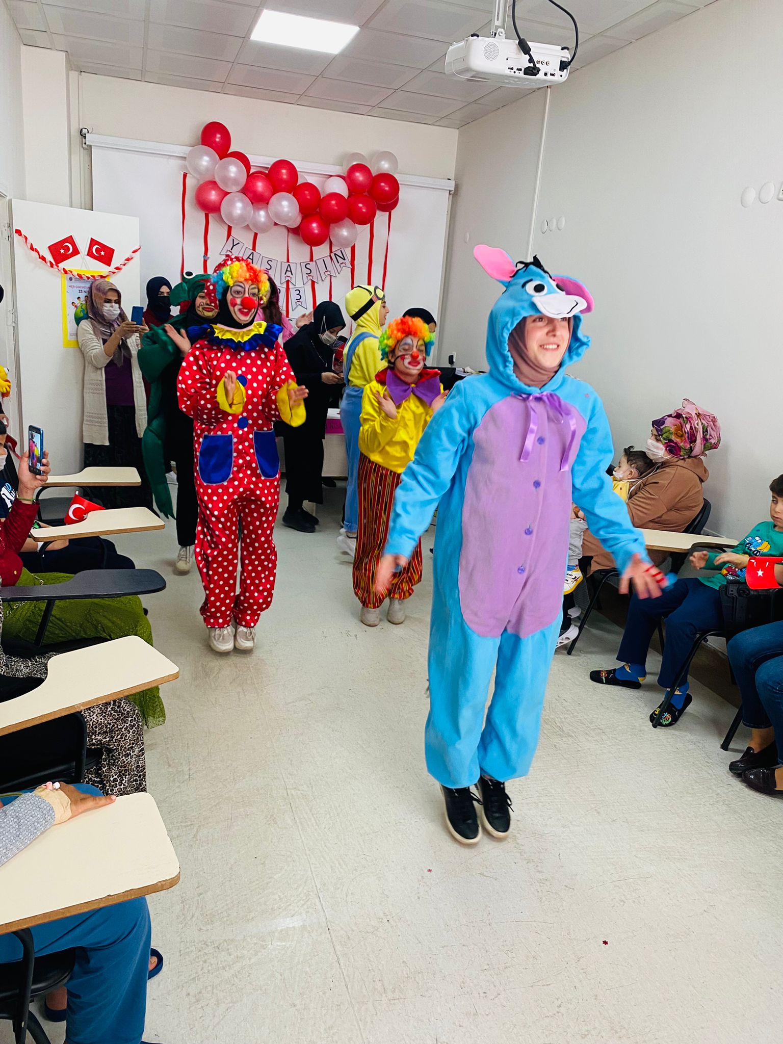 Çocuk Bakımı ve Gençlik Hizmetleri Bölümü öğrencileri, bayram dolayısıyla meydanlara inemeyen çocuklarla bir araya gelerek hastanede oluşturulan etkinlik alanında 23 Nisan’ı hep beraber kutlamanın mutluluğunu yaşadıklarını söylediler. Onlar için bu özel günün buruk geçmesini istemediklerini belirten öğrenciler, bu kapsamda düzenledikleri etkinliklerle bir nebze de olsa yaşadıkları olumsuz durumdan onları uzaklaştırarak yüzlerinde tebessüm oluşturmayı arzuladıklarını ifade ettiler.