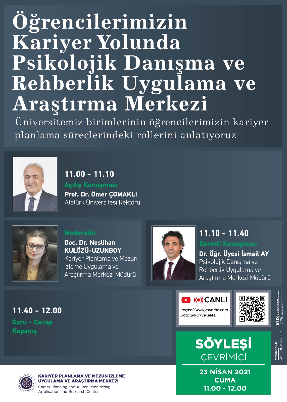 Atatürk Üniversitesinin geleceğine yön veren Yeni Nesil Üniversite Tasarım ve Dönüşüm Projesinin çıktıları arasında yer alan bu merkezin kısa zamanda oldukça verimli çalışmaların altına imza attığını aktaran Rektör Prof. Dr. Ömer Çomaklı, öğrencilerin bireysel, sosyal ve akademik gelişimlerini desteklemek, bu amaçla öğrencilere üniversite hayatlarına uyumu kolaylaştıracak becerileri kazandırmayı hedeflemek üzere Psikolojik Danışma ve Rehberlik Uygulama ve Araştırma Merkezinin çalışmalarına devam ettiğini söyledi.