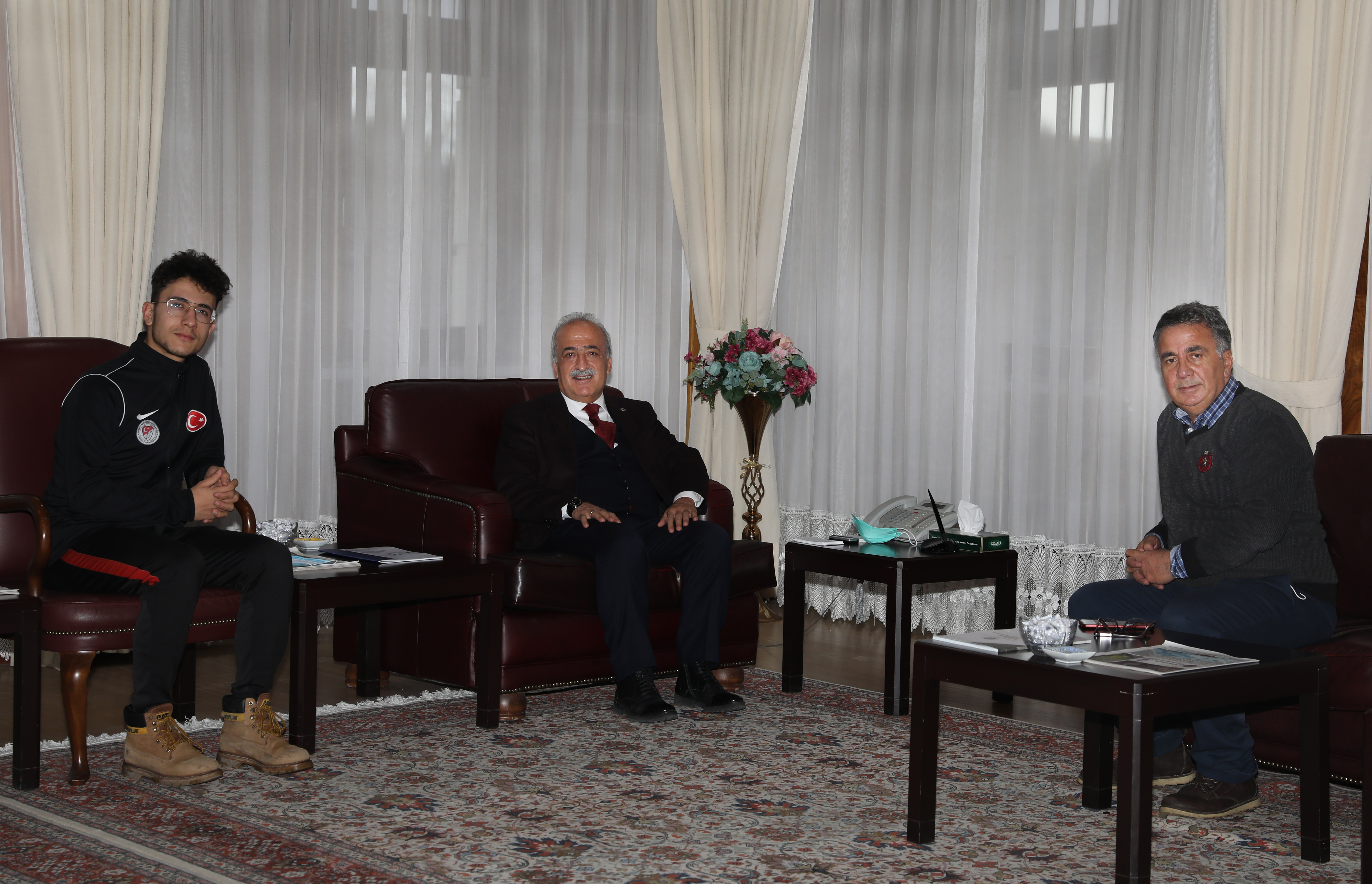 OLİMPİYATLARA KATILMA HAKKI ELDE EDEN ATATÜRK ÜNİVERSİTELİ FURKAN AKAR’DAN REKTÖR ÇOMAKLI’YA ZİYARET