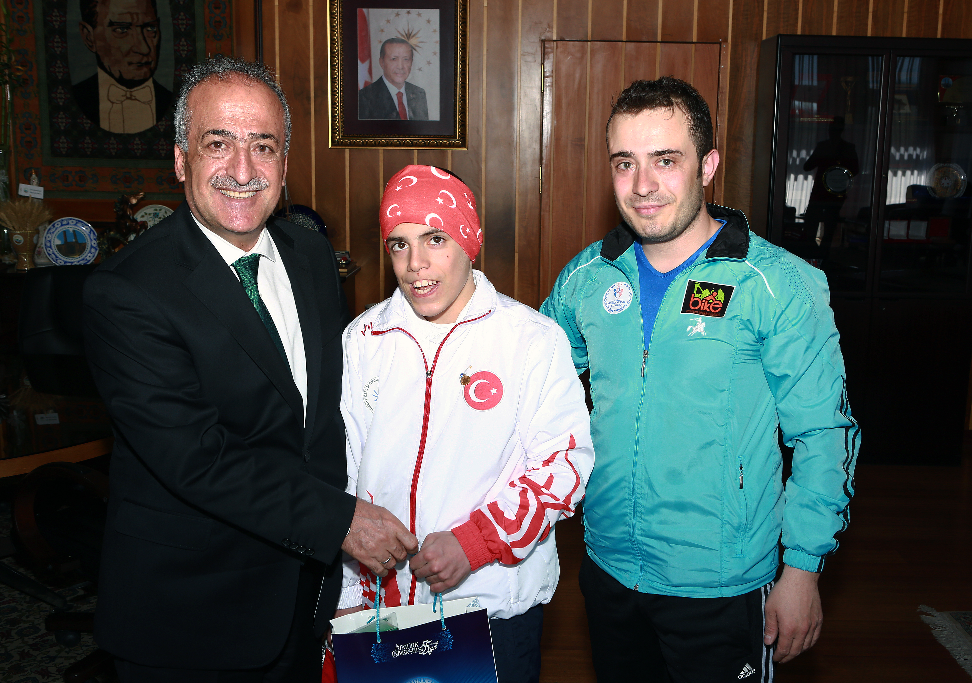 Türkiye ve dünyada çeşitli dereceler elde eden özel sporcular, Atatürk Üniversitesi Rektörü Prof. Dr. Ömer Çomaklı’yı ziyaret etti.