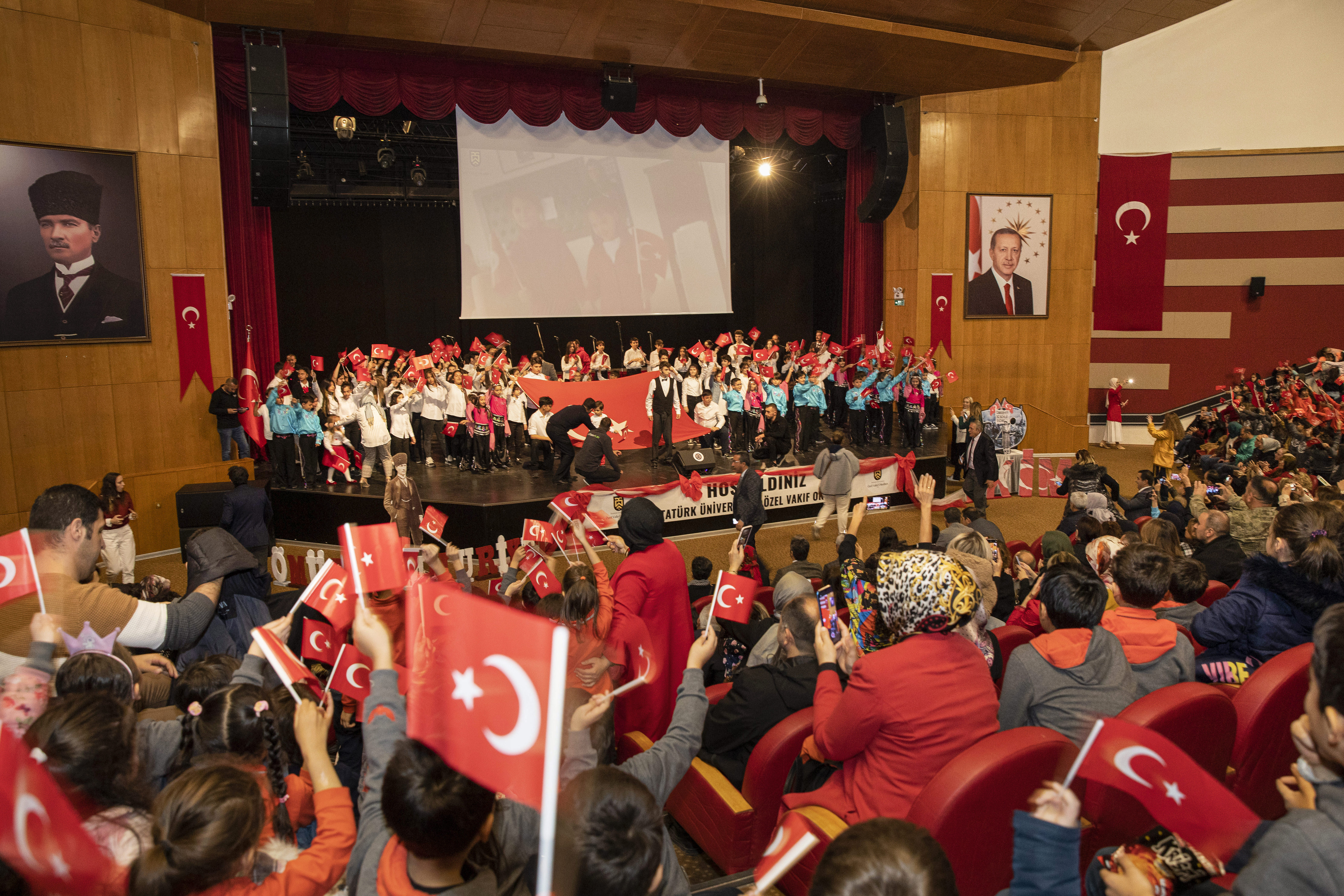 Tamamı Vakıf Okulları öğrencileri tarafından hazırlanan ve sergilenen programda şiirler okunarak, oratoryo, müzik korosu ve halk oyunları gösterileriyle Cumhuriyet Bayramı coşkuyla kutlandı. Öğrenciler, aileler ve öğretmenlerin katıldığı kutlama programında gerçekleştirilen gösteriler beğeni toplarken, anaokulu öğrencilerinin okudukları Cumhuriyet temalı şiirler dinleyicilerden büyük alkış aldı.