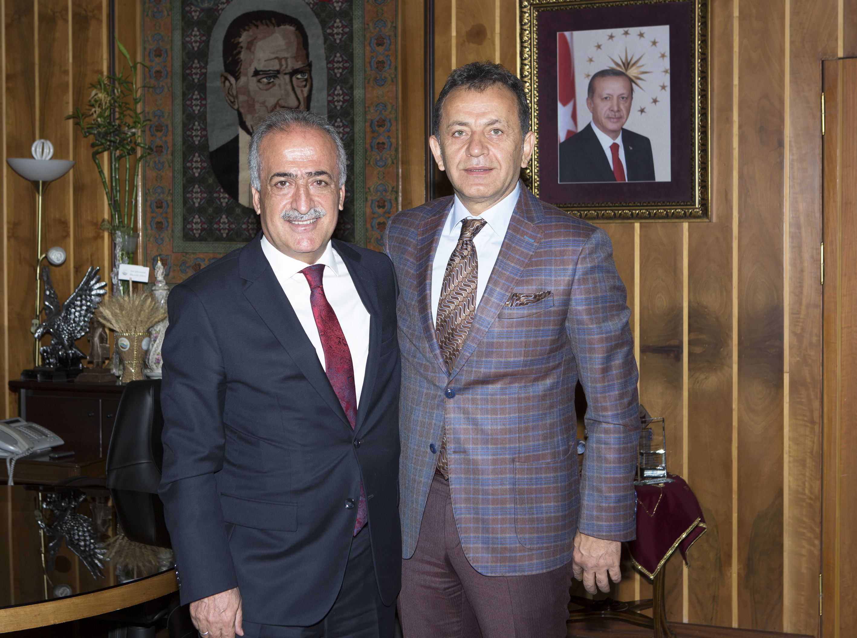 Atatürk Üniversitesi Araştırma Hastanesi Kardiyoloji Bölümü Öğretim Üyesi Prof. Dr. Serdar Sevimli ile Erzurumlu ses sanatçısı Yavuz Değirmenci, Rektör Çomaklı’yı makamında ziyaret etti.
