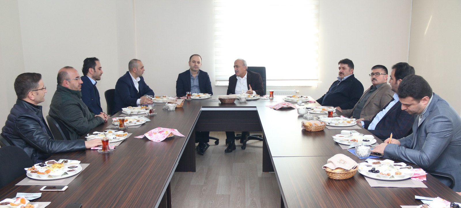 Ziyaretler kapsamında Doğu Anadolu Perakendeciler Federasyonunun (PERDER) konuğu olan Rektör Çomaklı, çeşitli incelemelerde bulunarak PERDER Başkanı Ömer Düzgün’le görüştü.
