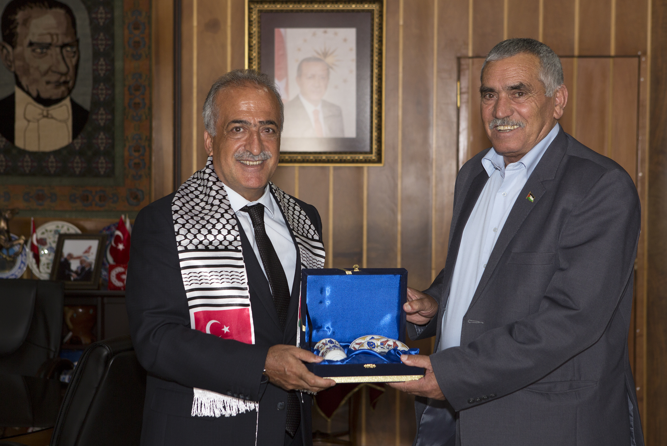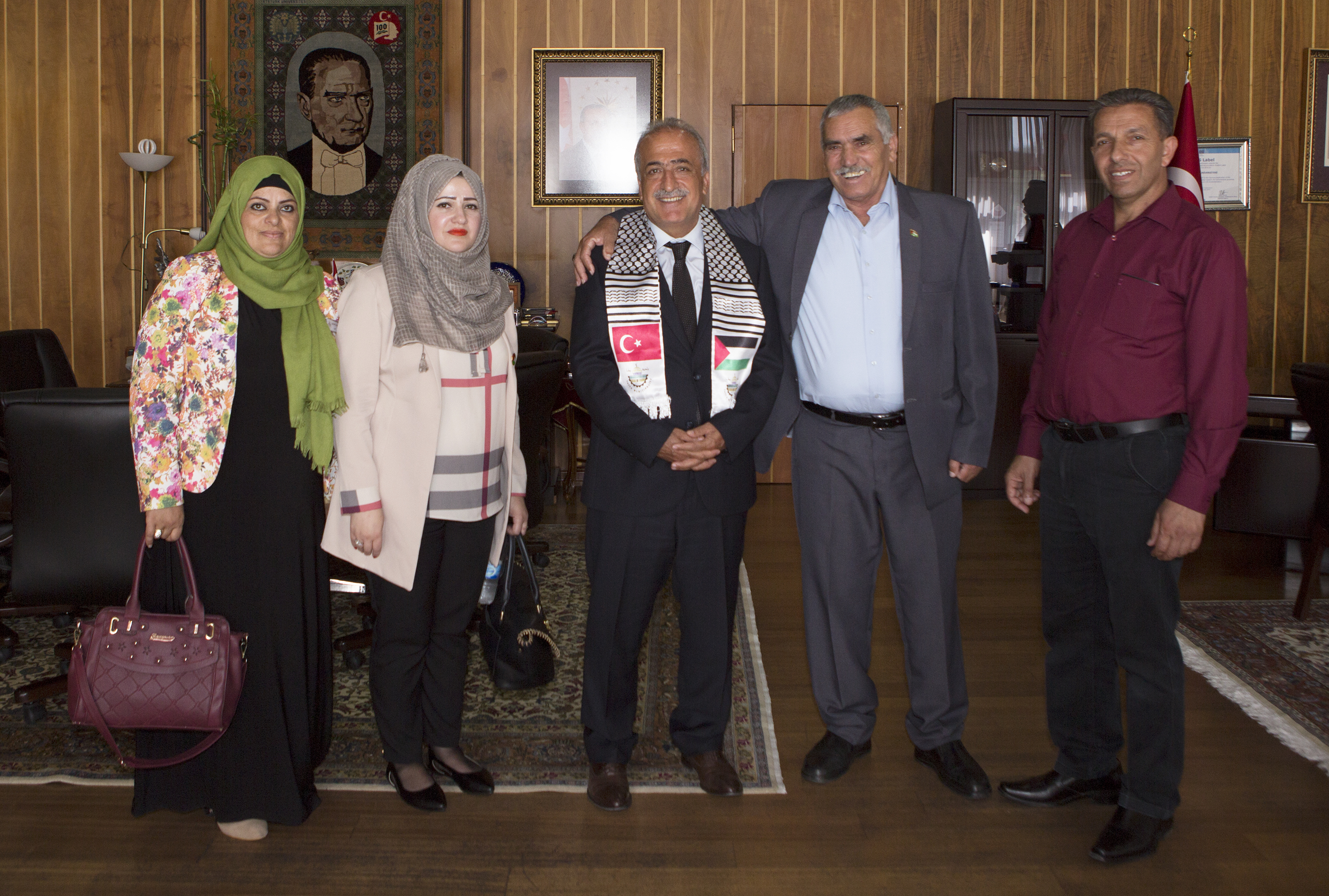 Bir dizi ziyaretlerde bulunmak üzere Erzurum’a gelen Filistin Yatta Belediye Başkanı İbrahim Ebu Zehra ile beraberindeki heyet, Atatürk Üniversitesi Rektörü Prof. Dr. Ömer Çomaklı’yı makamında ziyaret etti.