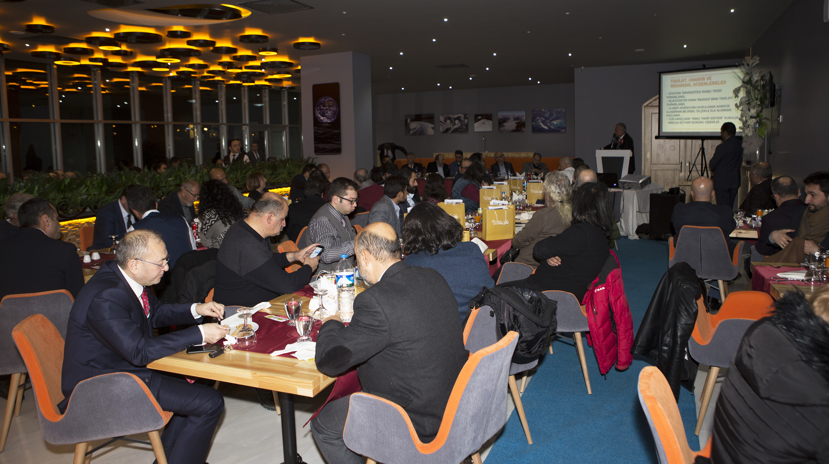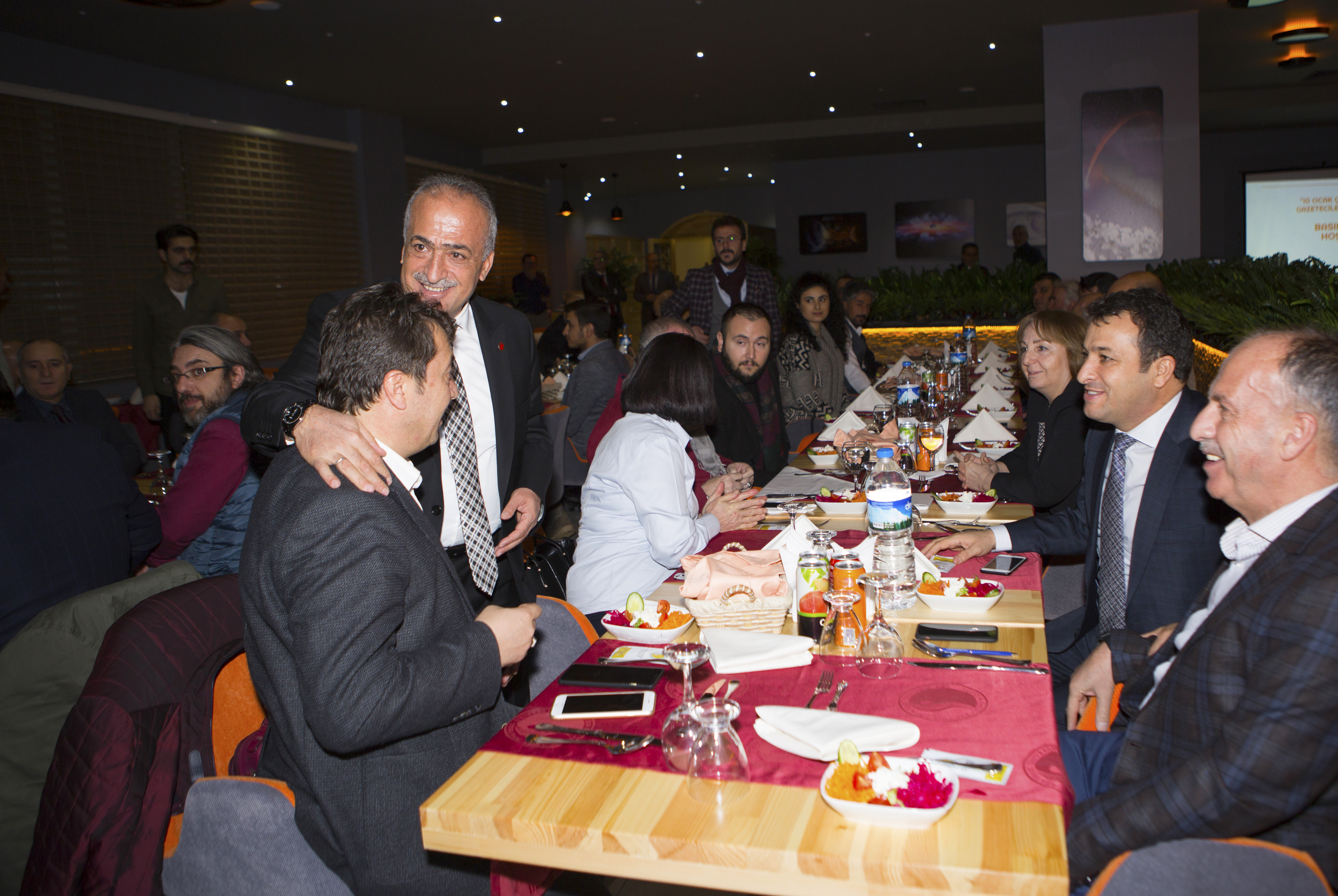 Atatürk Üniversitesi Turizm Fakültesi Uygulama Oteli Uzay Restoranda tertiplenen akşam yemeğinde, Erzurum’da görev yapan yerel ve ulusal basın kuruluşları temsilcileriyle buluşan Rektör Çomaklı, tüm gazetecilerin 10 Ocak Çalışan Gazeteciler Günü’nü kutladı.