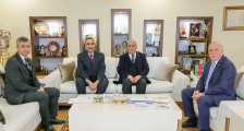 Başkan Sekmen’i makamında ziyaret eden Rektör Çomaklı’ya Veteriner Fakültesi Dekanı Prof. Dr. Yavuz Selim Sağlam ile Veteriner Fakültesi Hayvan Hastanesi Başhekimi Prof. Dr. Bülent Polat eşlik etti.