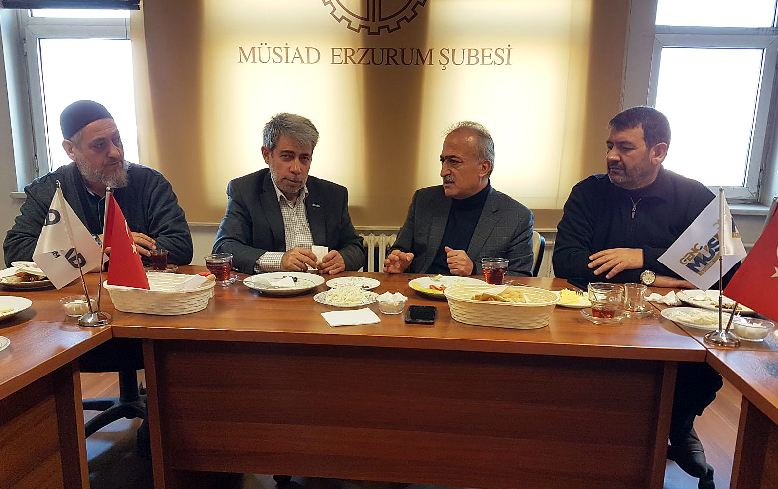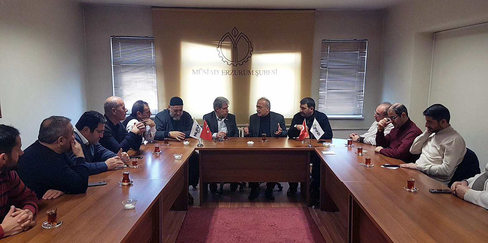 Toplantıya, MÜSİAD Erzurum Şube Başkanı Taner Bayır’ın konuğu olarak katılan Rektör Çomaklı’nın yanı sıra, MÜSİAD Yönetim Kurulu Üyeleri de yer aldı.