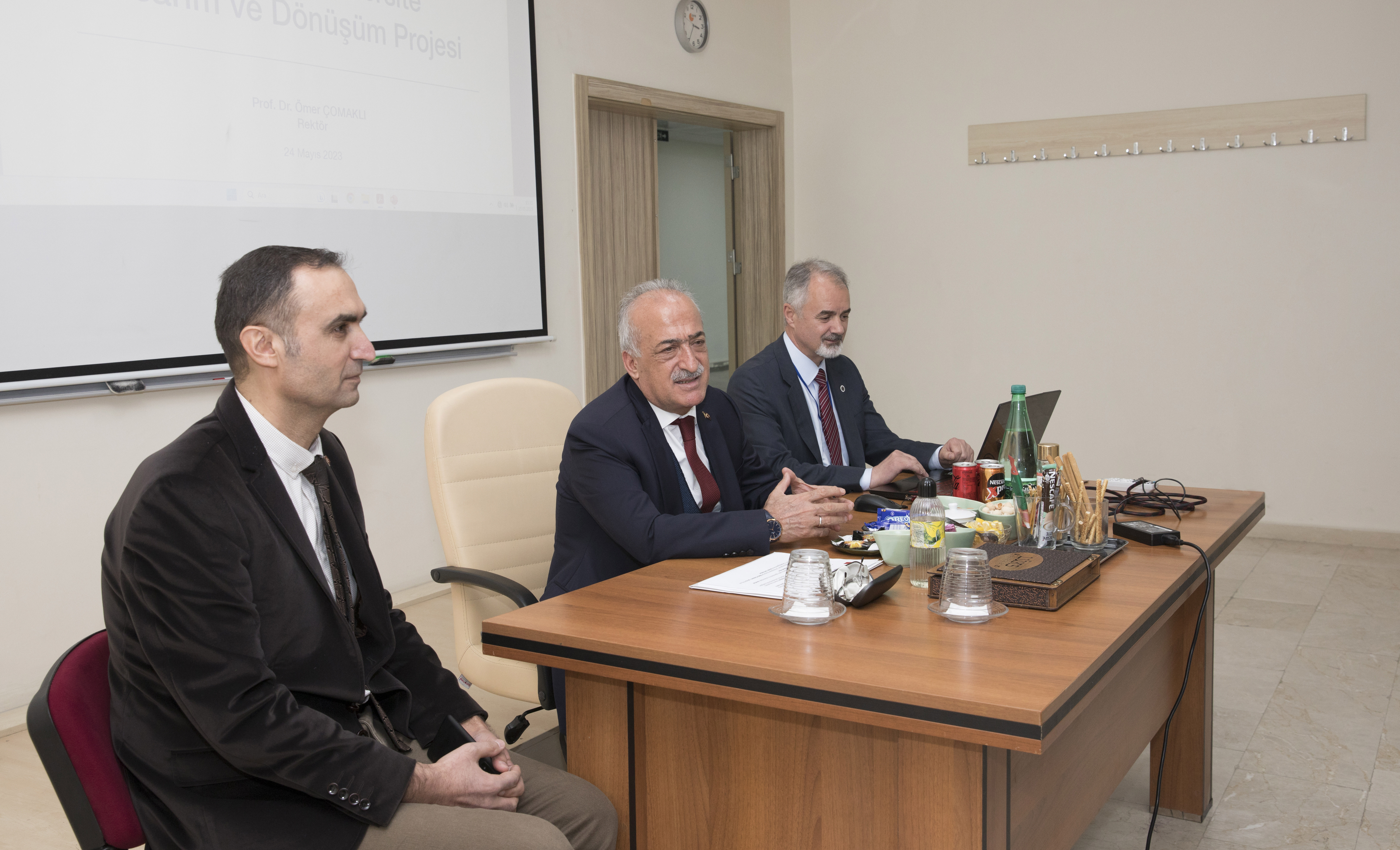 Yurt dışı ve yurt içi ziyaretleriyle birlikte üniversitedeki çeşitli birim ziyaretlerine de devam eden Rektör Çomaklı, bu ziyaretler kapsamında öğretim üyeleri ve idari personelle bir araya geldi.
