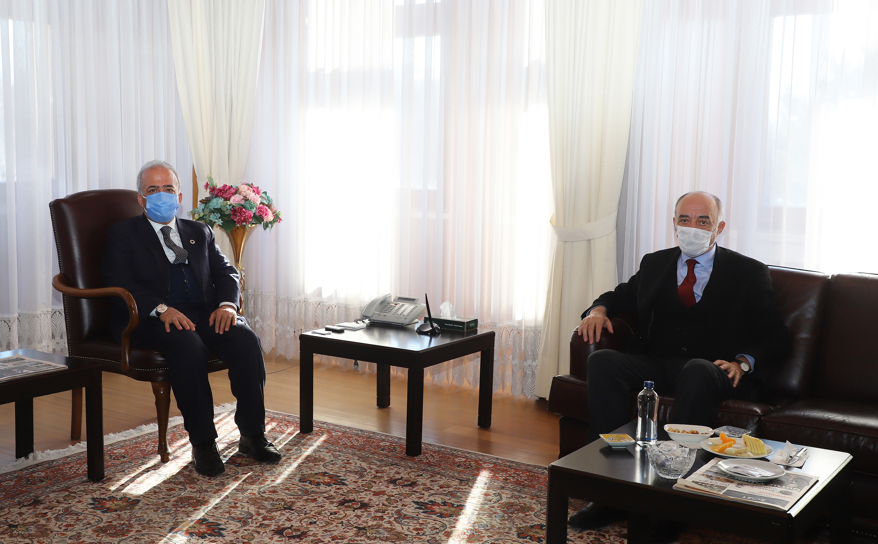 Üniversite-sanayi iş birliklerine katkı sunmak, fikir alışverişinde bulunmak ve üniversitedeki gelişmeler hakkında bilgi sahibi olmak amacıyla Atatürk Üniversitesini ziyaret eden Erzurum Ticaret ve Sanayi Odası (ETSO) Yönetim Kurulu Başkanı Lütfü Yücelik, Rektör Prof. Dr. Ömer Çomaklı ile bir araya geldi.
