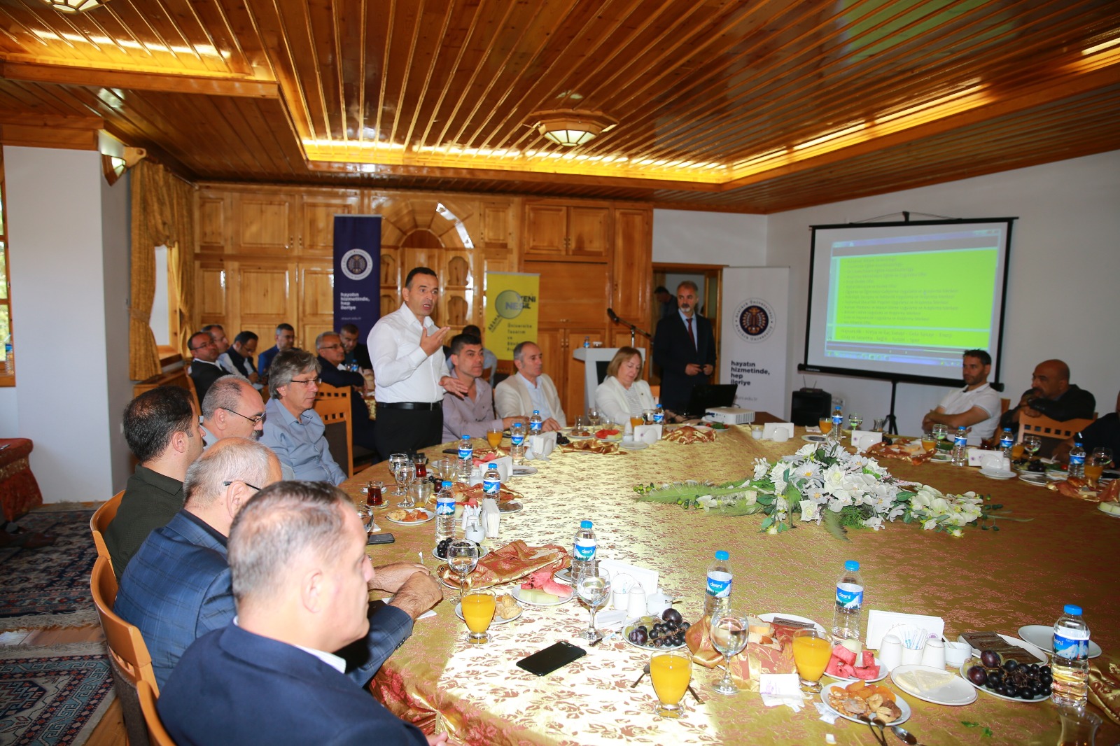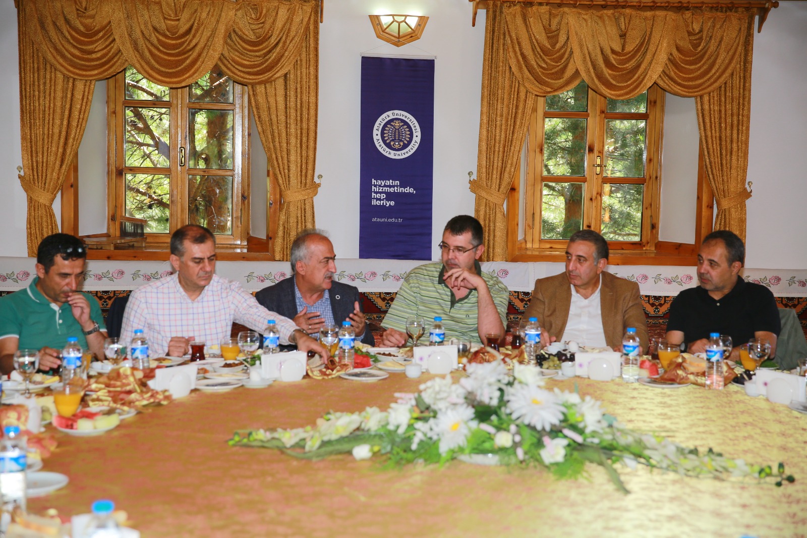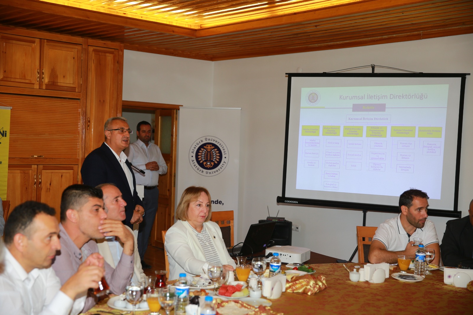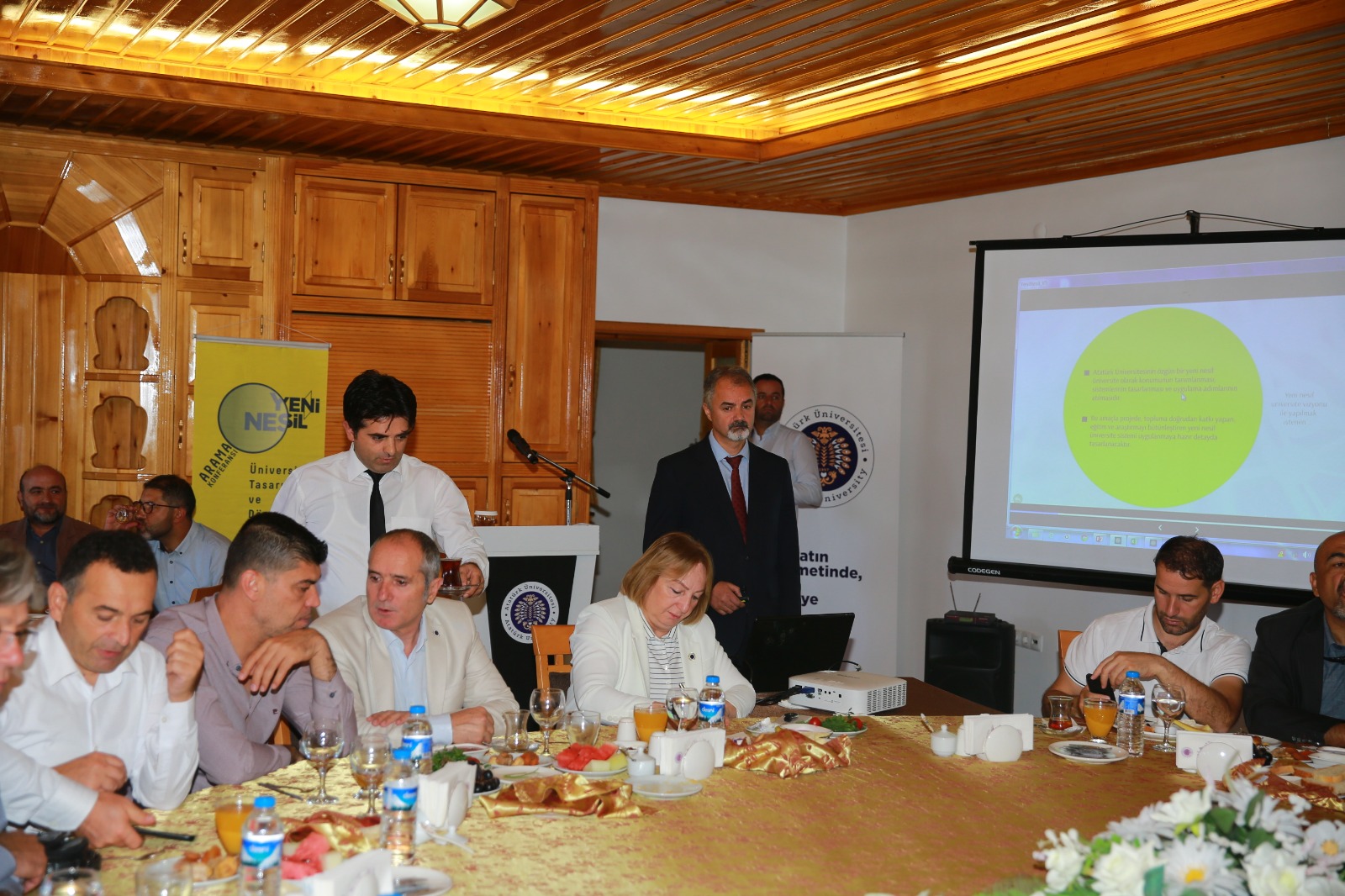 Spor Merkezi ziyaretinin ardından yerleşkede yer alan Erzurum Evinde, İl Emniyet Müdürü Mehmet Aslan’ın da katılımıyla gerçekleşen programda misafirlerini ağırlayan Rektör Çomaklı, Yeni Nesil Üniversite kapsamında yürütülen projeler hakkındaki detayları paylaştı. Bu doğrultuda yeni tasarlanan koordinatörlüklerin ve yeniden tanzim edilerek aktif hale getirilen birimlerin yöneticileri de kendi çalışmaları hakkında bir dizi sunum yaptı.