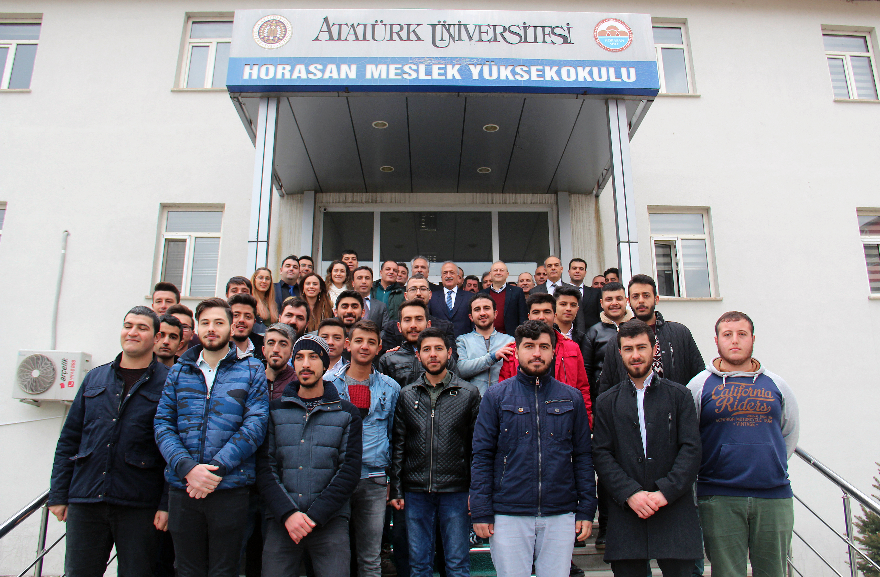 Horasan ziyaretini sona erdiren Rektör Çomaklı, öğrencilerle hatıra fotoğrafı çektirmeyi de ihmal etmedi.