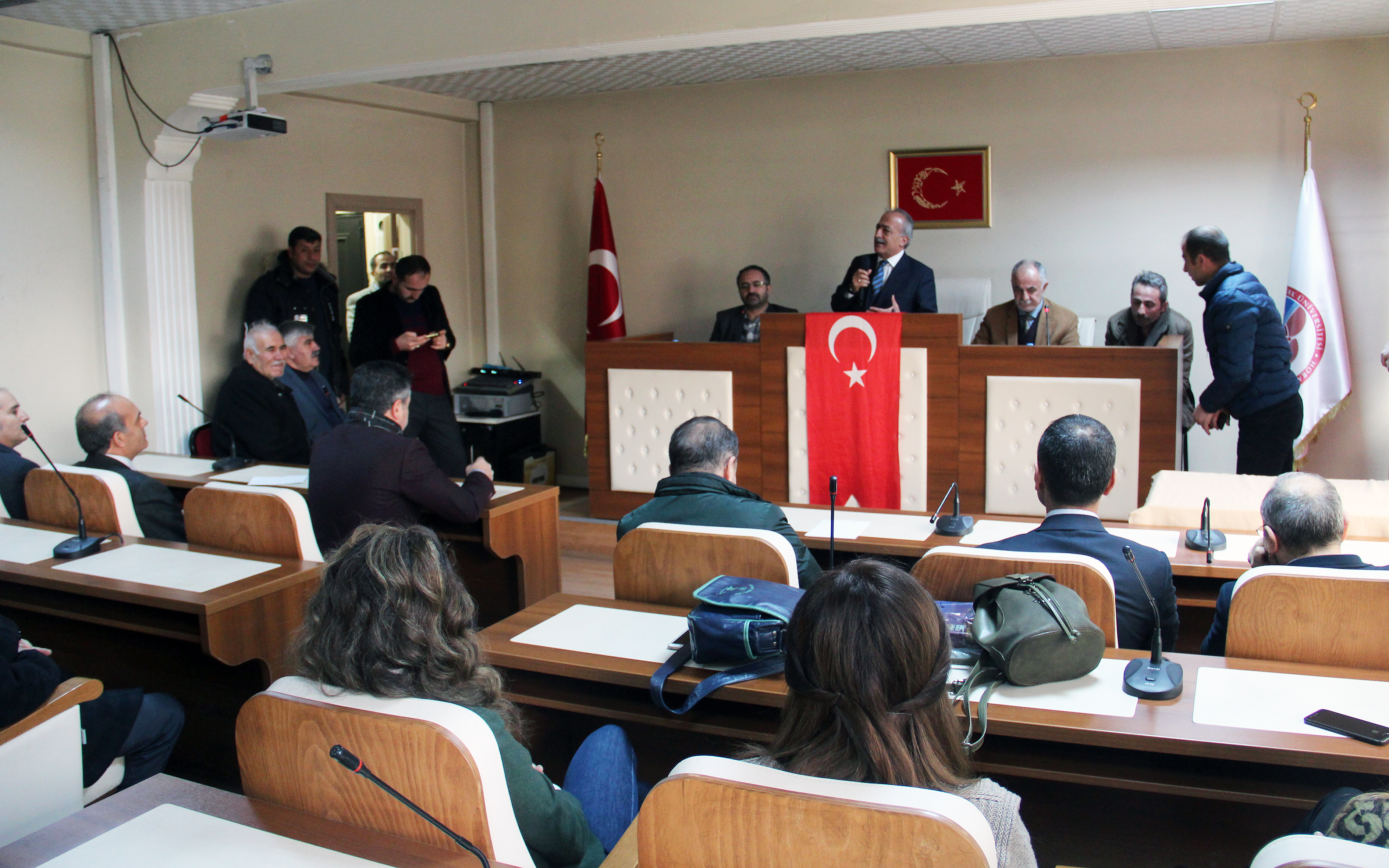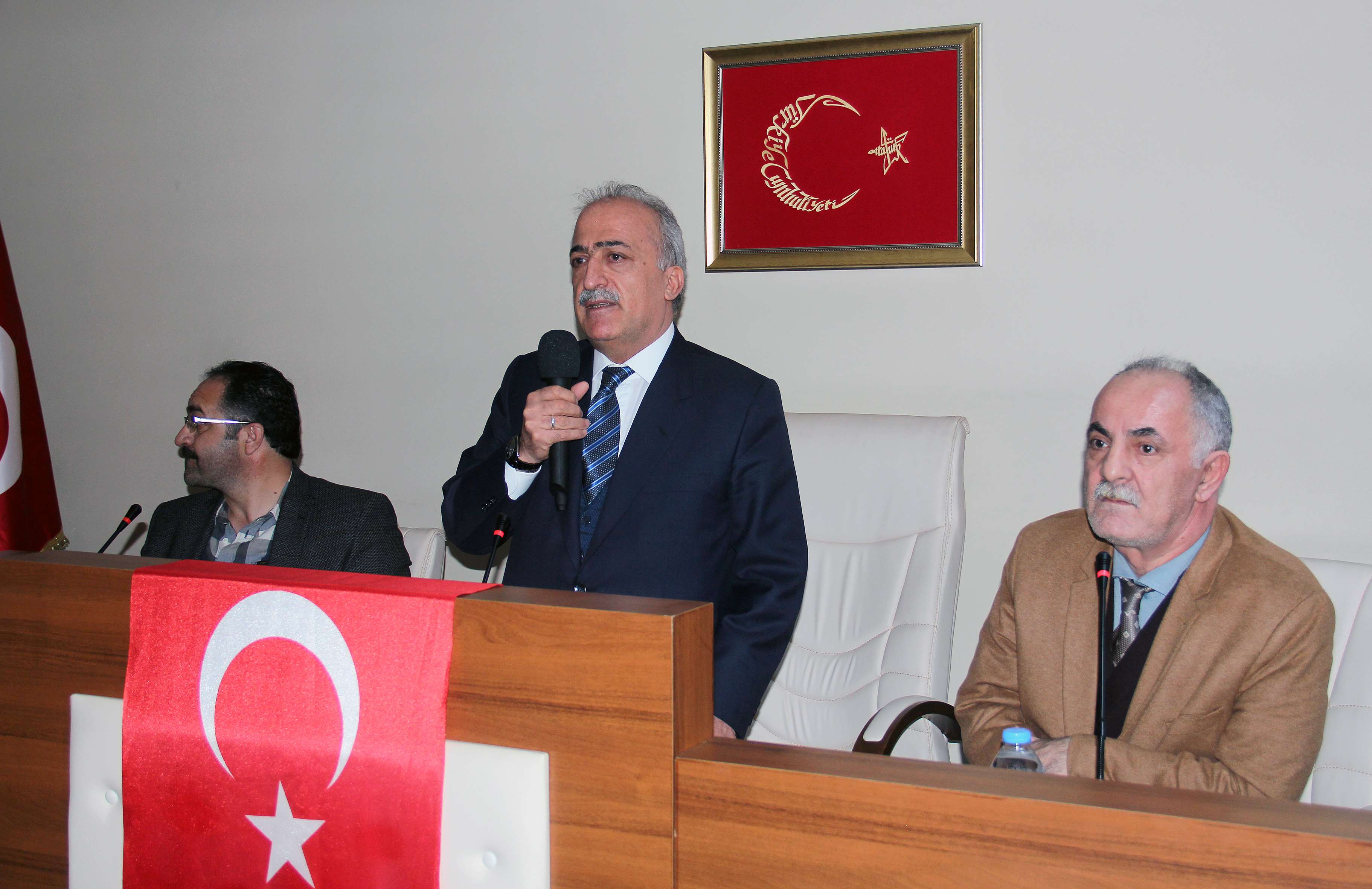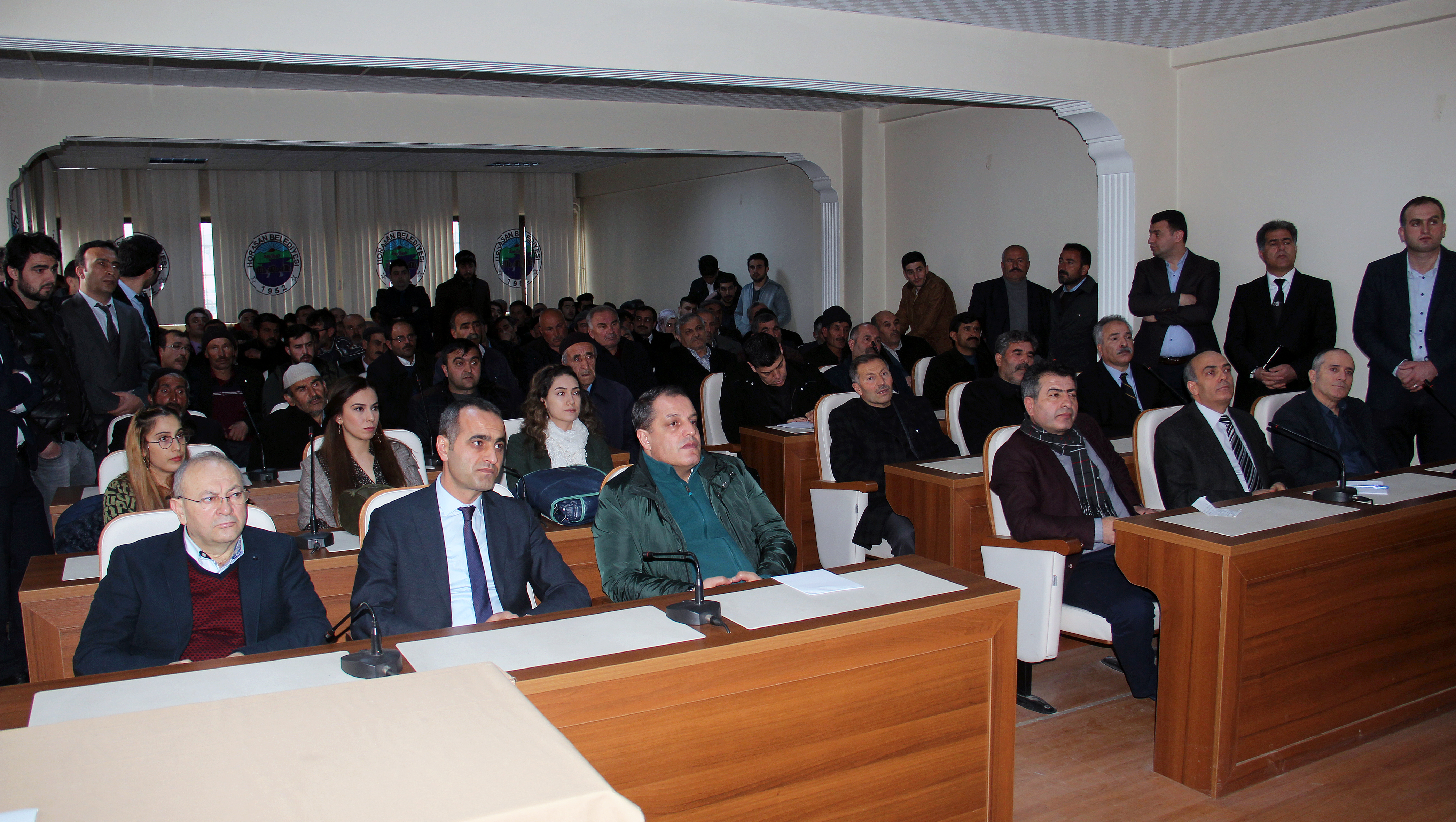 Üniversitenin tarım ve hayvancılıkla ilgili birim yöneticileriyle birlikte Horasan’ı ziyaret eden Rektör Çomaklı, Horasan Belediyesi Meclis Salonunda ilçe halkıyla bir araya geldi.