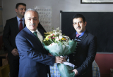Yarımca İlköğretim Okulu sınıf öğretmeni Mesut Dövenci ve öğrencilerini okullarında ziyaret eden Rektör Çomaklı, Dövenci’nin Öğretmenler Günü’nü kutlayarak çiçek verdi.