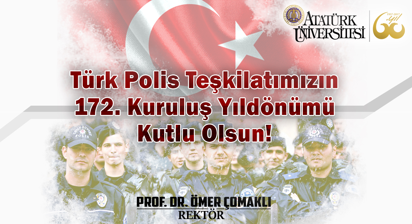 Kurulduğu tarihten bugüne huzur ve barış ortamının korunması, asayişin sağlanması, ülkemizin birlik ve bütünlüğünün korunması hususunda, canları pahasına özveri ile çalışan, gece gündüz demeden görevleri başında olan Polisimize müteşekkiriz. Köklü geçmişimizden ve halkımızdan aldıkları güven ve destekle tarihine gururla dolu nice başarılı sayfa ekleyeceklerine yürekten inandığımız Polis Teşkilatının 172. yıldönümünü kutluyor, görevleri uğrunda şehit olan Aziz polislerimize Allah’tan rahmet, teşkilatın her kademesinde hâlen görevde bulunan fedakâr polislerimize, onların şahsında tüm emniyet mensuplarına, kıymetli ailelerine ve bu vesile ile emekli polislerimize minnet, şükran duygularımızla sağlık ve esenlikler diliyorum.