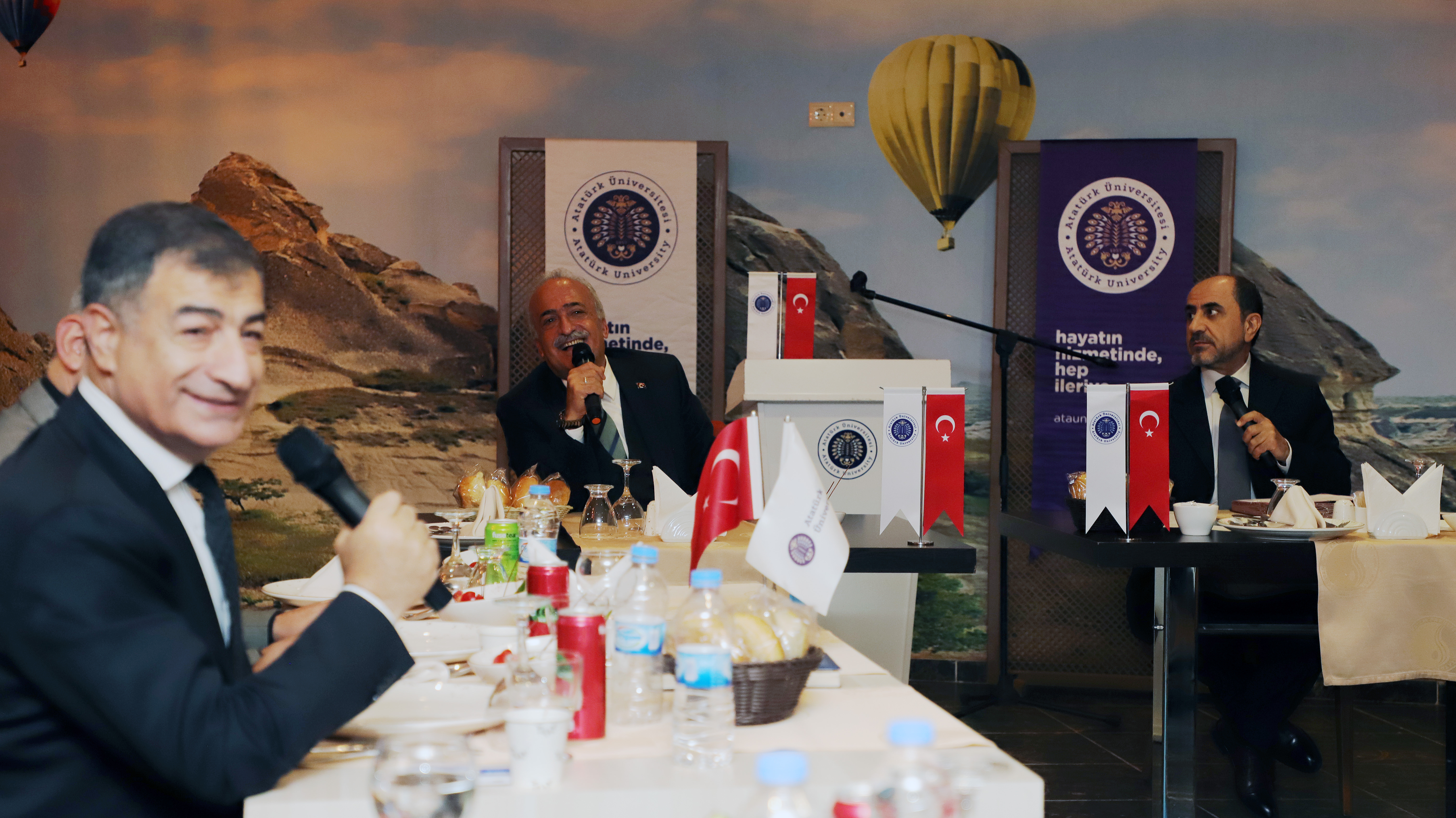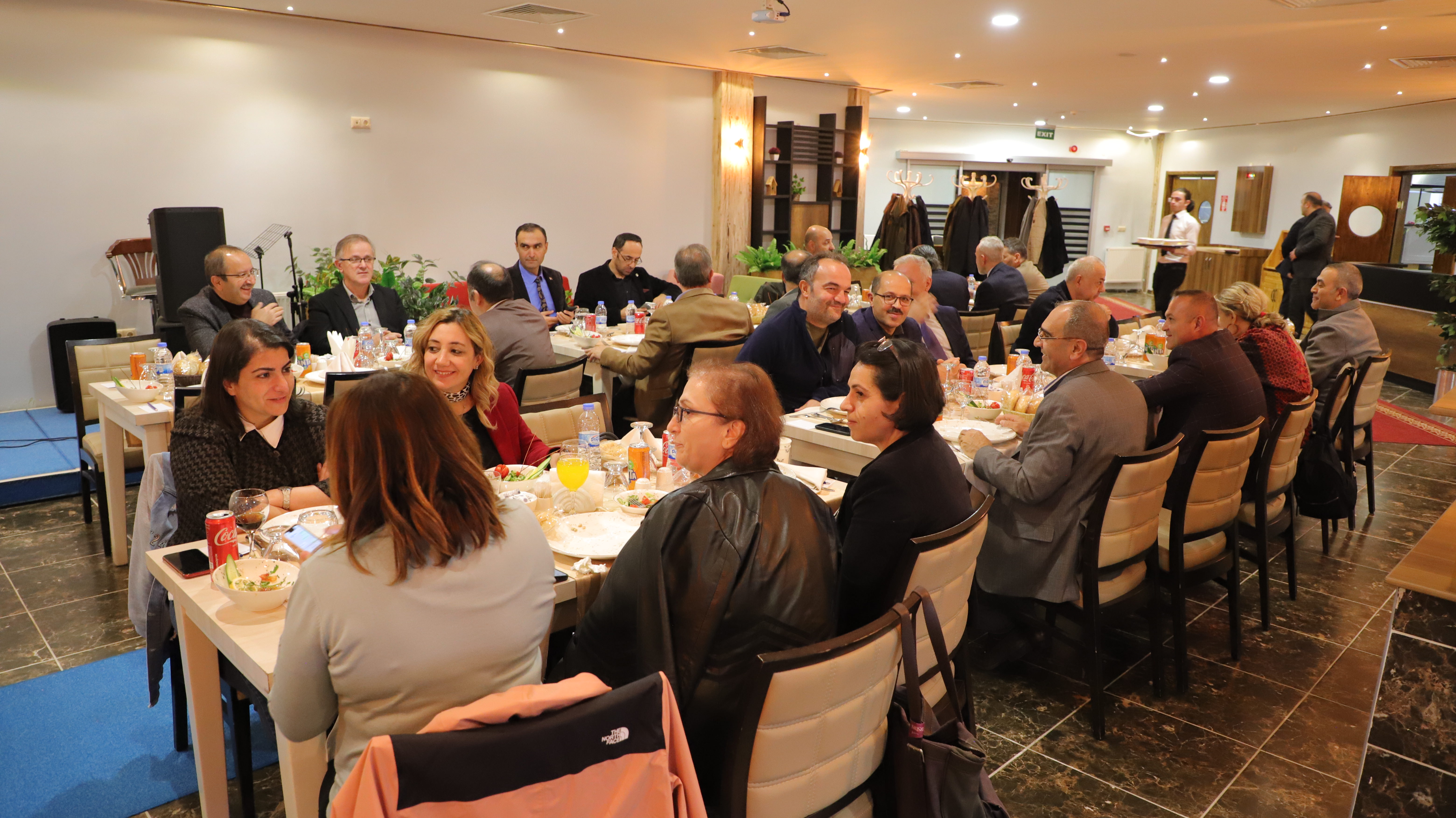 İlk olarak Dijital Dönüşüm ve Büyük Veri Çalışmaları kategorisinde YÖK 2022 Yılı Üstün Başarı Ödülü aldıklarını, ardından da öğrencileri sektör temsilcileriyle buluşturma ve onları iş hayatına hazırlama açısından büyük önem taşıyan Doğu Anadolu Kariyer Fuarının Öğrencilerin En Memnun Olduğu Kariyer Fuarı seçilmesiyle ikinci ödülü de Atatürk Üniversitesine kazandırdıklarını belirten Rektör Çomaklı: “65. Yılını kutlayan Atatürk Üniversitesi, son yıllarda yaşadığı yapısal değişim ve dönüşüm ile önemli bir ivme kazanmış ve birçok alanda adından söz ettirmeye başlamıştır. Hem saygın sıralama kuruluşlarındaki yerimiz hem de elde edilen ödüller bunun en büyük göstergesidir. Üniversitemiz dün olduğu gibi bugün de bilim üretmeye ve ürettiği bilimi toplumun faydasına kullanmaya devam etmektedir. Ülkemizin her alanda ortaya koyduğu vizyona yönelik adımlar atılarak destek verilmekte, akademik ve bilimsel çalışmalar sonuna kadar desteklenmekte ve öğrencilerimizin kaliteli eğitim almaları için her türlü çalışma hayata geçirilmektedir. Bu çabanın sonucunda da üniversitemiz çeşitli ödüller ile taltif edilmekte, bu durum da bizleri ziyadesiyle gururlandırmaktadır. Bu başarıların sadece bizlere değil tüm üniversite ailemize ait olduğunu göstermek ve yaşadığımız mutluluğu paylaşmak için siz değerli çalışma arkadaşlarımız ile her hafta düzenlediğimiz toplantımızı yemek programıyla gerçekleştirmek istedik. Sizlerin nezdinde tüm üniversite mensuplarımıza teşekkür ediyor, çalışmalarımızın daha nice ödüllere vesile olmasını diliyorum” şeklinde konuştu.