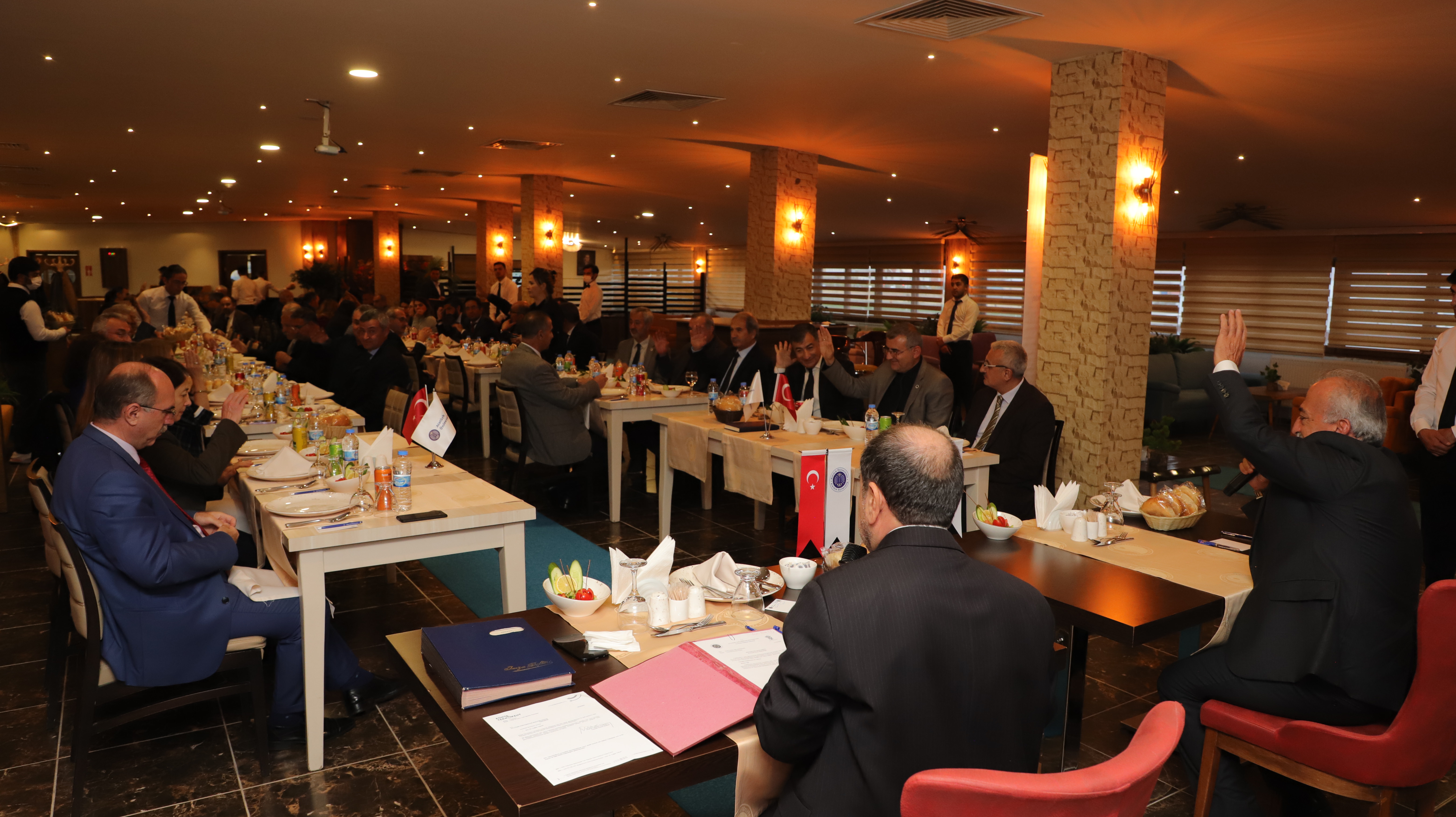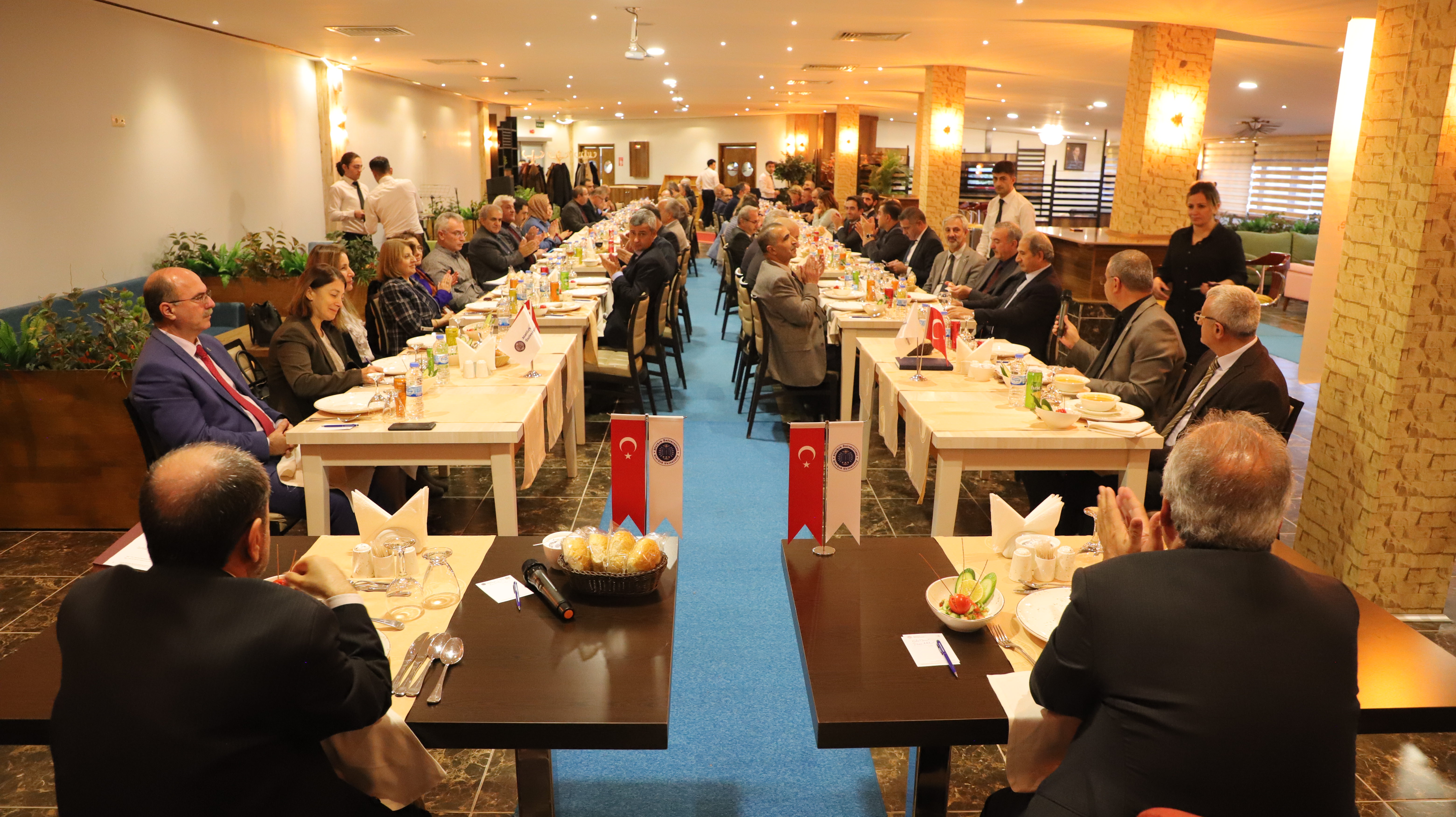 Atatürk Üniversitesi Rektörü Prof. Dr. Ömer Çomaklı, senato ile yönetim kurulu toplantılarını düzenlediği yemek programıyla gerçekleştirdi. Ata Uygulama Otelinde gerçekleşen yemek programına Rektör Prof. Dr. Ömer Çomaklı’nın yanı sıra, rektör yardımcıları, senatörler, yönetim kurulu üyeleri ve genel sekreter katıldı.