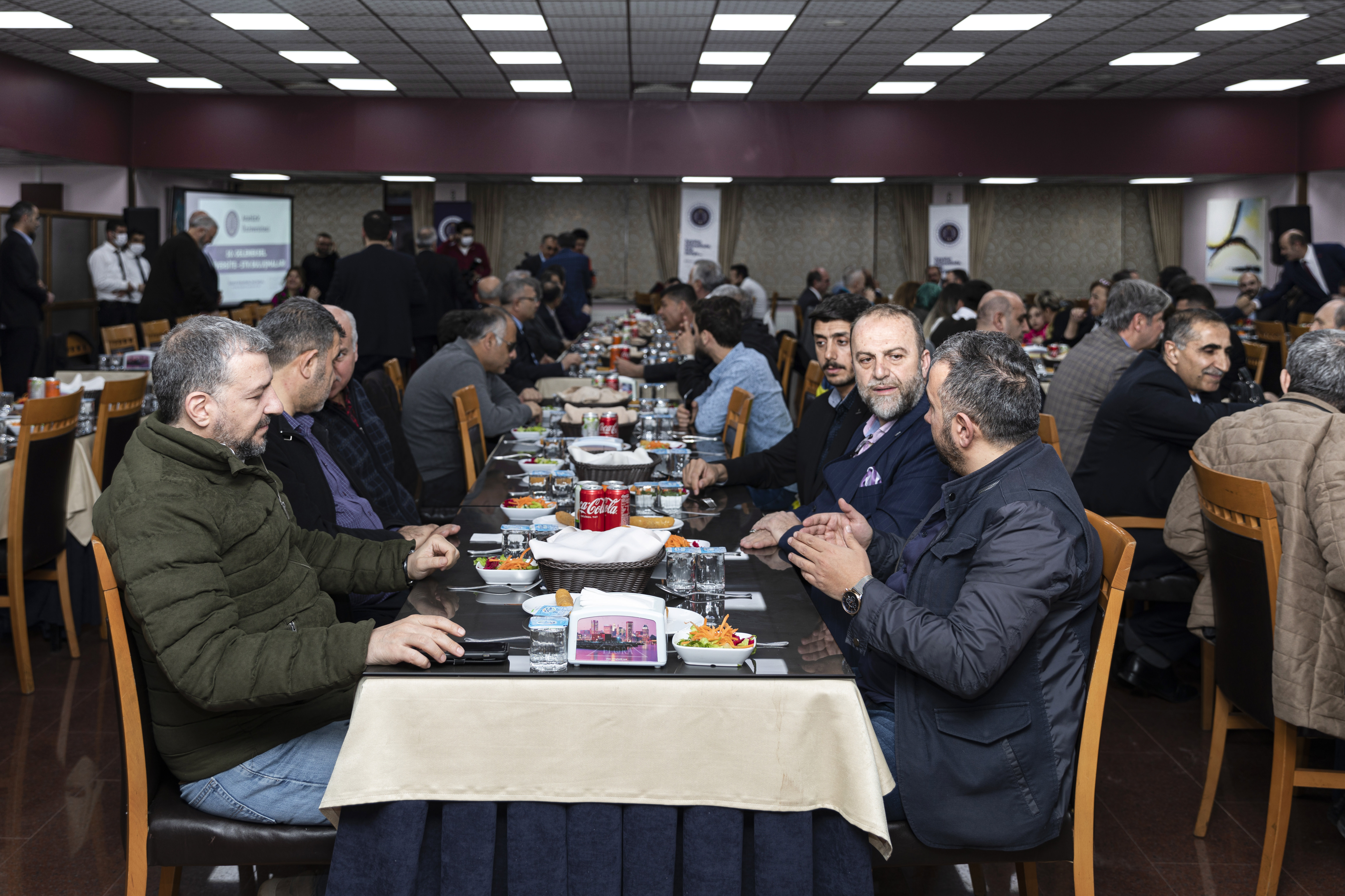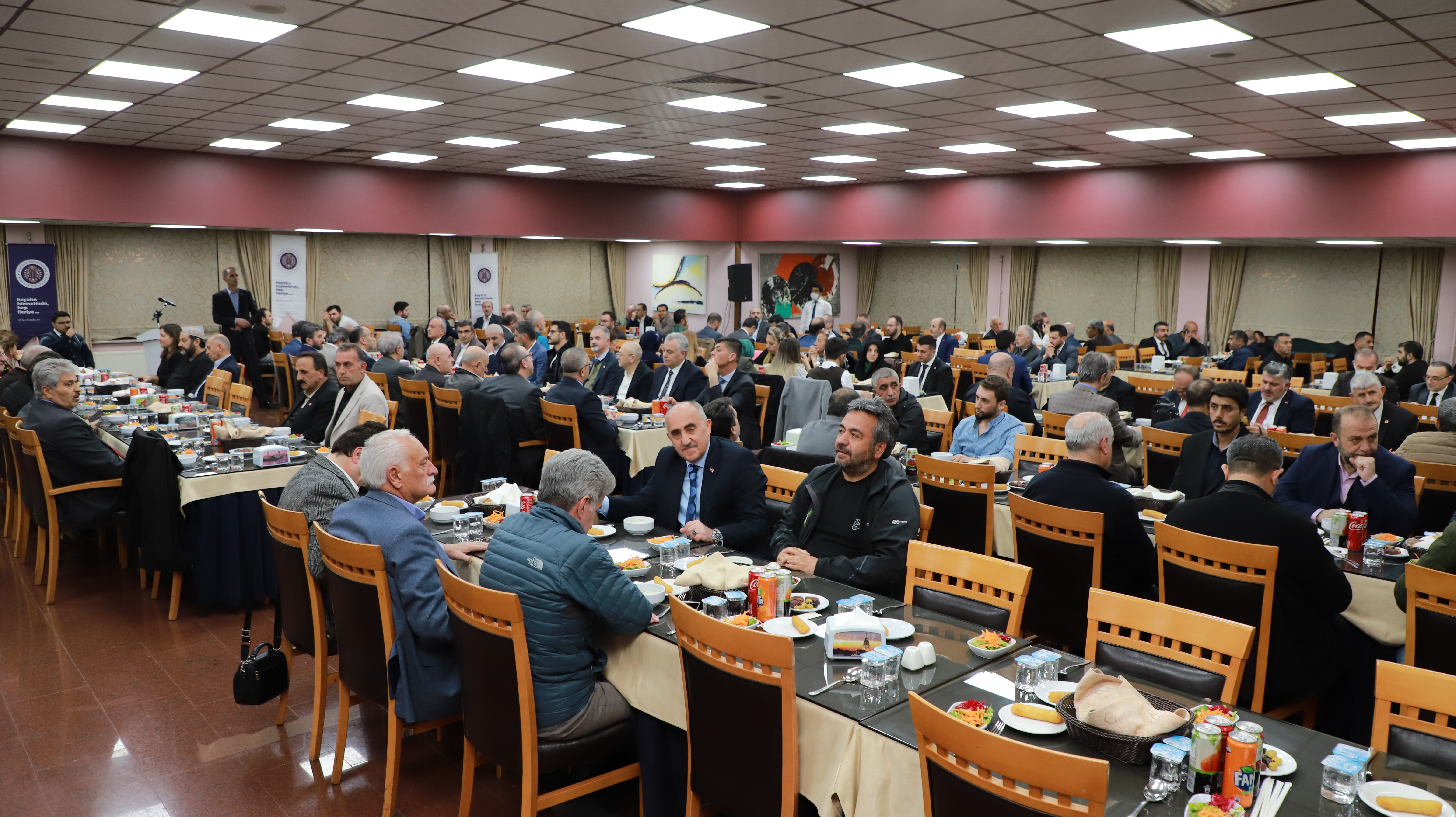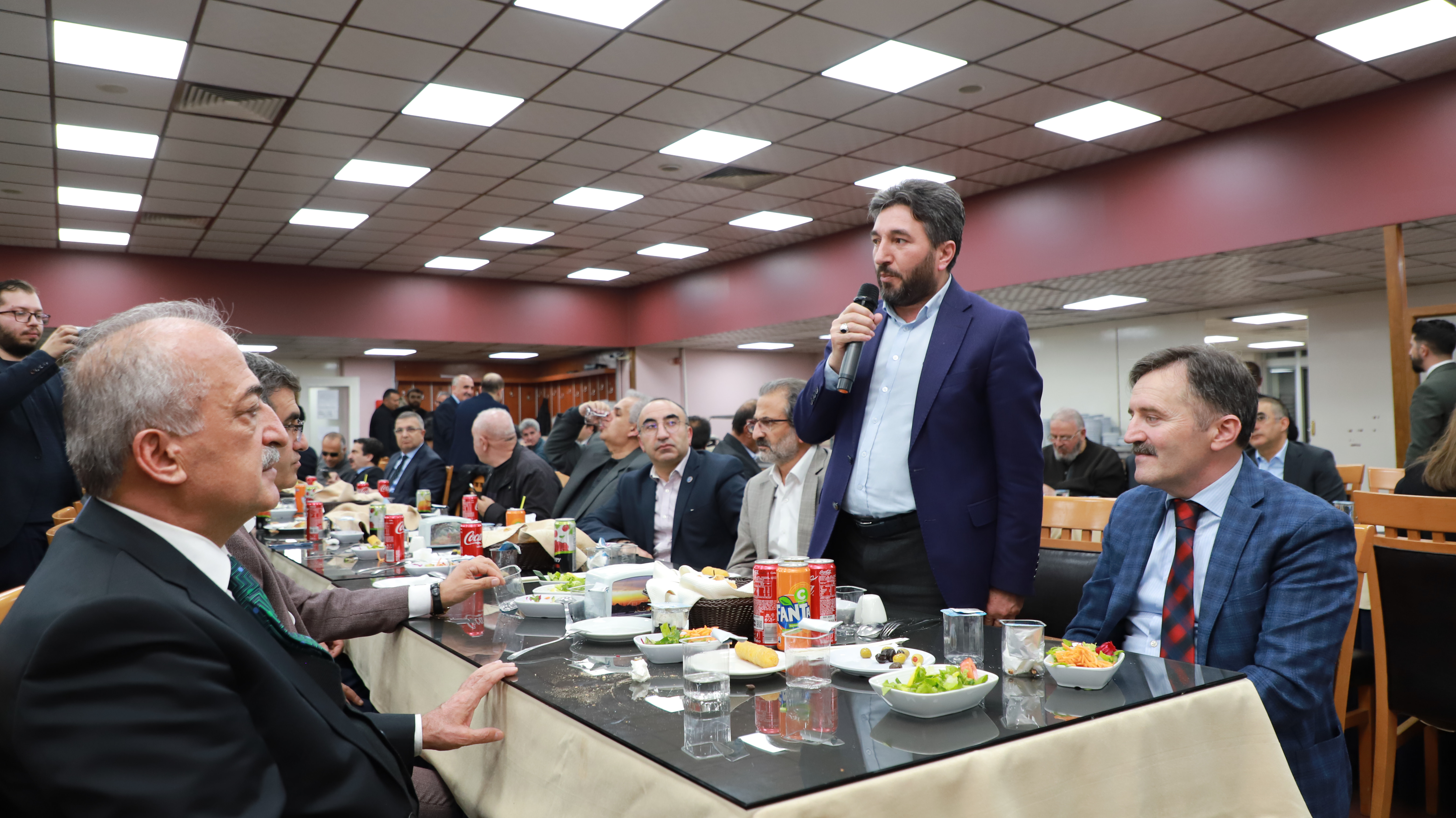 Şehrin kültür, sanat, ilim ve irfan değerlerini yaşatmak, bunları geliştirmek ve geniş kitlelerle paylaşmak üzere çalışma yapan 200’den fazla STK yöneticisiyle 10. kez bir araya gelen Rektör Çomaklı, iftar saatinden önce misafirlerini masalarında ziyaret ederek bir süre sohbet etti.