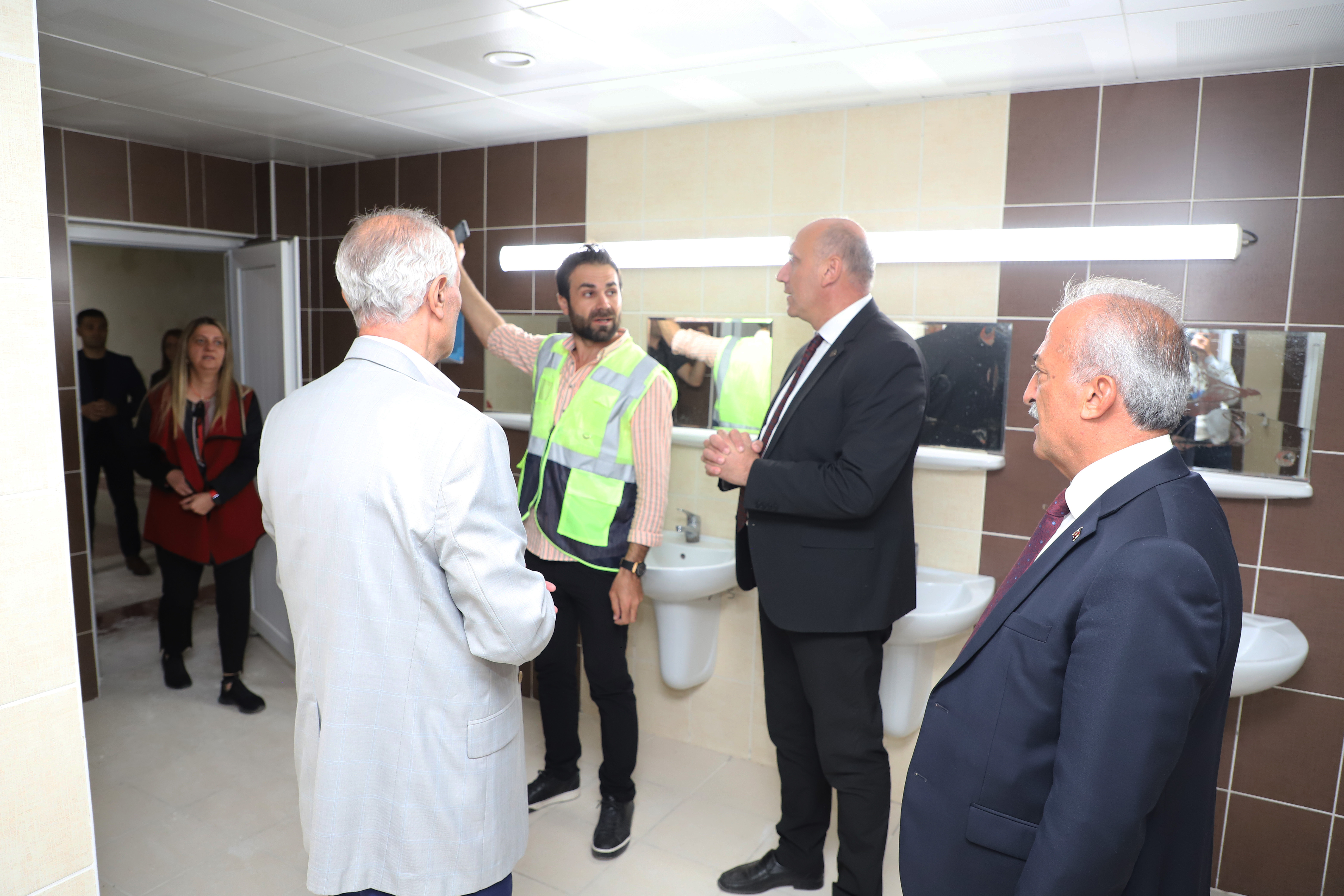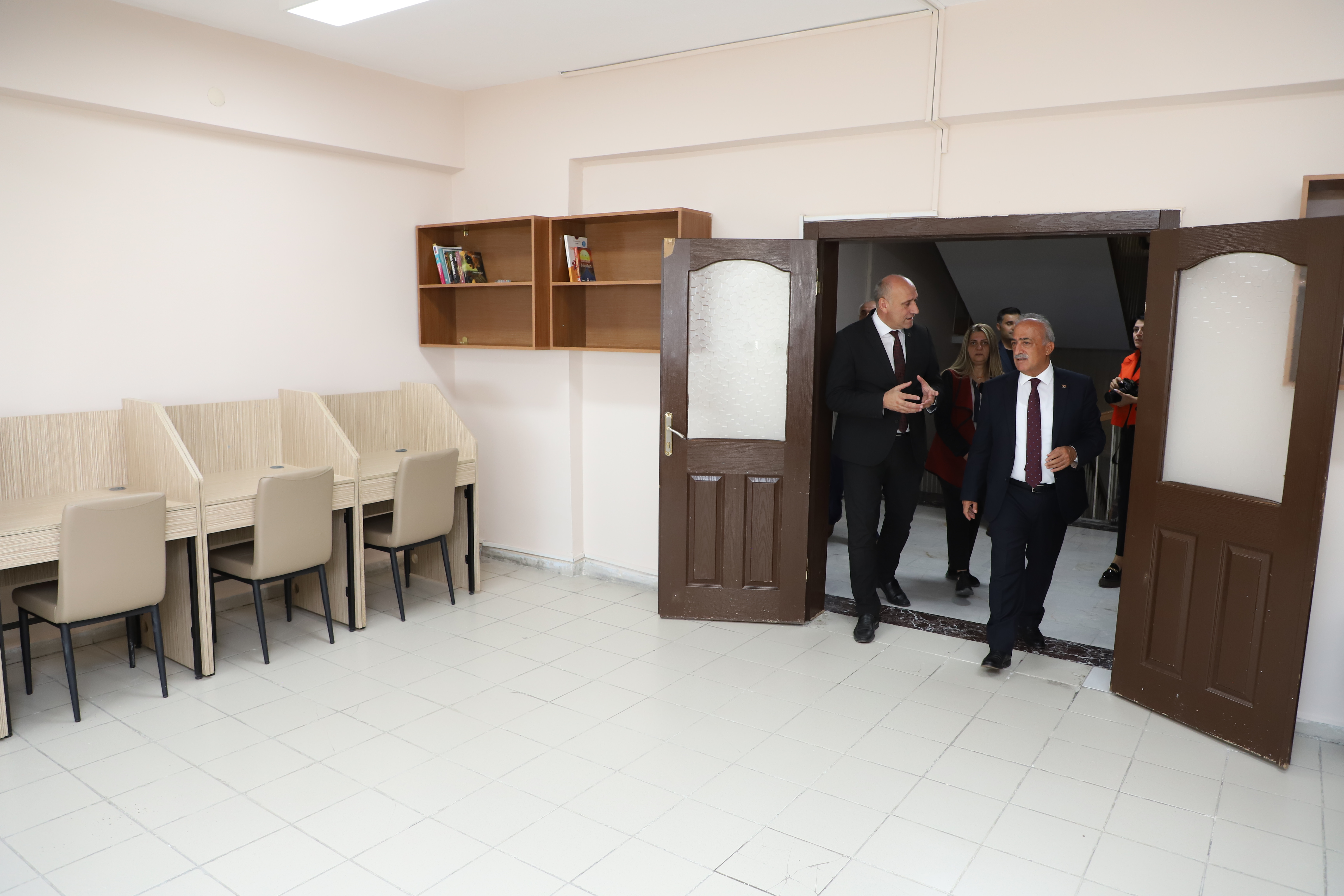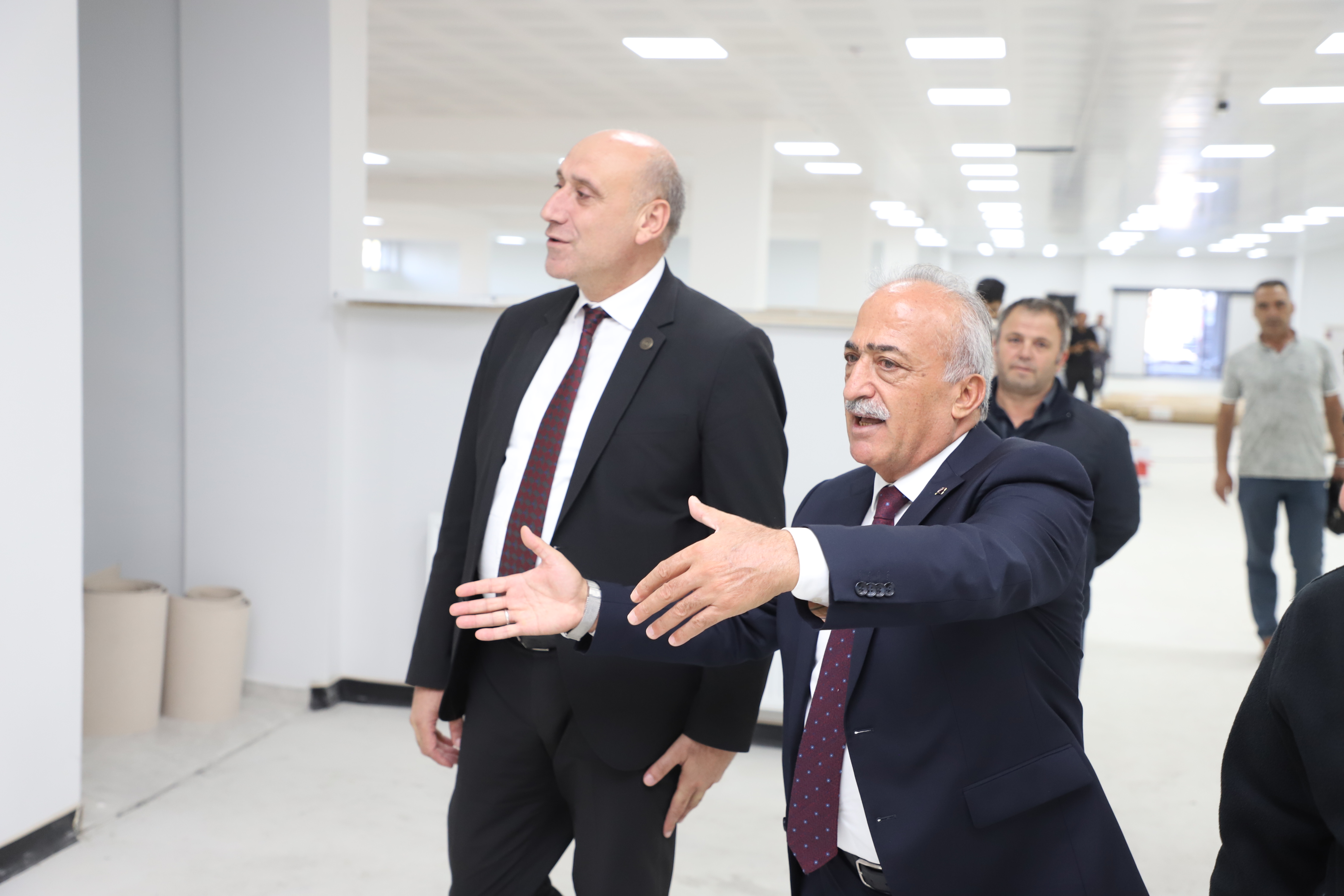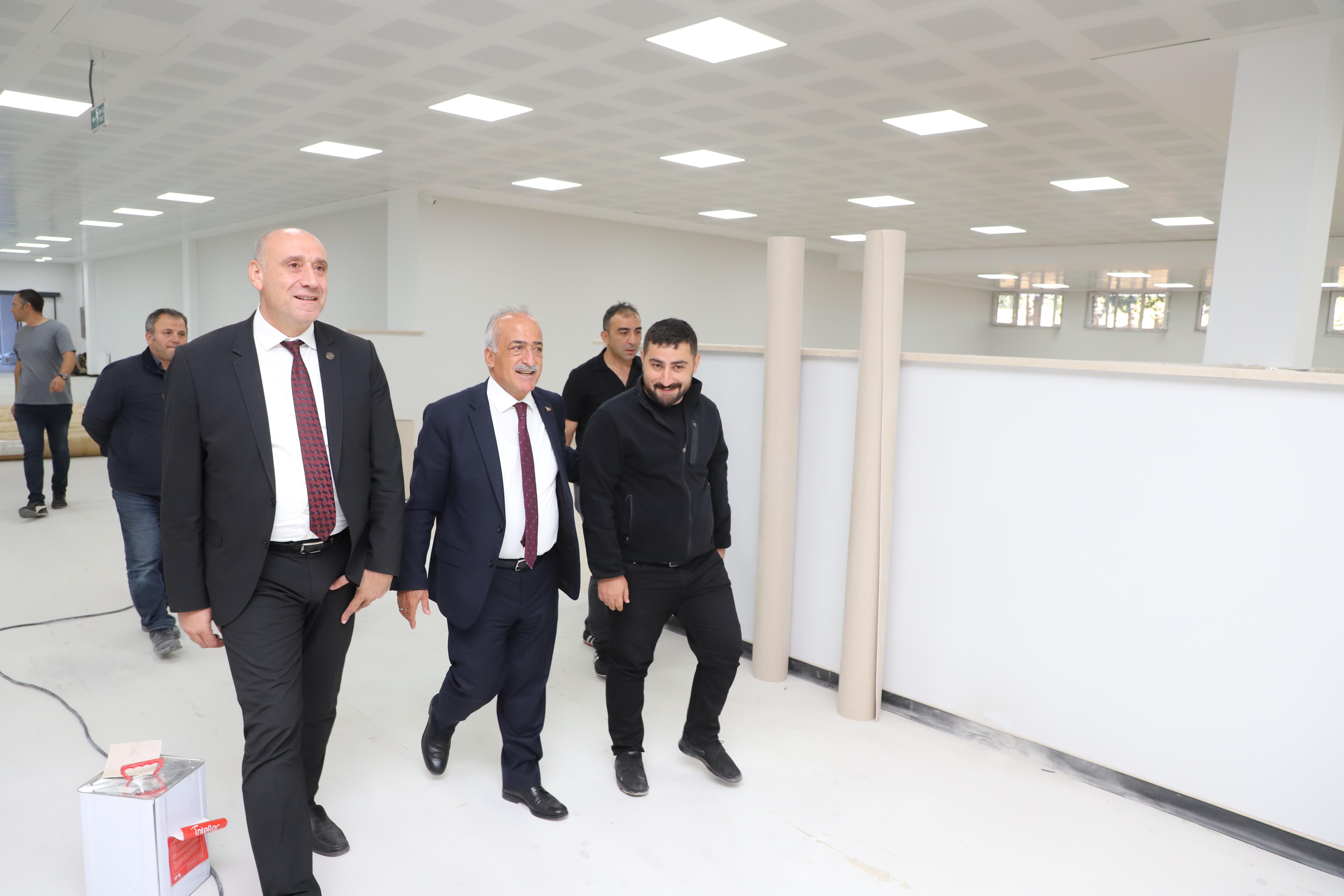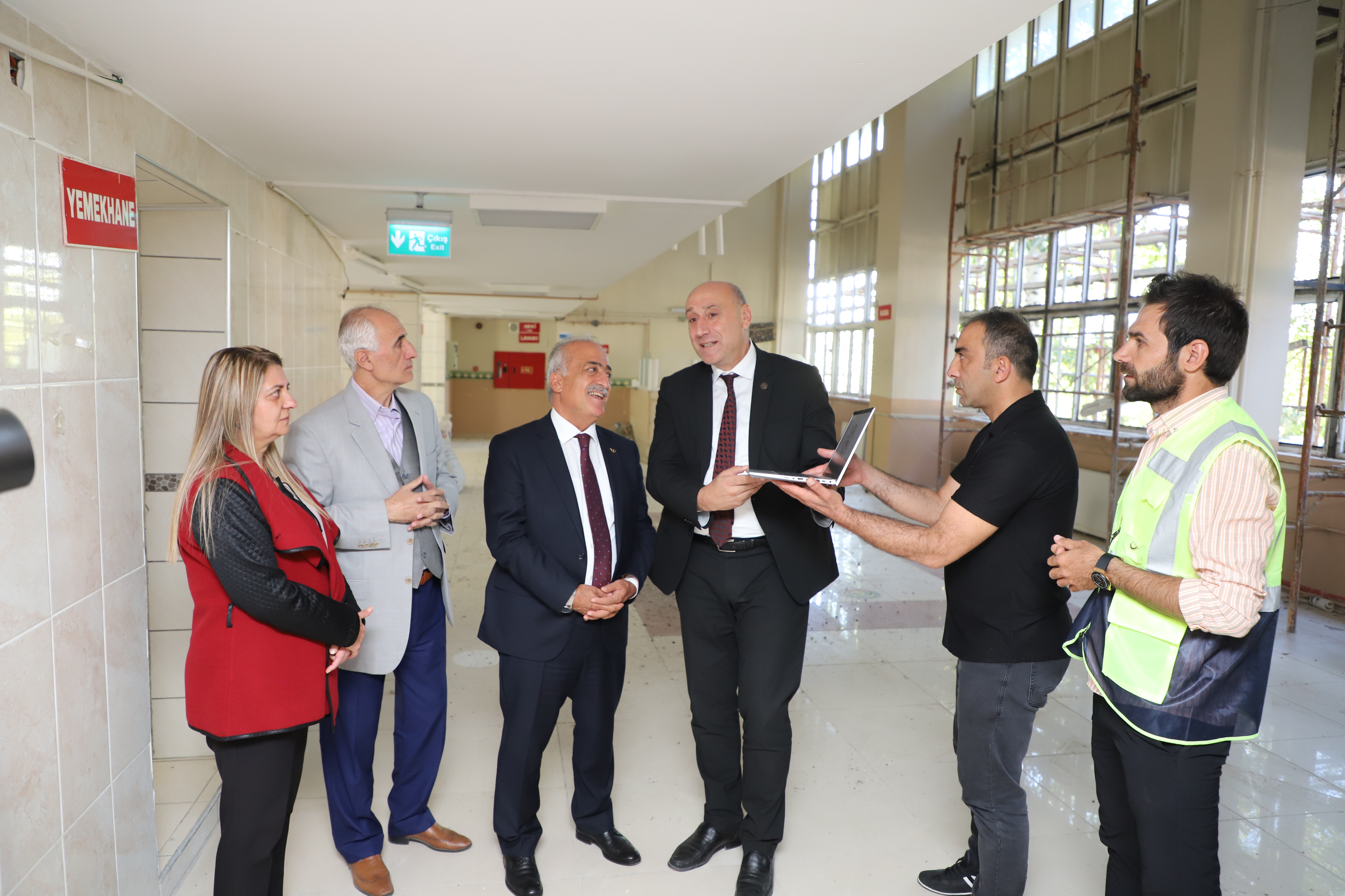 Yurt ziyaretinin ardından heyet, üniversitede yapımı devam eden yeni okuma salonunu ziyaret ederek çeşitli incelemelerde bulundu.