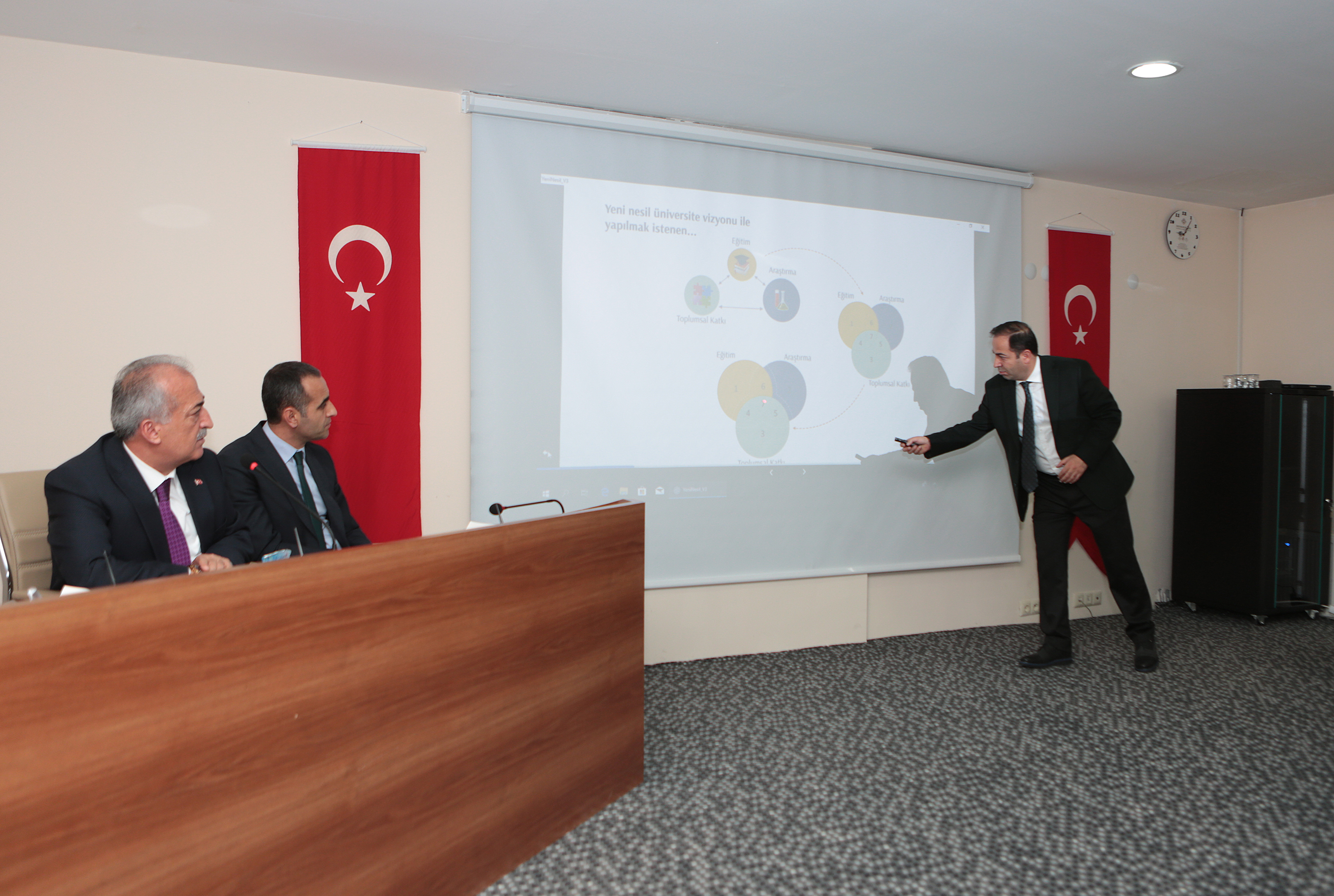 Akademisyenlerle istişare etmenin gelecek açısından çok faydalı olacağına değinen Rektör Çomaklı, topluma yarar sağlamak için öncelikle iş ortamının huzurlu olması gerektiğini ifade etti.