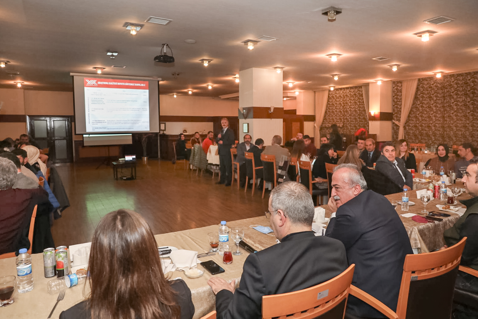 Ülke yükseköğretiminin en geniş akademik kadrosuna sahip olduklarını belirten Rektör Çomaklı, sözlerini şu şekilde sürdürdü: “Bu durum bizlere hem büyük bir tecrübenin hem de önemli bir bilgi birikimin varlığını gösteriyor. Göreve geldiğimiz ilk günden itibaren istişare kültürüne uygun şekilde hareket ederek iç ve dış tüm paydaşlarımızla bir araya gelmeye devam ediyoruz. Bu yıl da başlatmış olduğumuz öğretim üyeleriyle buluşma programlarımız kapsamında hem elde edilen başarıları kutlamak hem de fakülteler arasında multidisipliner anlamda çalışmalara imza atabilecek akademisyenlerin birbirlerini daha yakından tanımalarını arzuluyoruz. Birlik ve beraberlik içerisinde yapılan çalışmalarla ortaya çıkacak olan enerjinin sadece üniversitemize değil şehrimize ve ülkemize önemli kazanımlar sağlayacağına inanıyor, bu vesileyle bir araya gelmekten mutluluk duyduğumuz öğretim üyelerimize çalışmalarında başarılar diliyoruz.”