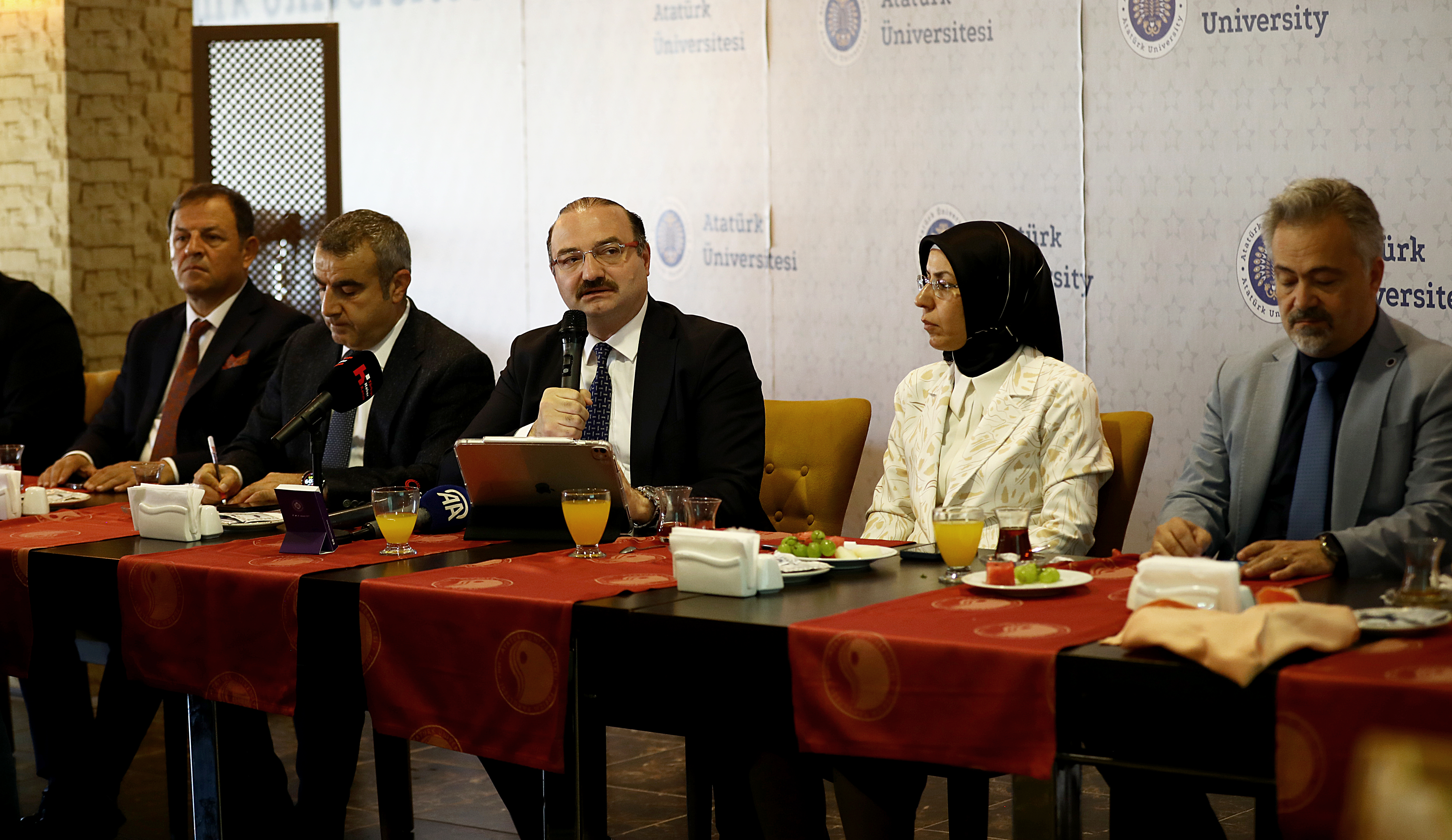 Rektör Hacımüftüoğlu, en son 10 Ocak Çalışan Gazeteciler Gününde bir araya geldikleri basın mensuplarıyla 6 ay sonra yeniden buluşmanın memnuniyet verici olduğunu belirterek, bu süreçte gerçekleştirilen çalışmaları ve önümüzdeki dönemde hayata geçirilmesi planlanan projeleri anlattı. Üniversitenin sağlık, teknoloji, eğitim ve uluslararası iş birlikleri alanlarındaki başarılarına değinen Hacımüftüoğlu, Atatürk Üniversitesinin Türkiye'nin önde gelen yükseköğretim kurumlarından biri olma yolunda kararlı adımlarla ilerlediğini vurguladı.