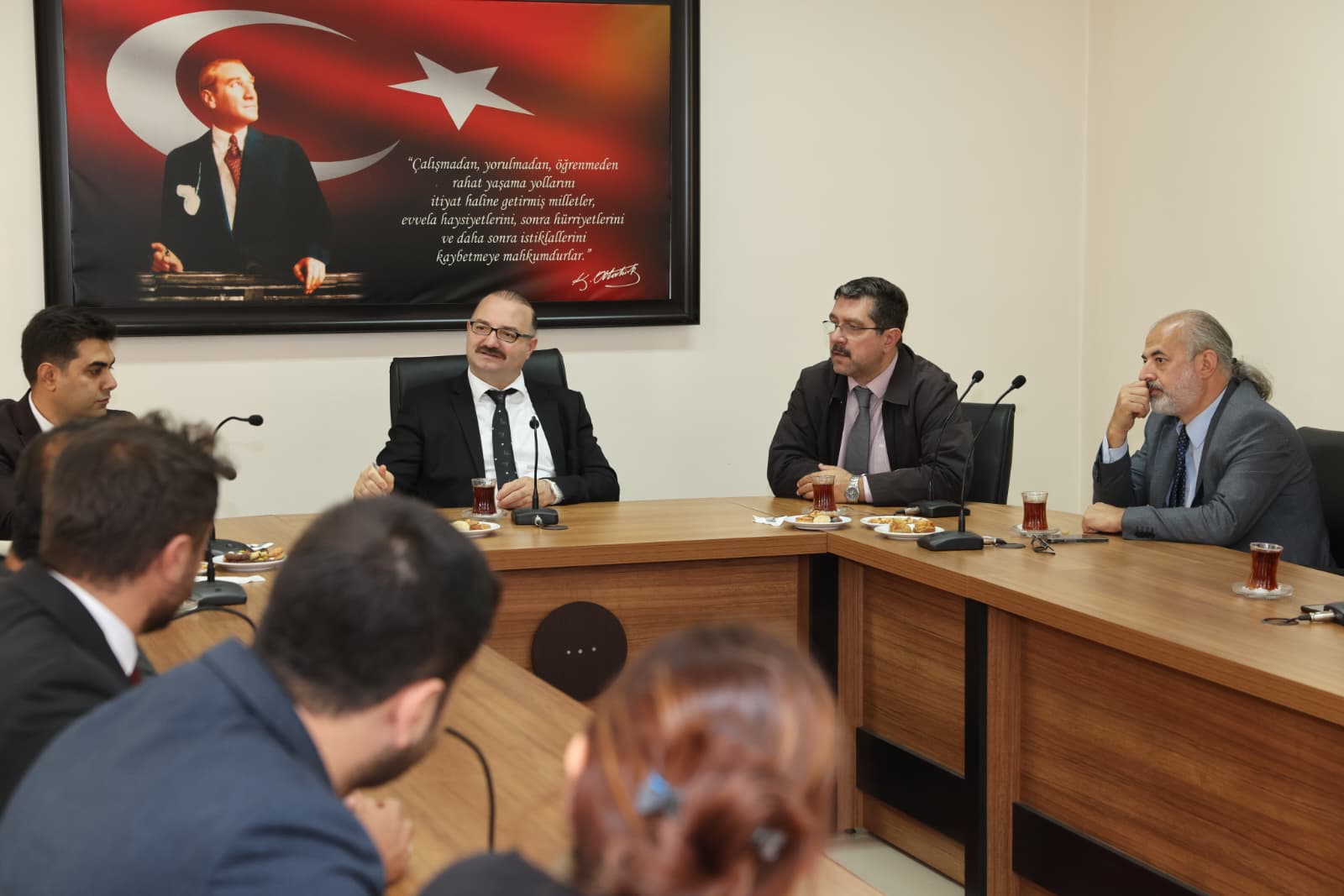 Ardından akademik ve idari personelle bir araya gelen Rektör Hacımüftüoğlu, öğretim süreçlerinin verimliliği ve eğitim kalitesinin artırılmasına yönelik değerlendirmelerde bulundu. Akademik birimlerin gelişiminin, üniversitenin genel vizyonuna doğrudan katkı sunduğunu vurgulayan Hacımüftüoğlu: “Atatürk Üniversitesi olarak tüm birimlerimizde eğitim-öğretim faaliyetlerinin en yüksek standartlarda yürütülmesi bizim önceliğimizdir. Fakültelerimiz ve meslek yüksekokullarımızda yapılan her çalışma, üniversitemizin araştırma odaklı yapısına güç katmakta ve nitelikli insan kaynağının yetişmesine katkı sağlamaktadır. Bu doğrultuda tüm akademik ve idari kadromuzla birlikte gayret göstermeye devam edeceğiz” ifadelerini kullandı.