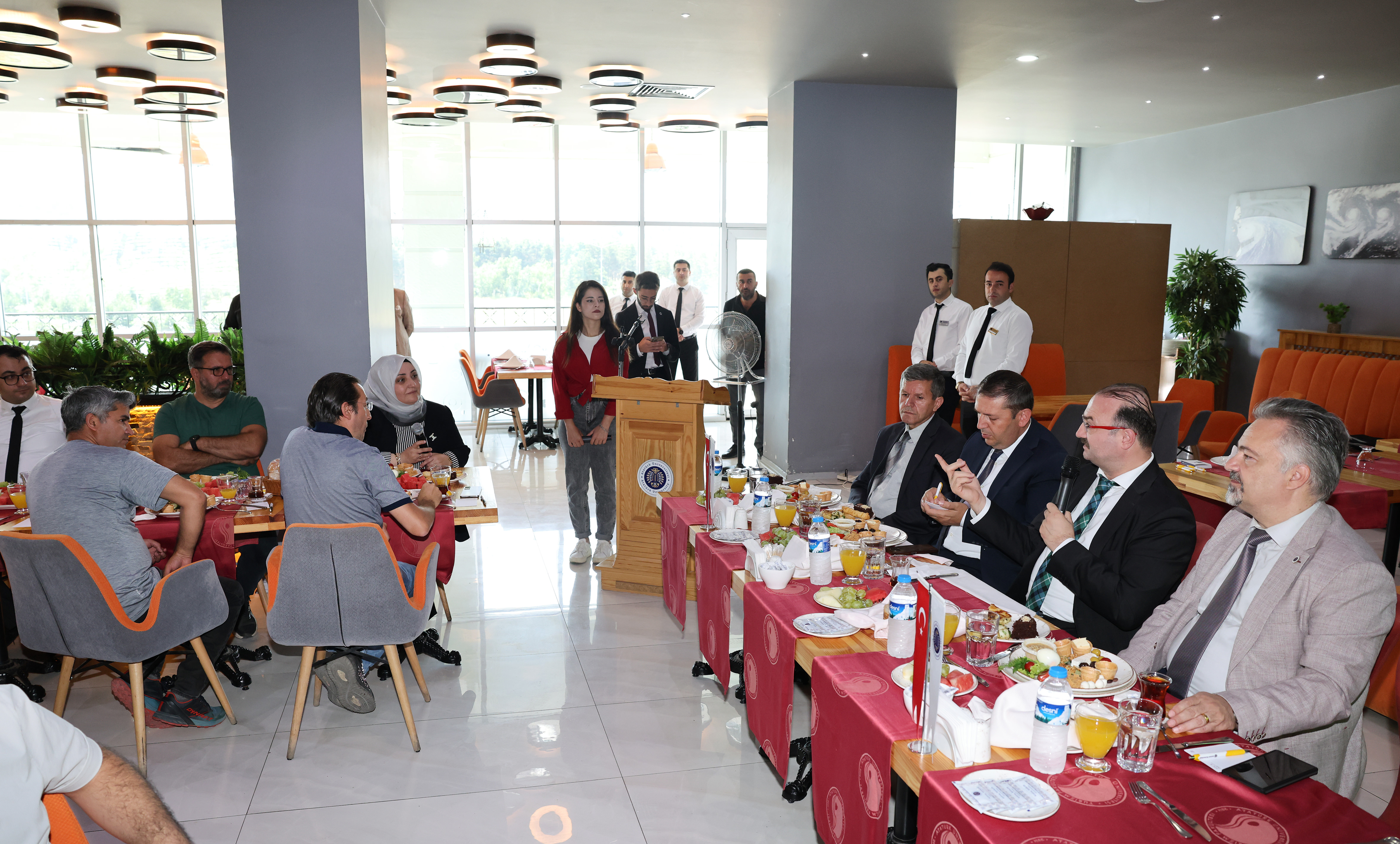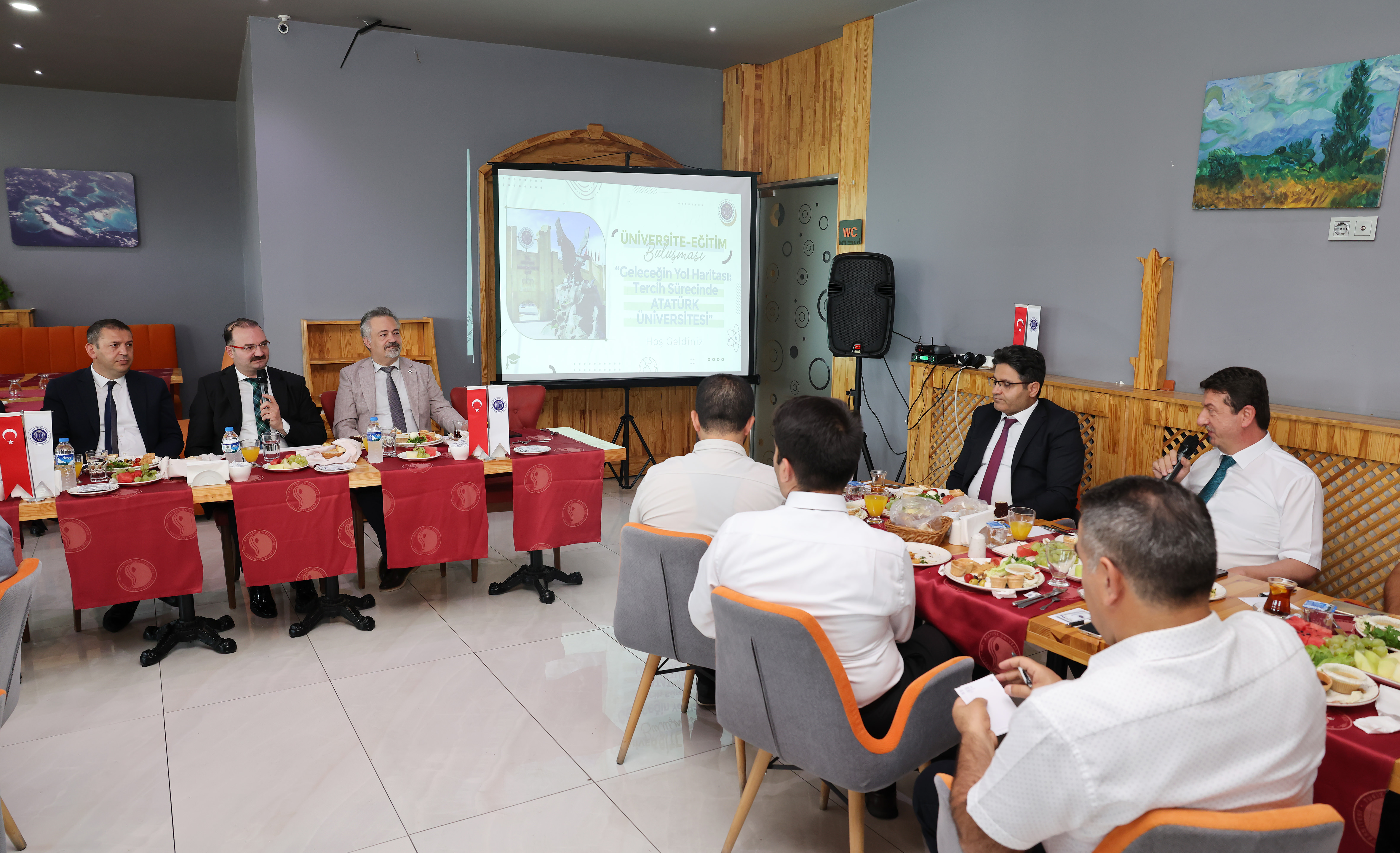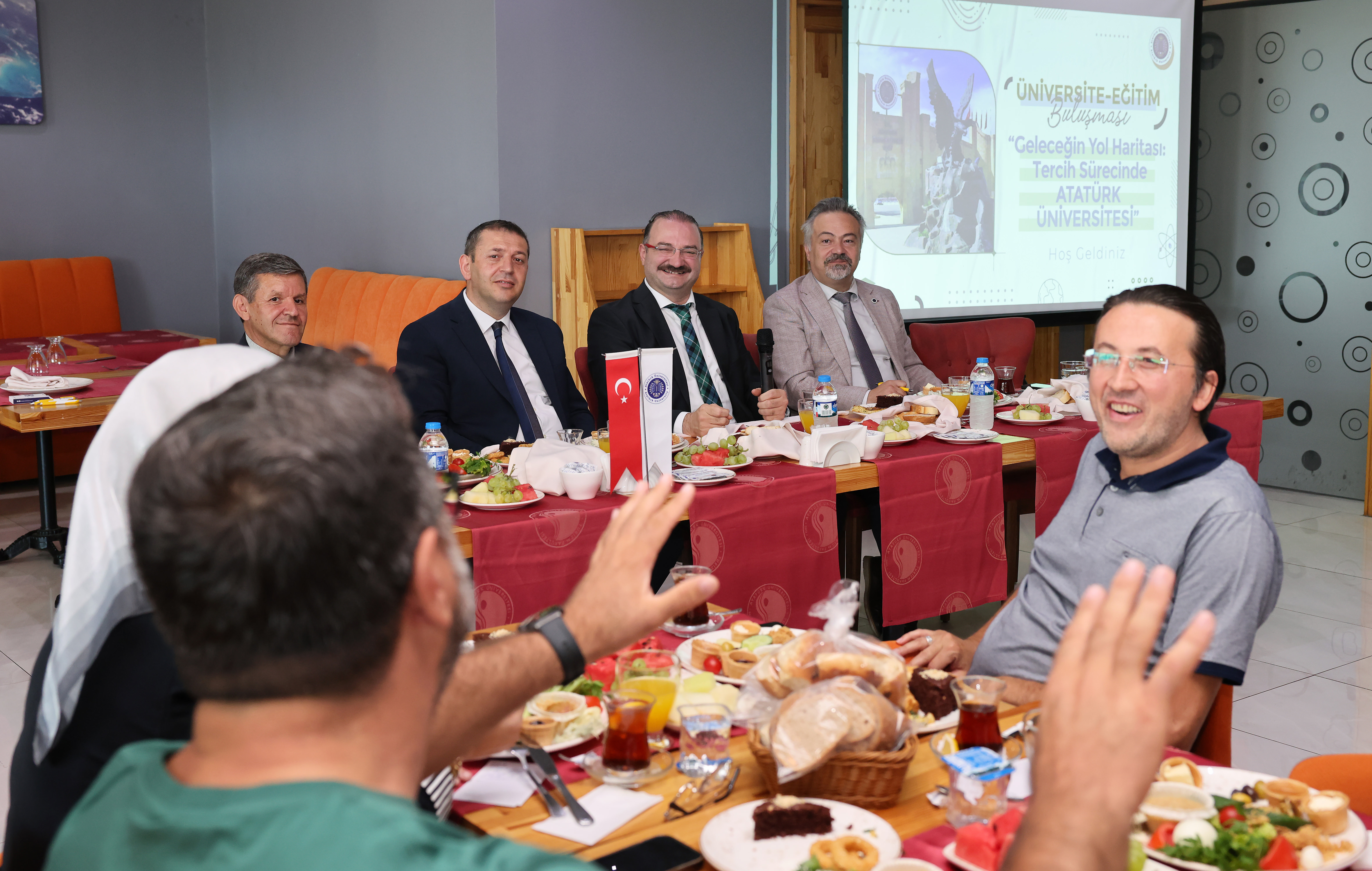 Tercih döneminde Atatürk Üniversitesinin sağladığı güçlü imkanların öğrencilere aktarılmasının önemine değinen Rektör Hacımüftüoğlu: “Sizlerin çabası ve yönlendirmeleriyle öğrenciler doğru hedefe ilerliyor. Bizler de üniversite olarak üzerimize düşeni yapıyor, onların başarılarına ortak oluyoruz. Hep birlikte şehrimizi, bölgemizi ve ülkemizi daha ileriye taşımak için aynı hedefe omuz veriyoruz” dedi.