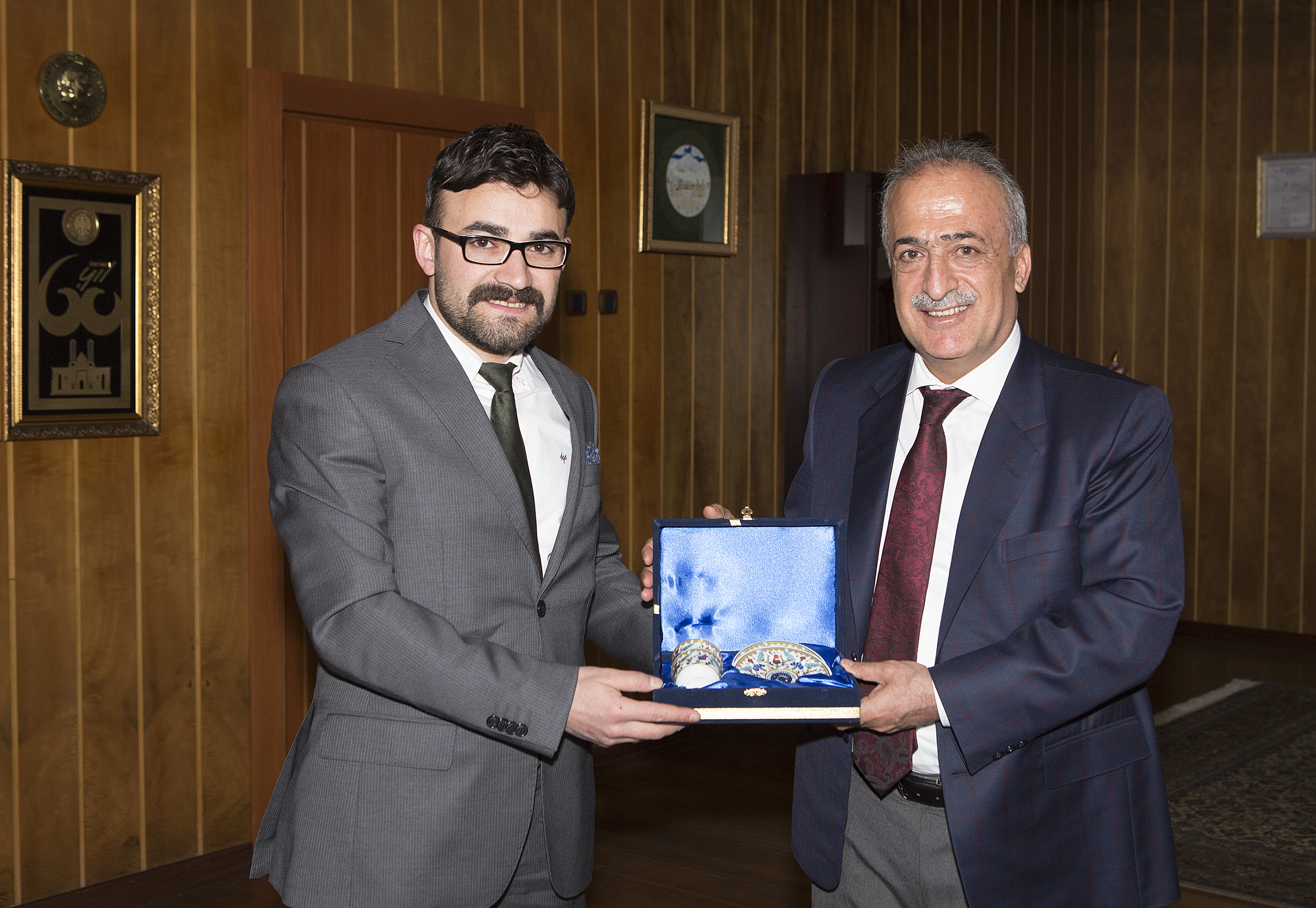 Ziyaretin ardından Rektör Çomaklı, Bingül kardeşleri altınla ödüllendirdi.