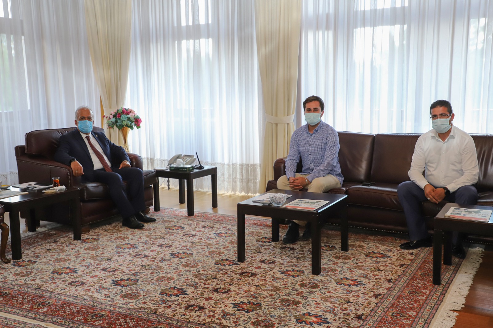 Atatürk Üniversitesi Rektörü Prof. Dr. Ömer Çomaklı’yı makamında ziyaret eden Deniz Feneri Derneği Genç İyilik Genel Başkanı Ahmet Köse ile Deniz Feneri Derneği Doğu Anadolu Temsilciliği Kurumsal İlişkiler Sorumlusu Alparslan Tarih, yöre halkının selamlarını ve dualarını getirdiklerini söyledi.