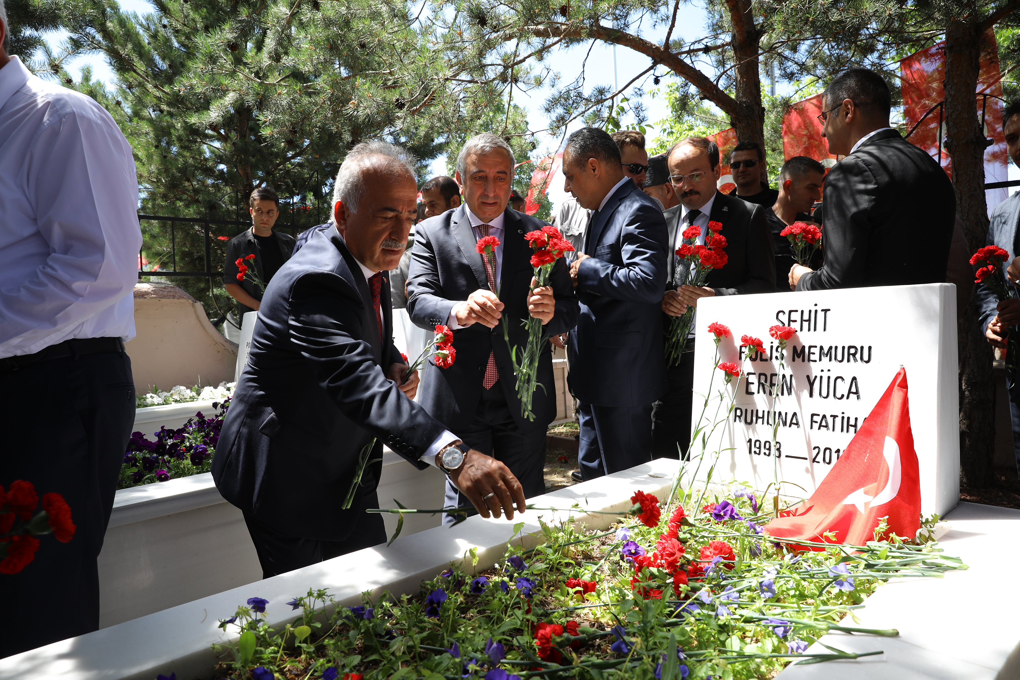 Şehitlik ziyaretlerine Rektör Çomaklı’nın yanı sıra, Erzurum Valisi Okay Memiş, Büyükşehir Belediye Başkanı Mehmet Sekmen, 9. Kolordu Komutanı Tümgeneral Veli Tarakcı, Erzurum Cumhuriyet Başsavcısı Burhan Bölükbaşı, Bölge Adliye Mahkemesi Cumhuriyet Başsavcısı Ünal Bingül, İl Emniyet Müdürü Mehmet Aslan, Erzurum Teknik Üniversitesi Rektörü Prof. Dr. Bülent Çakmak ile AK Parti İl Başkanı Mehmet Emin Öz ve şehit yakınları katıldı.