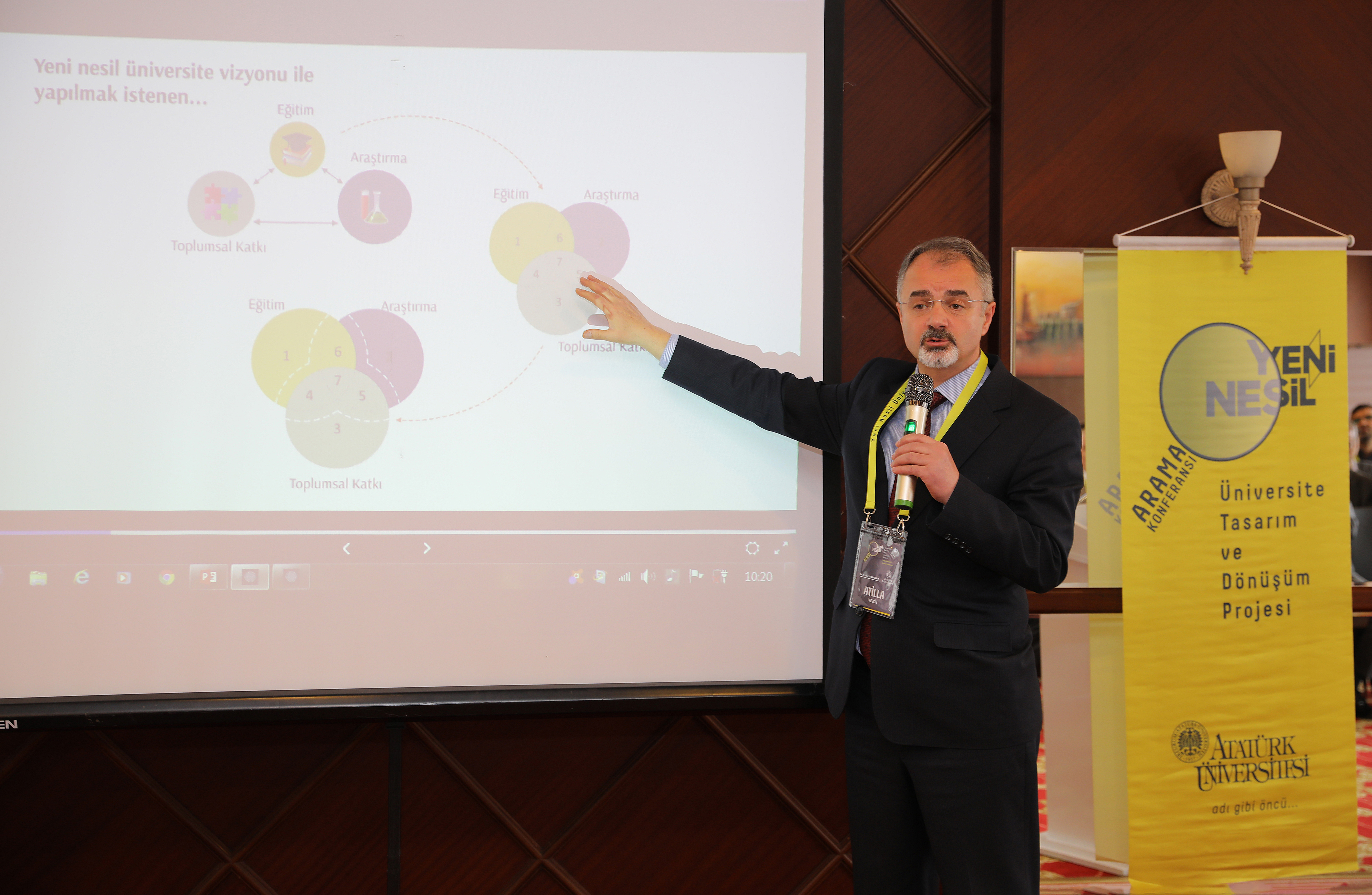 BAP Koordinasyon Birimi Koordinatörü Prof. Dr. Atilla Keskin ise Atatürk Üniversitesi Yeni Nesil Üniversite Tasarım ve Dönüşüm Projesinin tanıtımını yaparak üniversitenin Sosyal Bilimler alanında toplumsal katkı oluşturması ve ayırt edici özelliklerinin ön plana çıkmasının önemine değindi.
