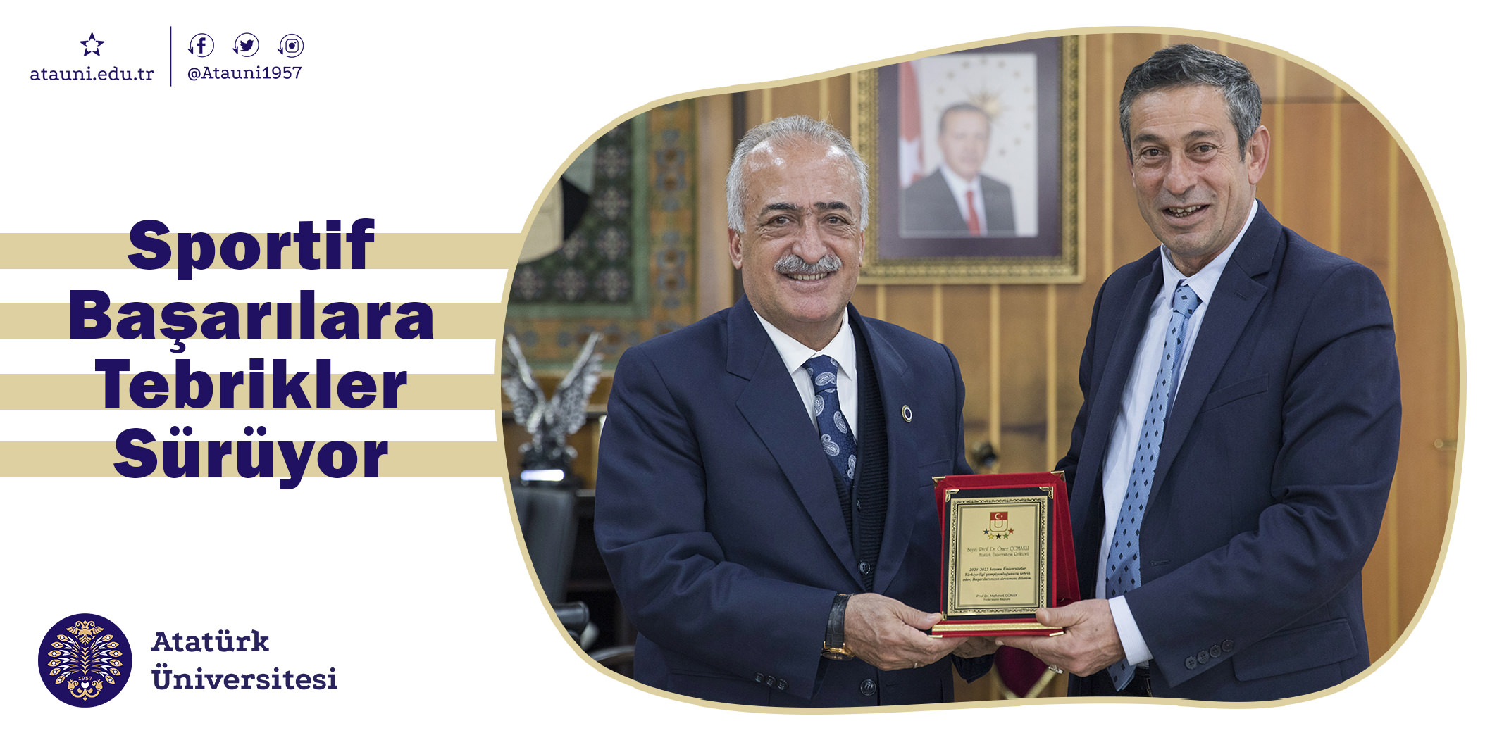 Atatürk Üniversitesinin 2021-2022 Dönemi Üniversiteler Arası Genel Madalya Dağılımı altın madalya sıralamasında 208 üniversite arasında birinci olmasından dolayı tebrik ziyaretinde bulunan Prof. Dr. Günay, son yıllarda elde edilen sportif başarılardan dolayı Rektör Çomaklı’ya tebriklerini iletti.