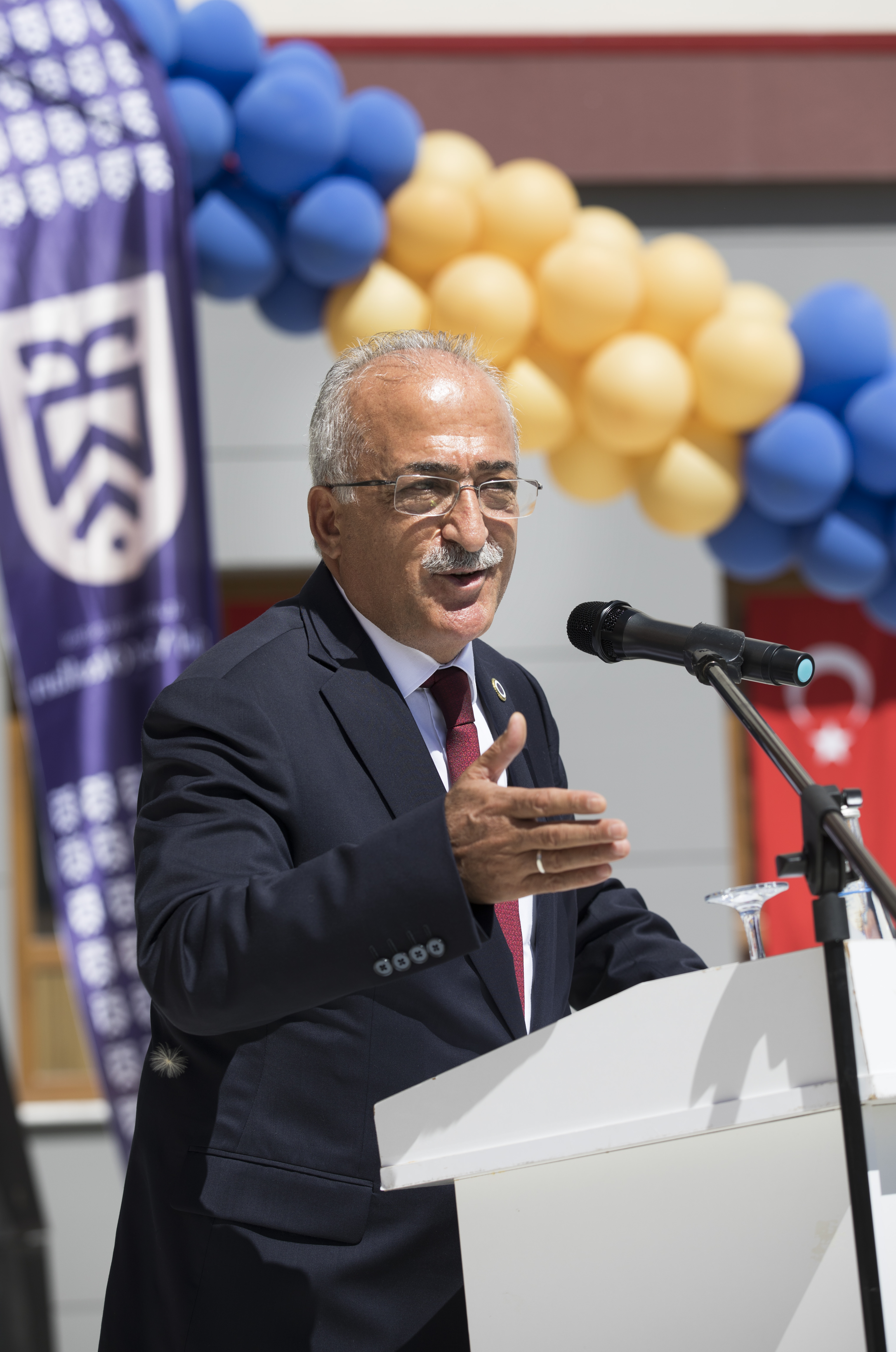 Biliyoruz ki en büyük yatırım, beşerî sermayeye yapılan yatırımdır. Beşerî sermaye ise eğitim ile değerlidir. Geleceğin mimarı nesilleri en iyi şekilde yetiştirmek için de yapmamız gereken; niceliği ve niteliği bir arada hedefleyecek şekilde güçlenmektir. Bu şiarla vakıf okullarımız, bugüne dek sayısız öğrenciye kaliteli eğitim hizmeti sunmuştur. Yakılan bu ışık, zaman içinde büyümüş ve bugün liseleri de olan bir eğitim kompleksine dönüşmüştür. Üniversitemiz yerleşkesinde yer alan vakıf okullarında eğitim gören öğrencilerimizin lise eğitimlerini de yine üniversitemizin tecrübesiyle şekillenen liselerimizde almaları en önemli hedeflerimizden biriydi.  Bu çerçevede Üniversitemizin dikkat çeken başarılarının ve vizyonunun bir simgesi olan Vakıf Liselerimizi tamamlayarak hizmete sunuyor ve bu kutlu açılışı gerçekleştirmenin sevincini, gururunu yaşıyor, paylaşıyoruz. Okullarımızın Üniversitemize ve şehrimize kazandırılmasında önemli destek ve katkıları olan Sayın Sıtkı Alp ve kıymetli eşleri Süheyla Hanımefendi bugün sevincimizi paylaşmak üzere buradalar. Eğitimden kazandığını yine eğitime harcayan Sayın Alp’ın, talep ve davetlerimizi daima nezaketle karşıladığını buradan özellikle belirtmek isterim. Son olarak bugün burada açılışını yaptığımız Atatürk Üniversitesi Vakıf Anadolu ve Fen Liselerinin Erzurum’umuza ve ülkemize hayırlar getirmesini temenni ediyorum” ifadelerini kullandı.