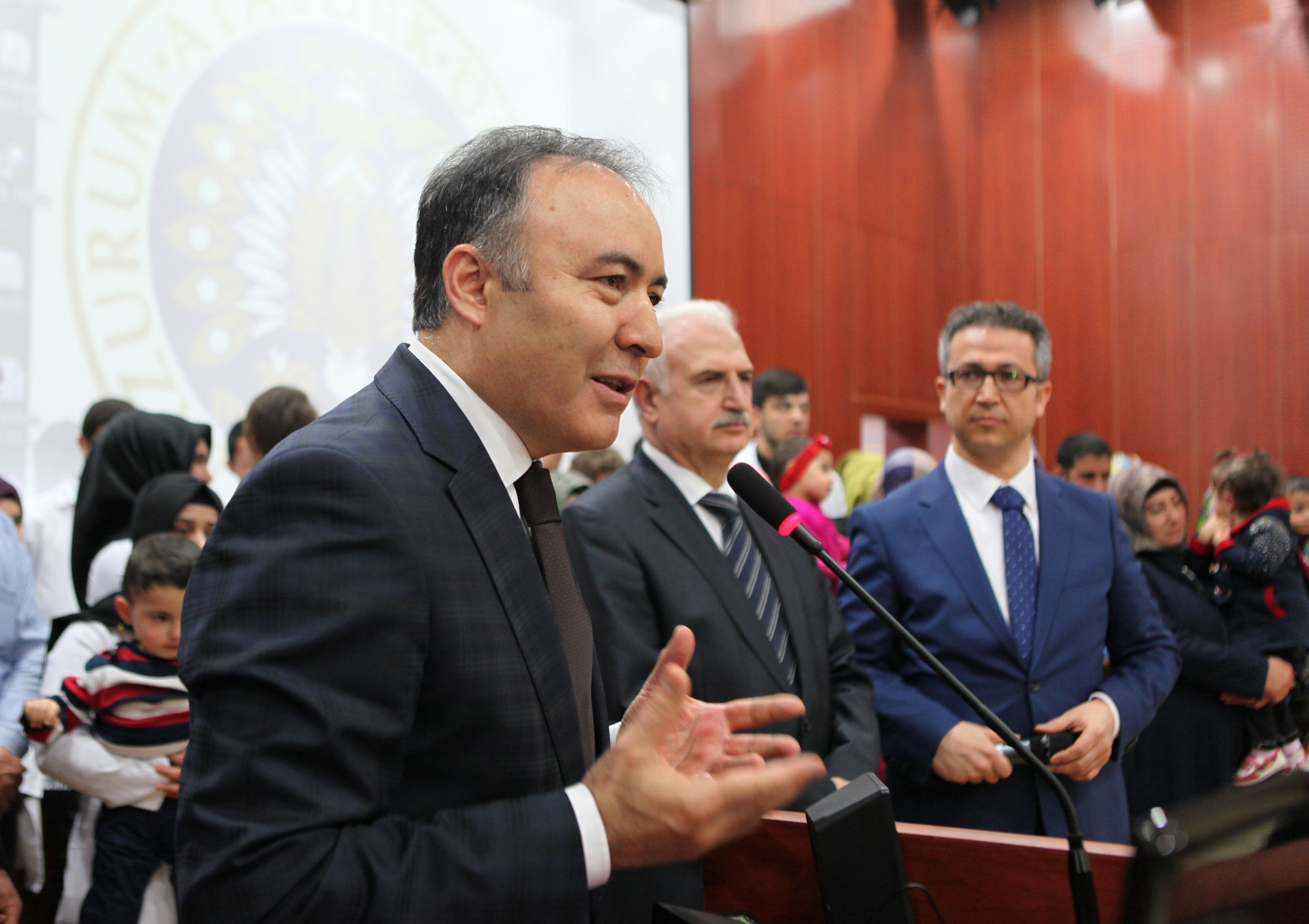 Atatürk Üniversitesi Rektörü Prof. Dr. Hikmet Koçak ise konuşmasında, çocukların anne, baba dediklerinde veya seslenildiği zaman tepki verdiklerinde, anne babalarının büyük sevinç yaşadıklarını belirterek, kendilerinin de bu sevinci paylaştıklarını söyledi.