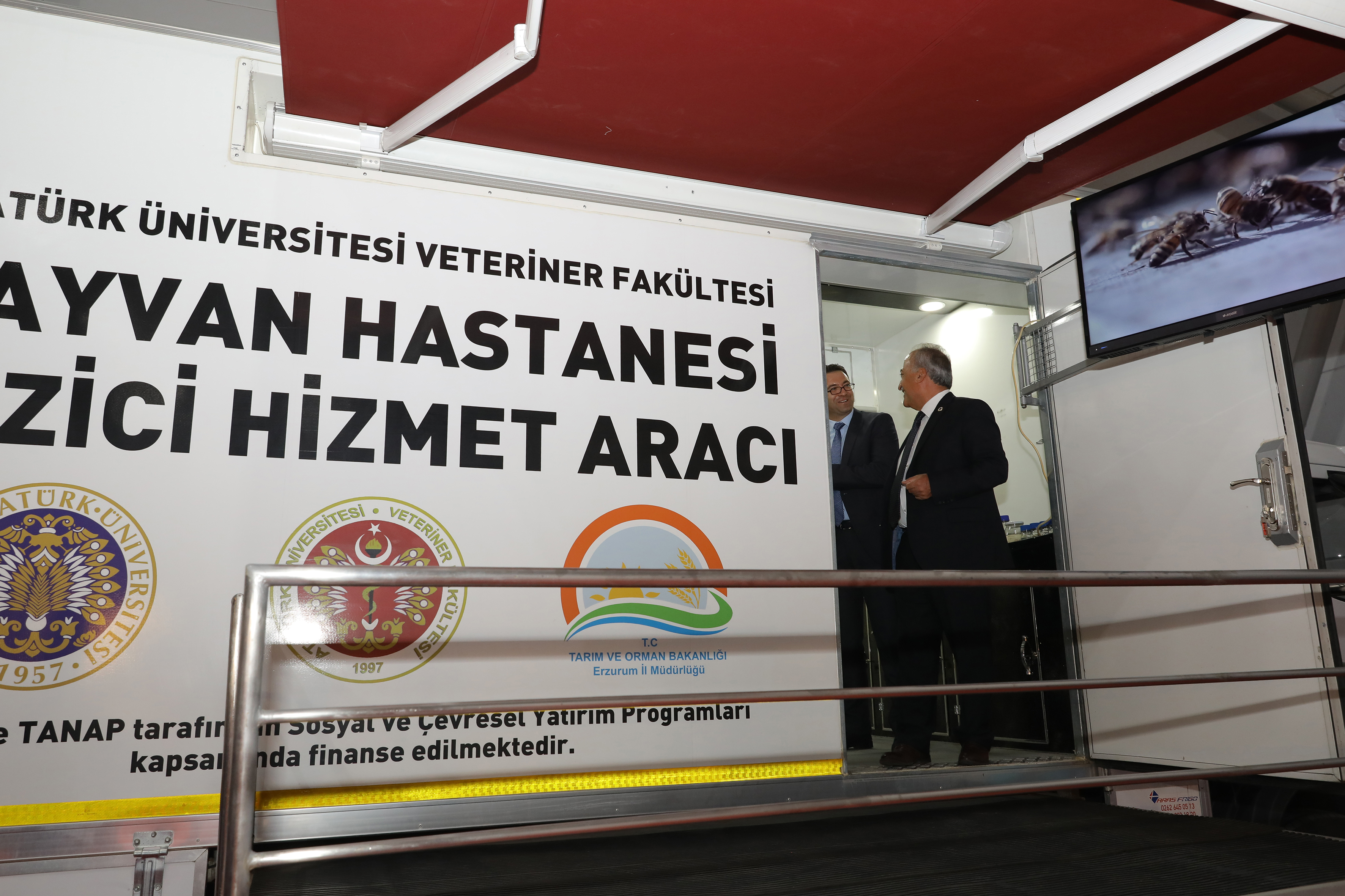 Atatürk Üniversitesi Veteriner, Ziraat ve Su Ürünleri Fakültesinin üniversiteyi temsilen stant açtığı Doğu Anadolu Erzurum 2. Tarım ve Erzurum Hayvancılık Fuarında, tarım ve hayvancılığa ait materyaller ve ürünler tanıtıldı. Hayvancılıkla uğraşan çiftçiler, fuarda sergilenen Veteriner Fakültesi Hayvan Hastanesine ait olan Mobil Hayvan Hastanesini ilgiyle incelediler.