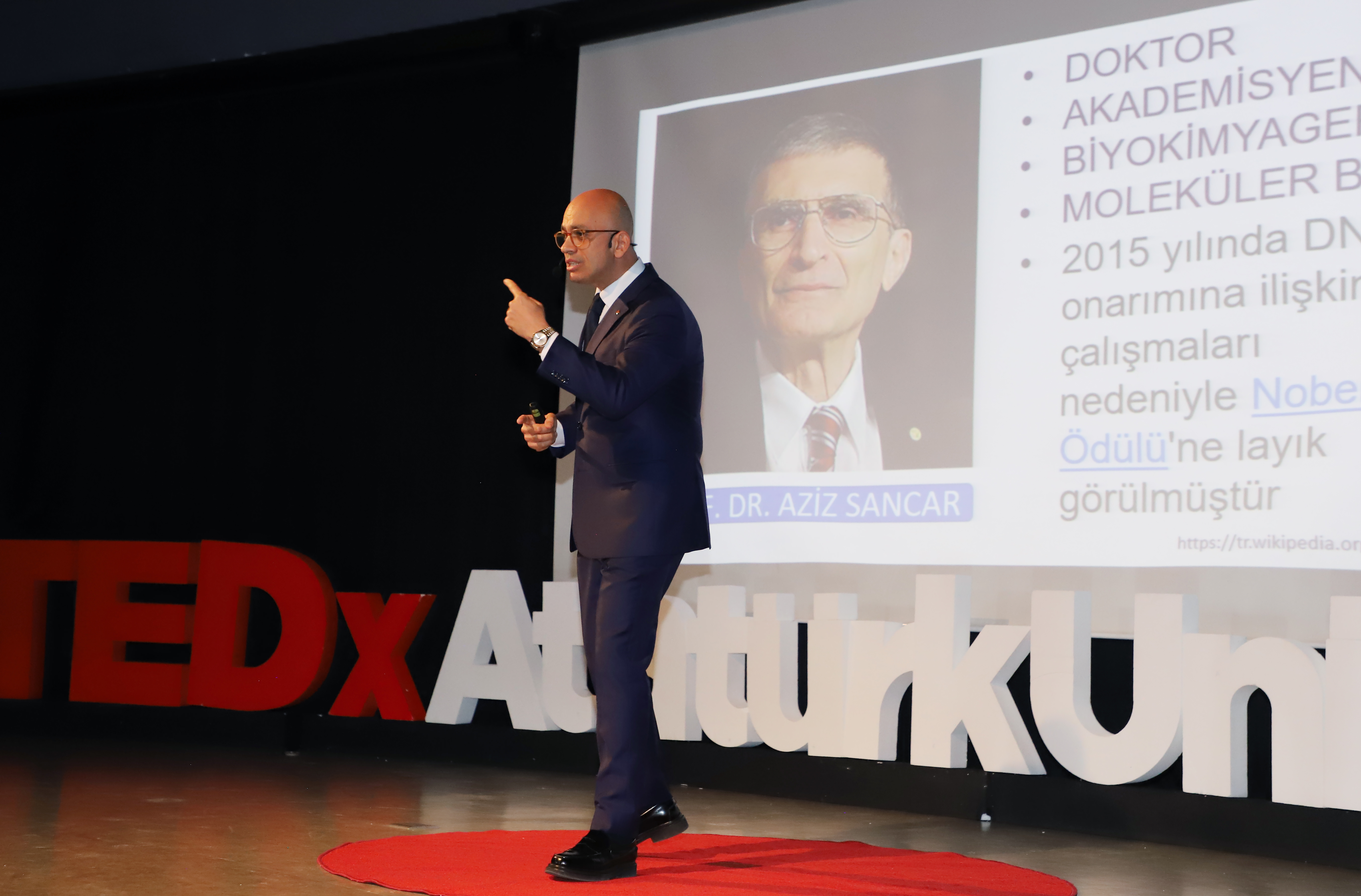 Daha sonra söz alan Rektör Prof. Dr. Ahmet Hacımüftüoğlu, Atatürk Üniversitesinin sadece akademik başarıyı değil, aynı zamanda bireysel gelişimi de esas alan bir anlayışla hareket ettiğini belirterek şunları söyledi: “Üniversitemiz, köklü geçmişinden aldığı güçle geleceğe yön verme konusunda gençlerimizin fikirlerine ve hayallerine büyük değer veriyor. Öğrencilerimizin sadece akademik değil, sosyal ve kültürel becerilerini geliştirmeleri için farklı kulüplerimiz ve yapılarımızla pek çok etkinlik hayata geçiriliyor. Bugün burada, bu anlayışın güzel bir örneği olan TEDxAtatürkUniversity etkinliği vesilesiyle ‘Neden Olmasın?’ sorusunu hep birlikte düşünmek için toplandık.