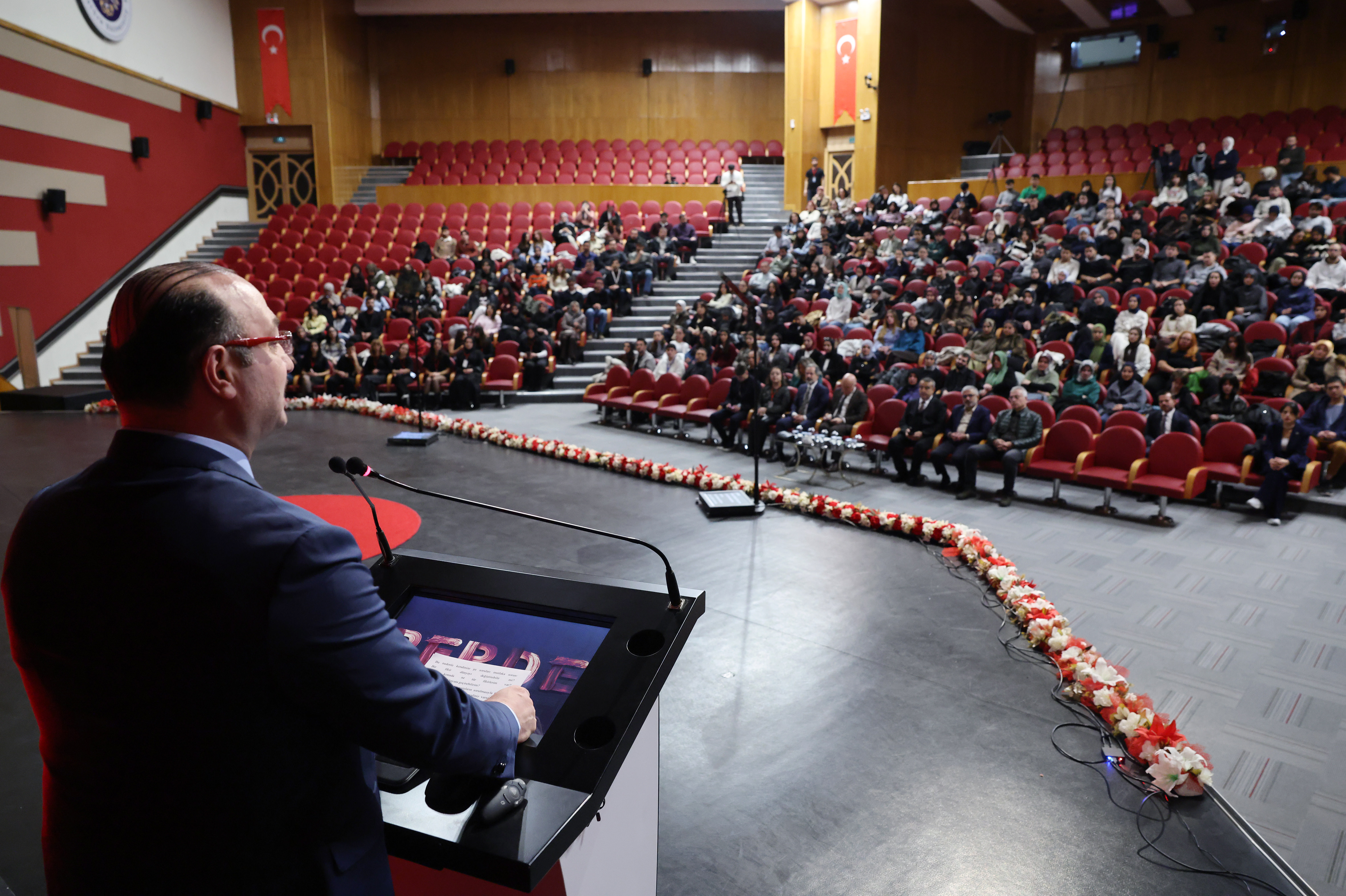 Programın açılış konuşmasını gerçekleştiren Öğrenci Dekan Yardımcısı Prof. Dr. Meral Oltulu, etkinliğin öğrencilerin düşünsel gelişimine sunduğu katkıya dikkat çekerek, TEDx platformunun gençlerin özgüvenini, ifade becerilerini ve potansiyelini ortaya çıkarmada önemli bir rol üstlendiğini belirtti. Prof. Dr. Oltulu: “Perde temasıyla düzenlenen bu etkinlik, öğrencilerimizin görünmeyeni görme, sorgulama ve kendi fikirlerini cesaretle ortaya koyma süreçlerine güçlü bir destek sunuyor. Onları cesaretlendiren her adım bizim için çok değerlidir” ifadelerini kullandı.