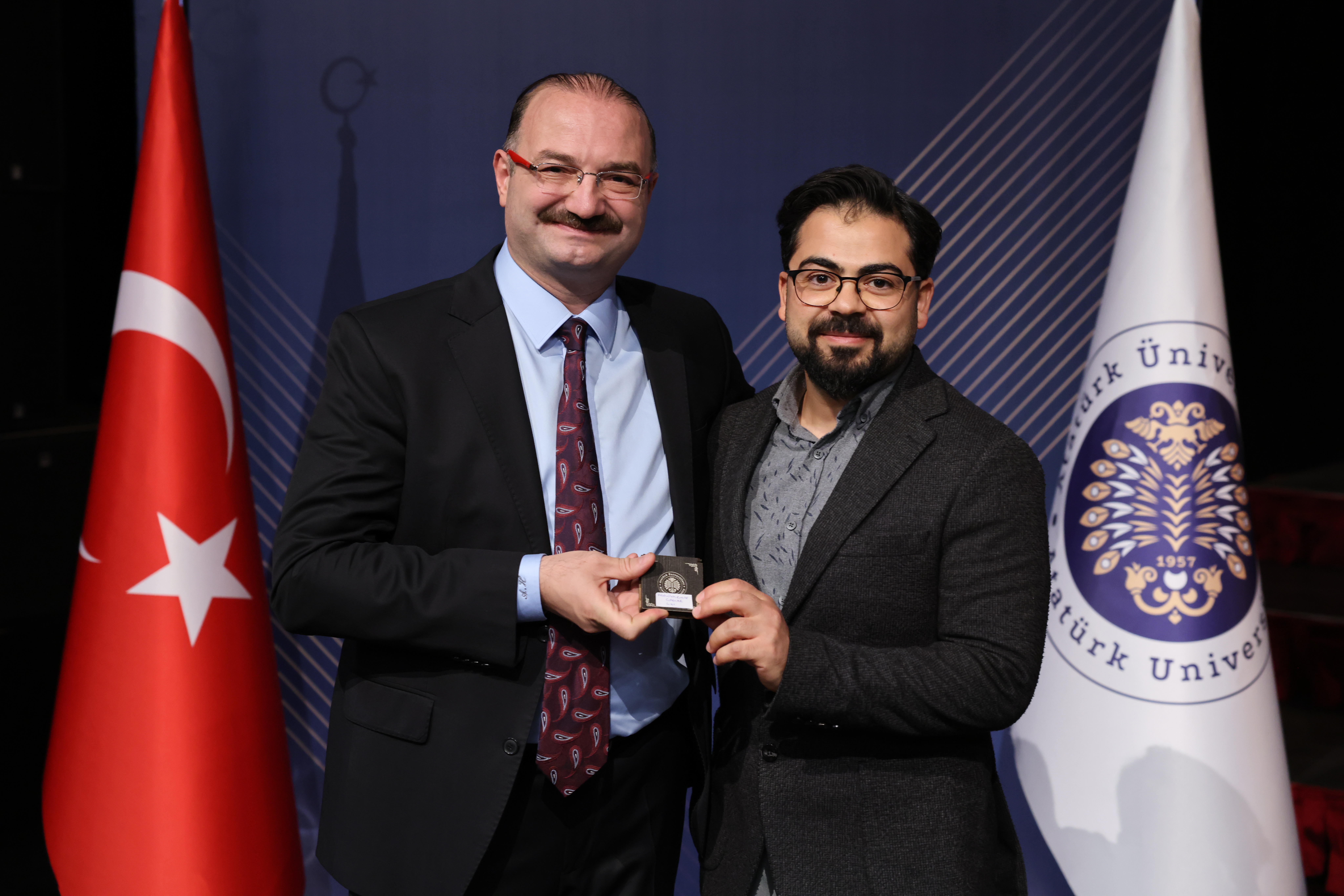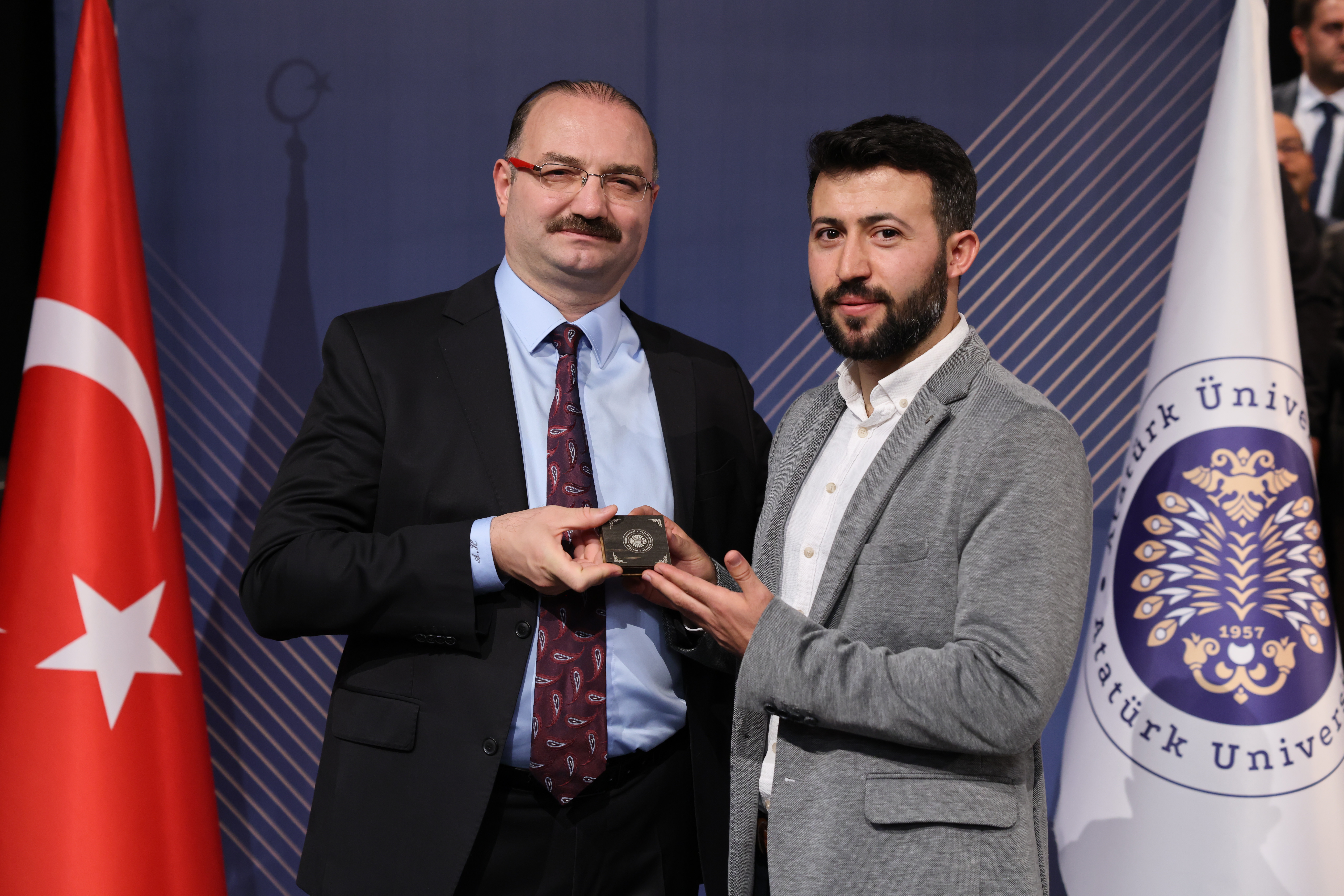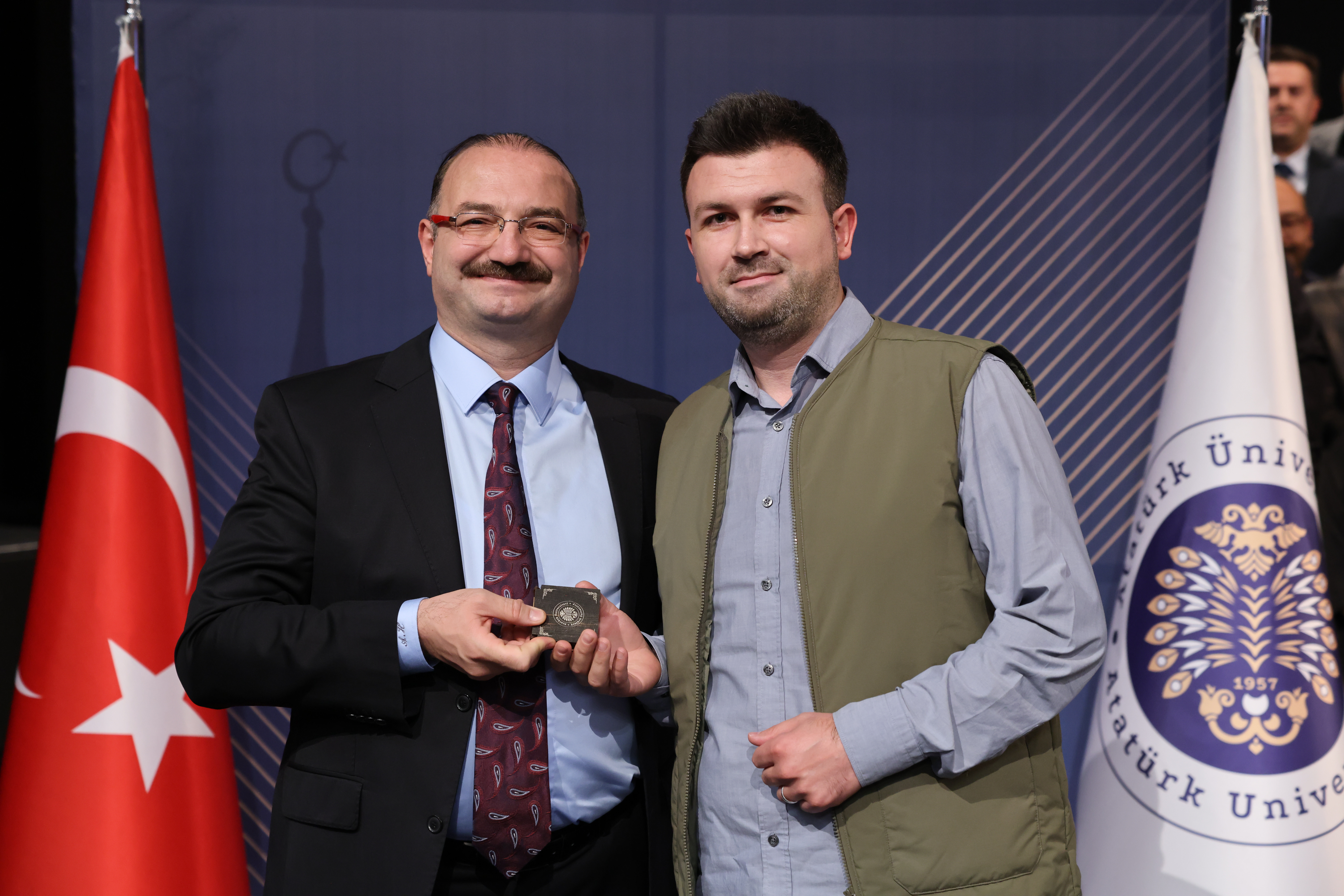 2025 yılı içerisinde yaptıkları araştırma faaliyetleri için Temmuz ve Ağustos aylarında başvuruda bulunan öğretim üyeleri, 15 Temmuz Milli İrade Salonunda düzenlenen törende ödüllerini Atatürk Üniversitesi Rektörü Prof. Dr. Ahmet Hacımüftüoğlu’nun elinden aldı.